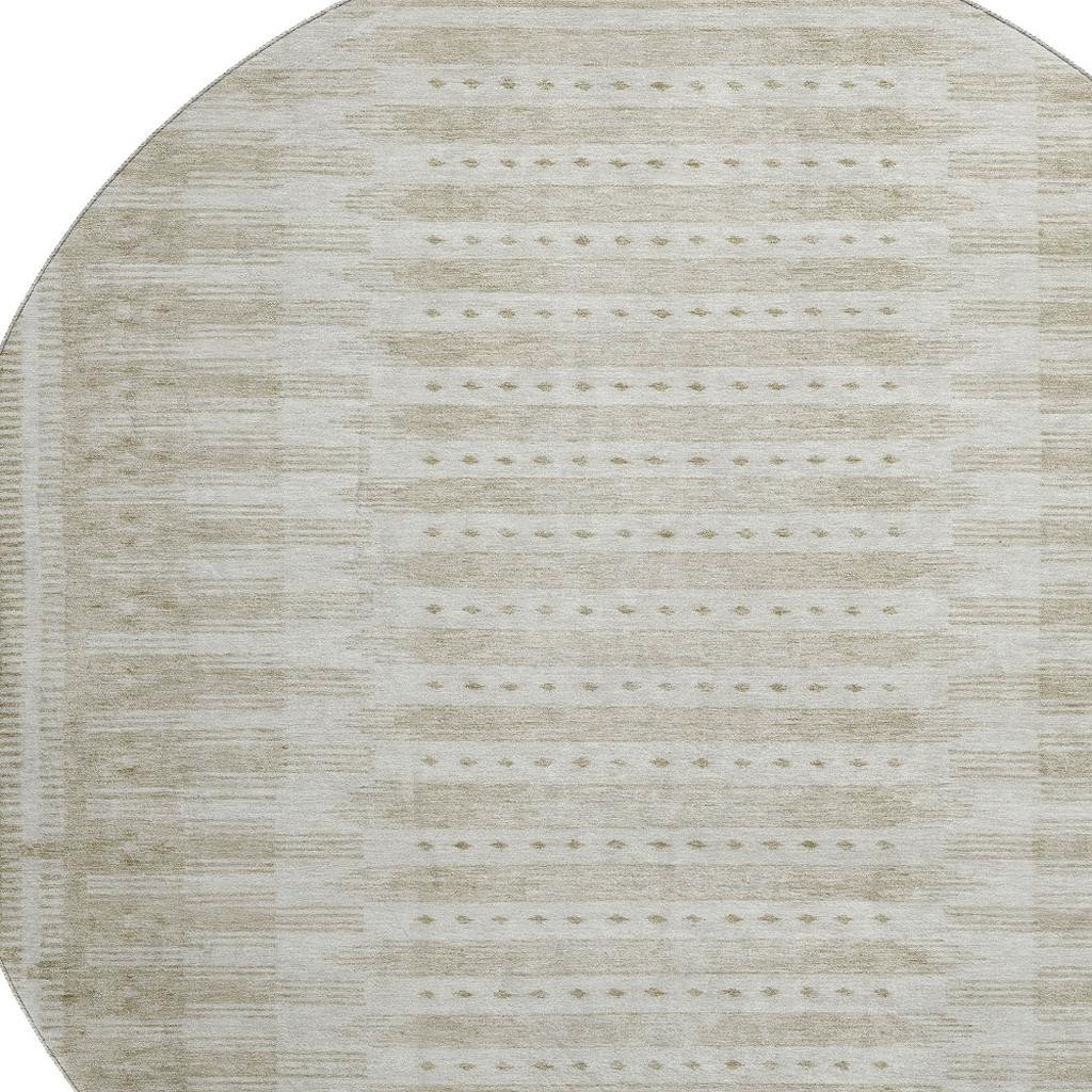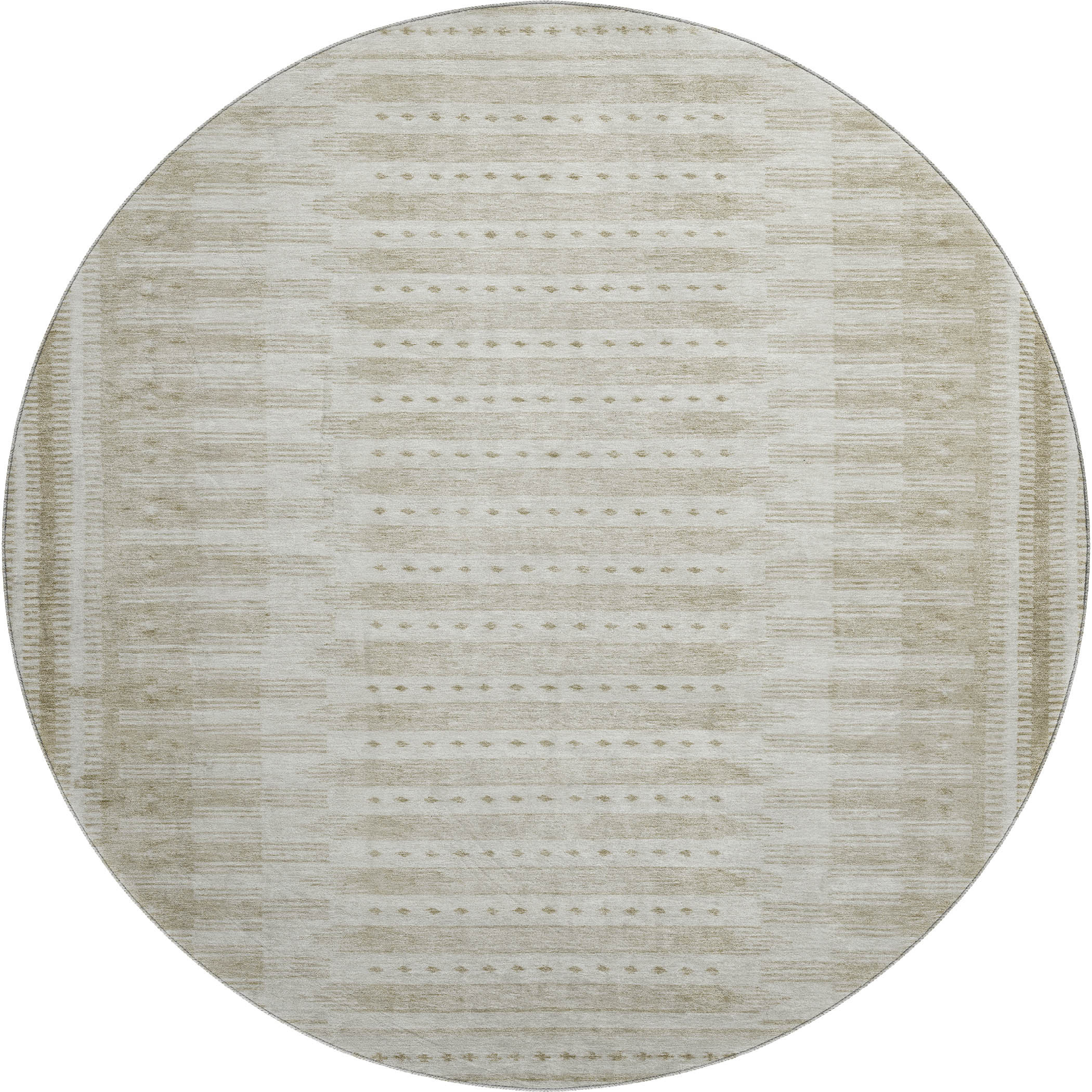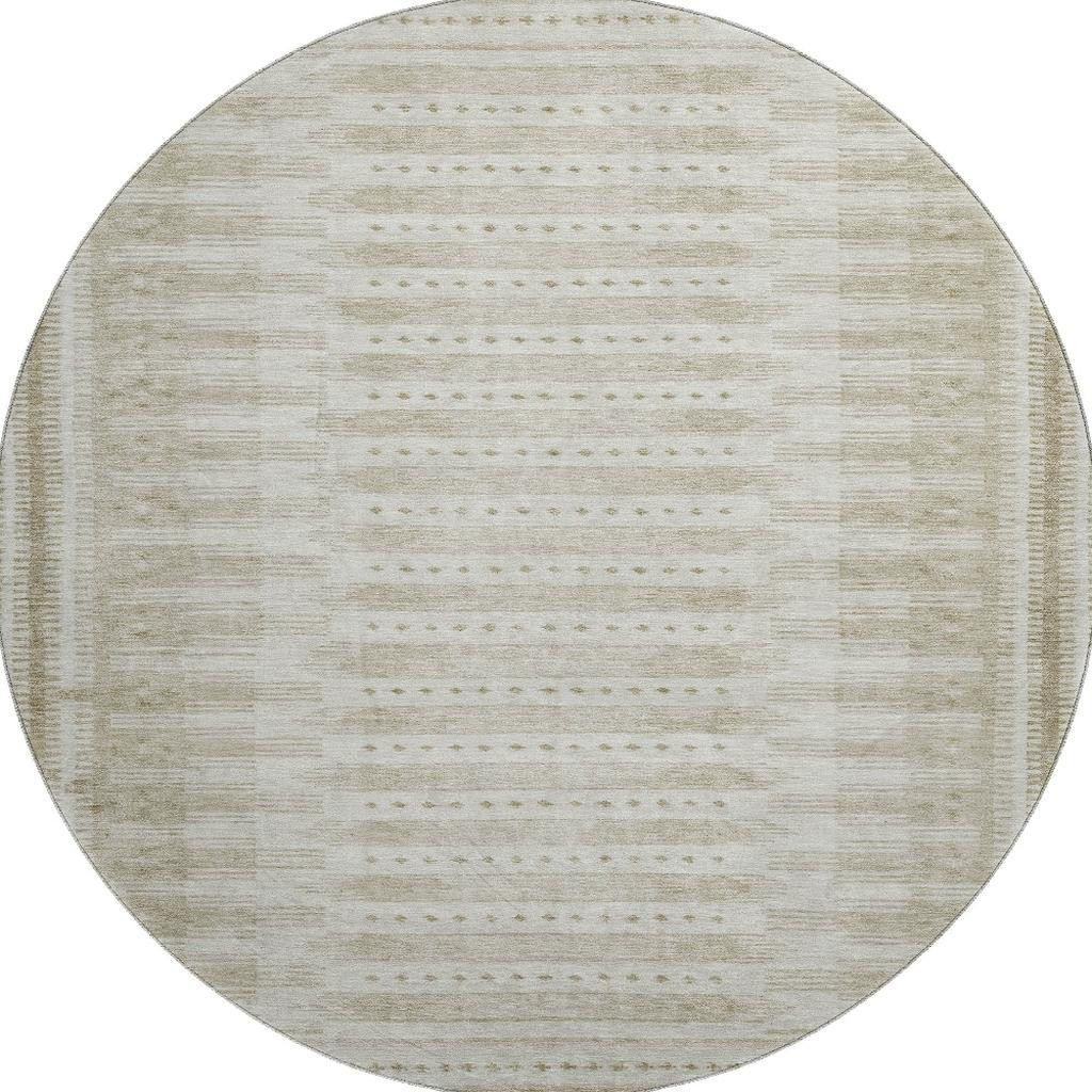 Set an inviting tone in your space with this 8-foot khaki and beige geometric washable round rug with uv protection. Ideal for spaces with kids and pets, this rug is stain resistant to help repel dirt and spilled liquids. Built to last, this rug crafted from polyester fibers is known for its durability and long lasting appeal. Rugs are a great way to showcase your style, hide imperfections, warm your home and reduce noise. This larger sized, transitional styled rug is ready to create a focal point or statement piece in your room. 96.00-inch h x 96.00-inch w x 0.39-inch d.