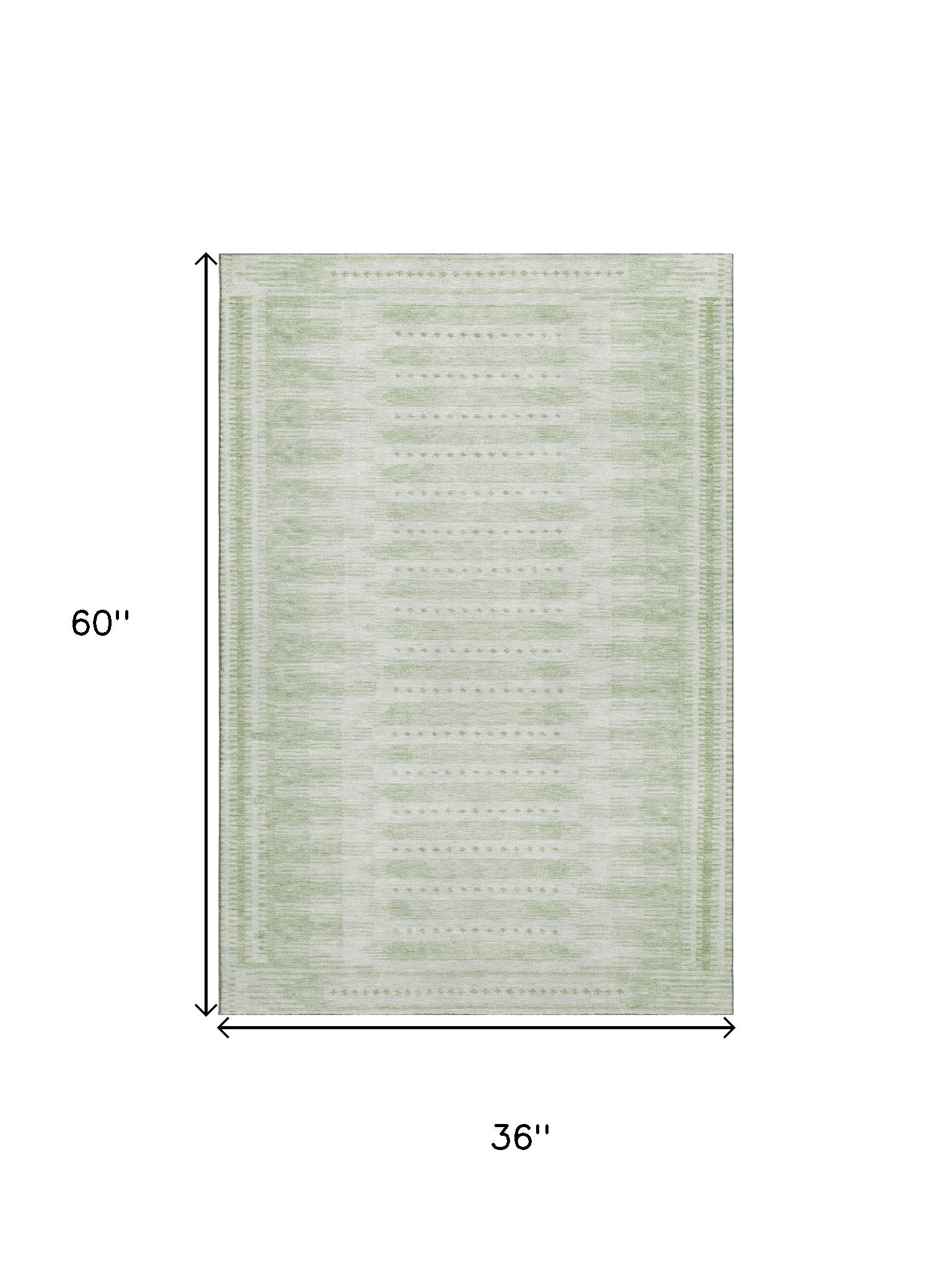 Add great coloration and comfortable texture to your space with this 3-foot x 5-foot sage and fern green geometric washable area rug with uv protection. Ideal for spaces with kids and pets, this rug is stain resistant to help repel dirt and spilled liquids. Built to last, this rug crafted from polyester fibers is known for its durability and long lasting appeal. Rugs are a great way to showcase your style, hide imperfections, warm your home and reduce noise. This smaller sized, transitional styled rug is just what you need for your walkway, bedside, in front of door, cabinet, refrigerator, or chair. 36.00-inch h x 60.00-inch w x 0.39-inch d.