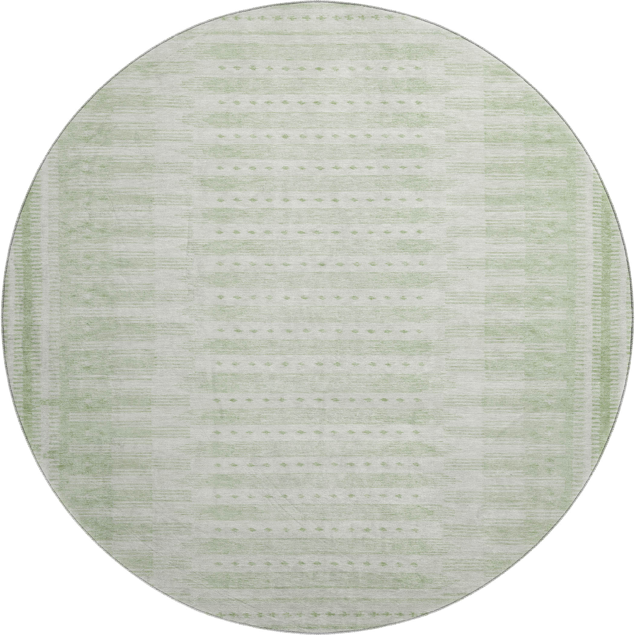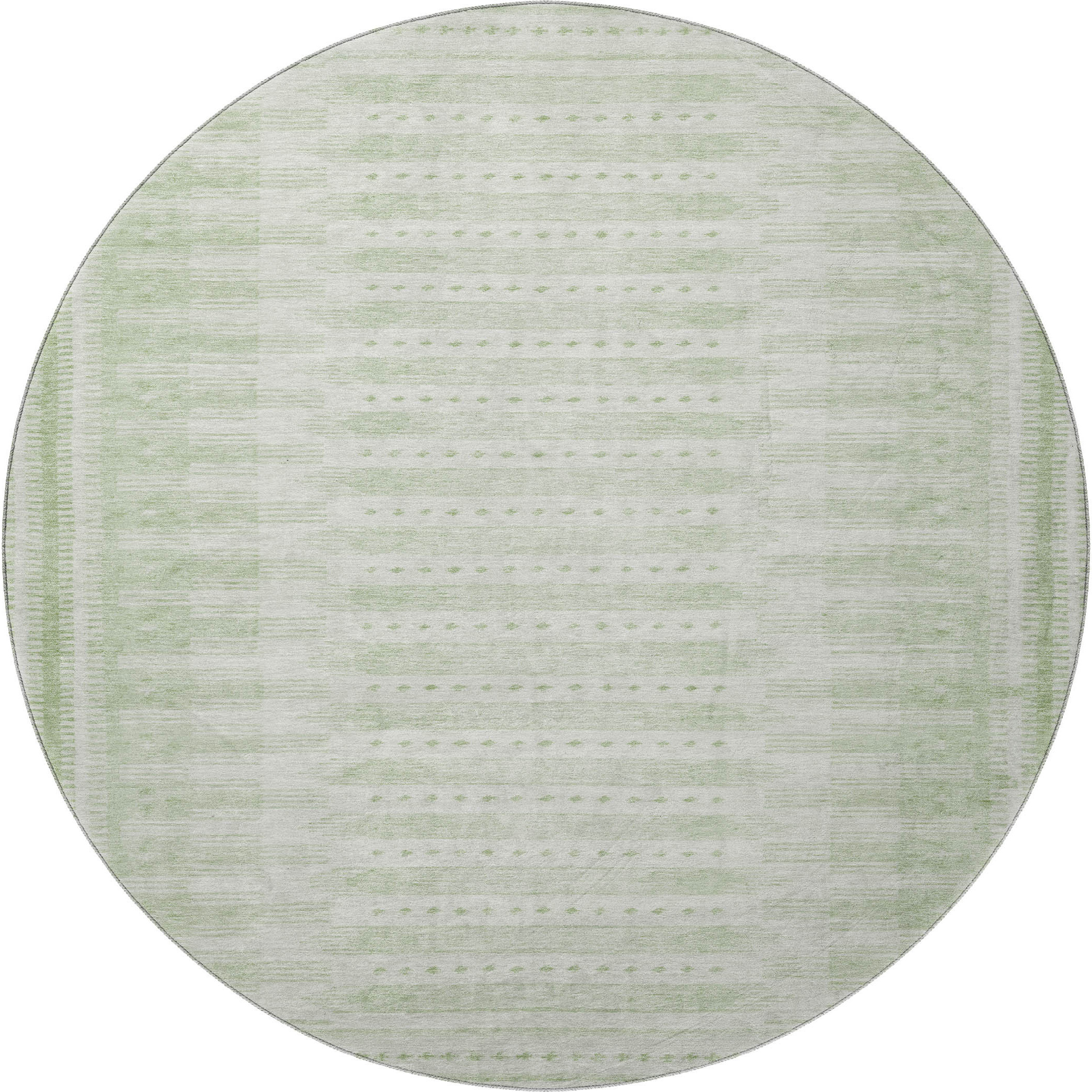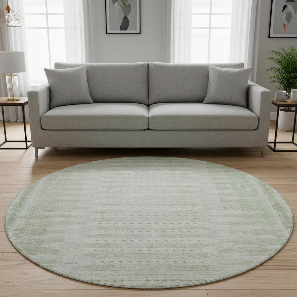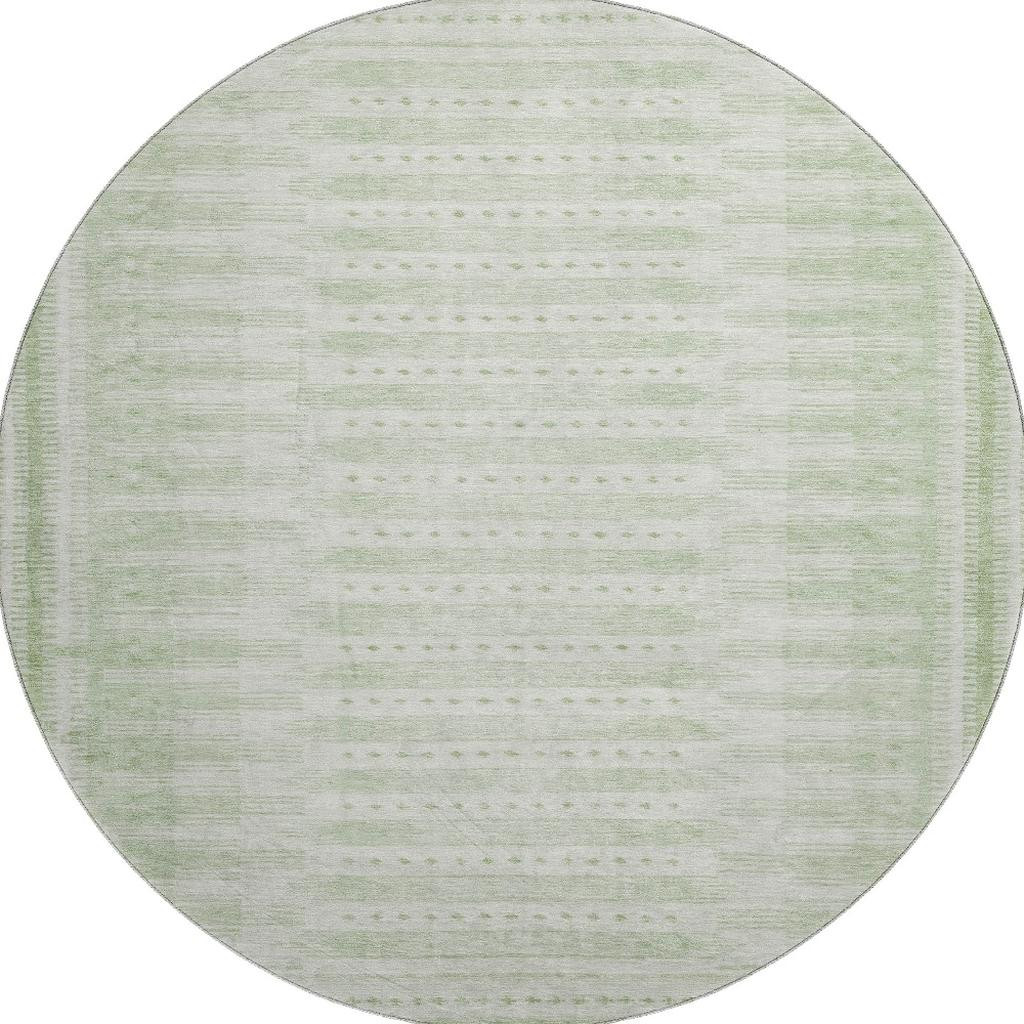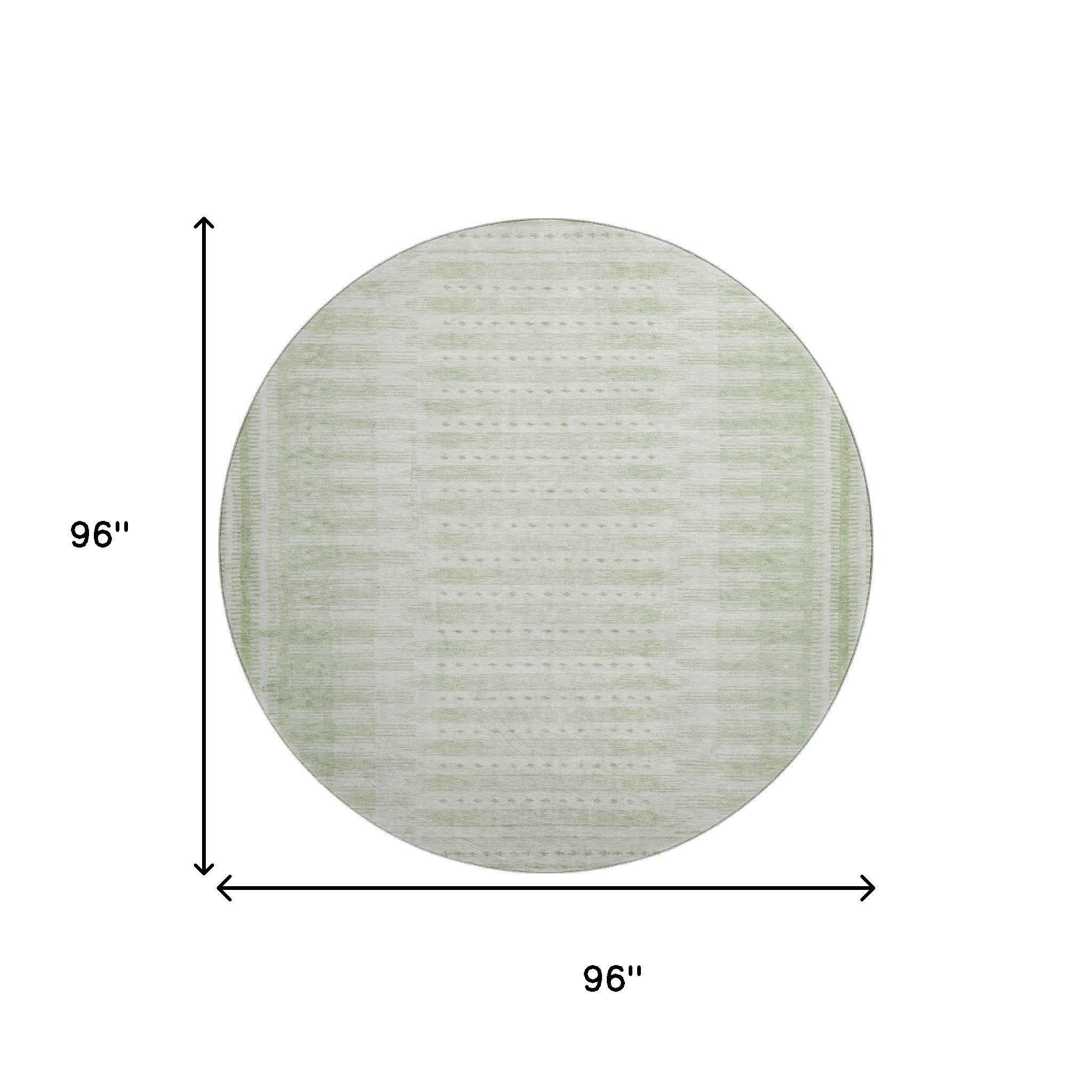 Add great coloration and comfortable texture to your space with this 8-foot sage and fern green geometric washable round rug with uv protection. Ideal for spaces with kids and pets, this rug is stain resistant to help repel dirt and spilled liquids. Built to last, this rug crafted from polyester fibers is known for its durability and long lasting appeal. Rugs are a great way to showcase your style, hide imperfections, warm your home and reduce noise. This larger sized, transitional styled rug is ready to create a focal point or statement piece in your room. 96.00-inch h x 96.00-inch w x 0.39-inch d.