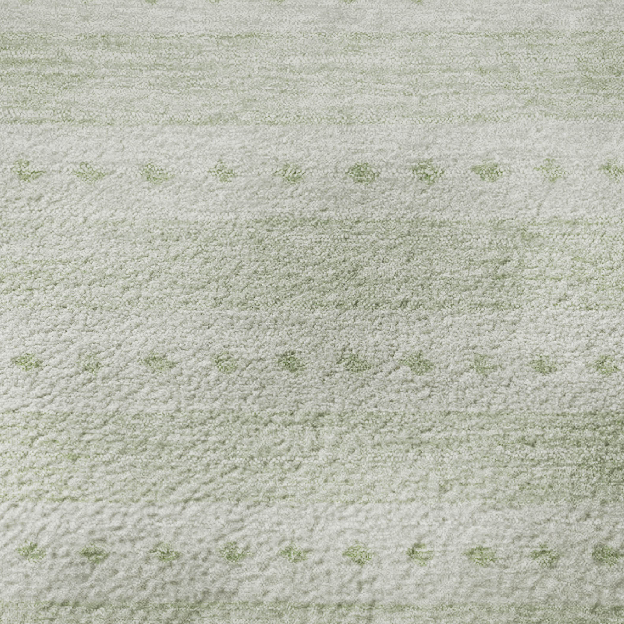 Set an inviting tone in your space with this 8-foot x 10-foot sage and fern green geometric washable area rug with uv protection. Ideal for spaces with kids and pets, this rug is stain resistant to help repel dirt and spilled liquids. Built to last, this rug crafted from polyester fibers is known for its durability and long lasting appeal. Rugs are a great way to showcase your style, hide imperfections, warm your home and reduce noise. This larger sized, transitional styled rug is ready to create a focal point or statement piece in your room. 96.00-inch h x 120.00-inch w x 0.39-inch d.