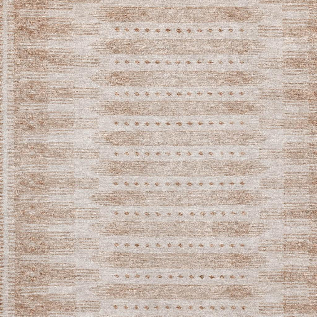 Add some artistry to your room with this 8-foot x 10-foot salmon and beige geometric washable area rug with uv protection. Ideal for spaces with kids and pets, this rug is stain resistant to help repel dirt and spilled liquids. Built to last, this rug crafted from polyester fibers is known for its durability and long lasting appeal. Rugs are a great way to showcase your style, hide imperfections, warm your home and reduce noise. This larger sized, transitional styled rug is ready to create a focal point or statement piece in your room. 96.00-inch h x 120.00-inch w x 0.39-inch d.