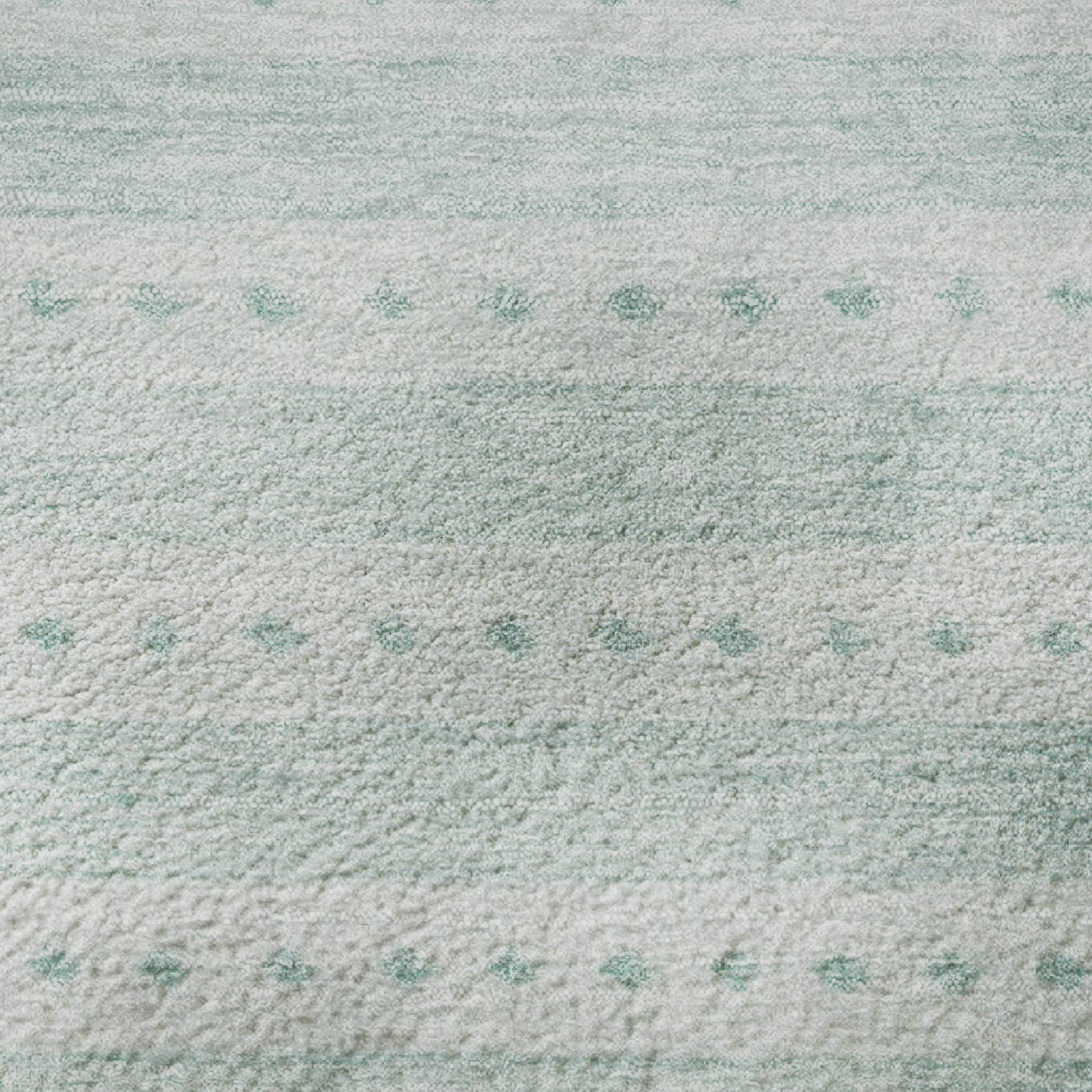 Add great coloration and comfortable texture to your space with this 9-foot x 12-foot turquoise and aqua geometric washable area rug with uv protection. Ideal for spaces with kids and pets, this rug is stain resistant to help repel dirt and spilled liquids. Built to last, this rug crafted from polyester fibers is known for its durability and long lasting appeal. Rugs are a great way to showcase your style, hide imperfections, warm your home and reduce noise. This larger sized, transitional styled rug is ready to create a focal point or statement piece in your room. 108.00-inch h x 144.00-inch w x 0.39-inch d.