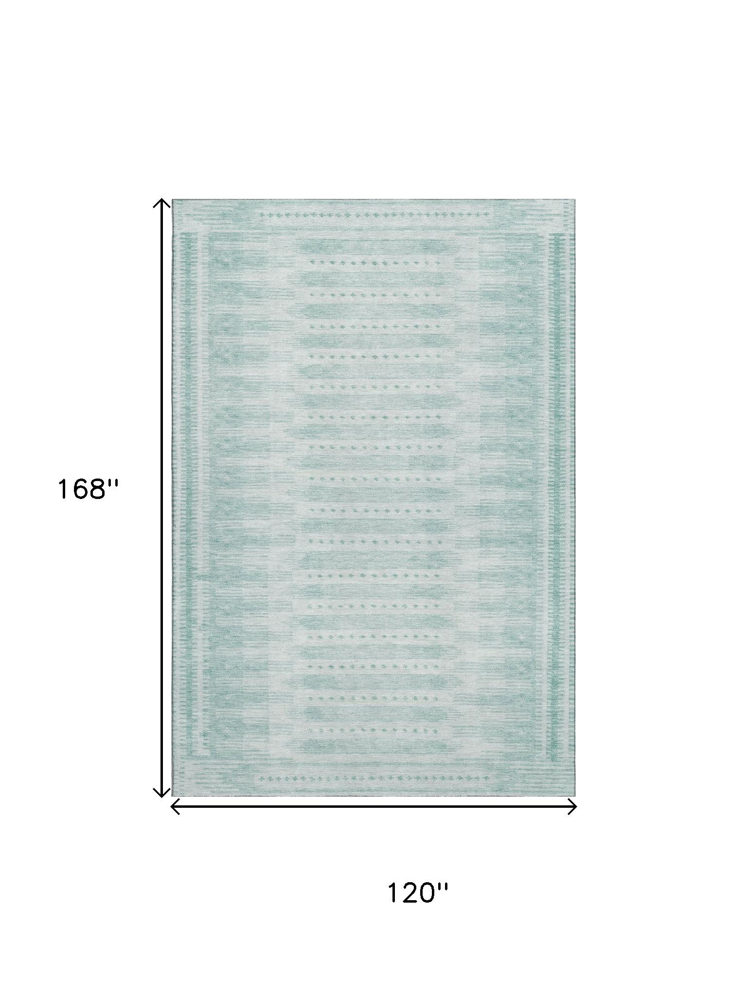Add great coloration and comfortable texture to your space with this 10-foot x 14-foot turquoise and aqua geometric washable area rug with uv protection. Ideal for spaces with kids and pets, this rug is stain resistant to help repel dirt and spilled liquids. Built to last, this rug crafted from polyester fibers is known for its durability and long lasting appeal. Rugs are a great way to showcase your style, hide imperfections, warm your home and reduce noise. This larger sized, transitional styled rug is ready to create a focal point or statement piece in your room. 120.00-inch h x 168.00-inch w x 0.39-inch d.