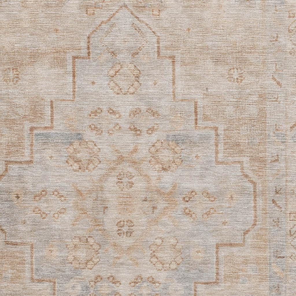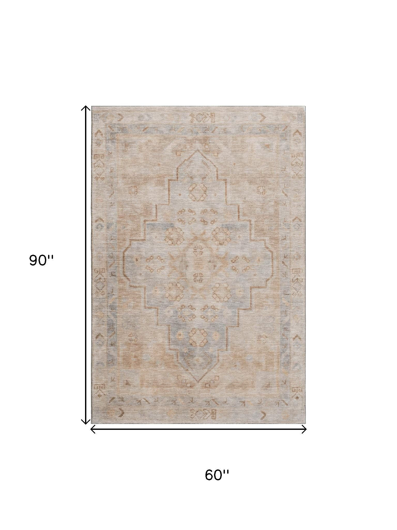 Add some artistry to your room with this 5-foot x 8-foot copper and gray medallion washable area rug with uv protection. Ideal for spaces with kids and pets, this rug is stain resistant to help repel dirt and spilled liquids. Built to last, this rug crafted from polyester fibers is known for its durability and long lasting appeal. Rugs are a great way to showcase your style, hide imperfections, warm your home and reduce noise. This larger sized, transitional styled rug is ready to create a focal point or statement piece in your room. 60.00-inch h x 90.00-inch w x 0.39-inch d.
