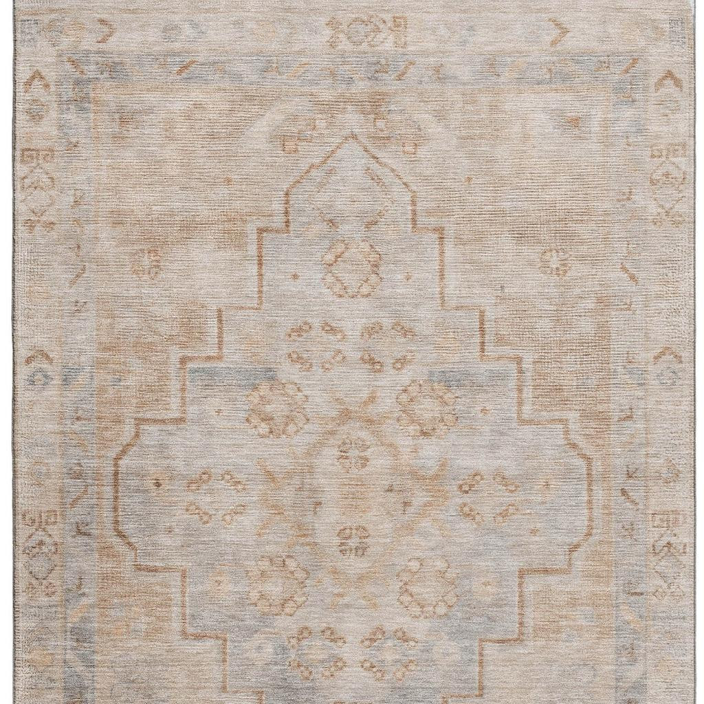 Add some artistry to your room with this 8-foot x 10-foot copper and gray medallion washable area rug with uv protection. Ideal for spaces with kids and pets, this rug is stain resistant to help repel dirt and spilled liquids. Built to last, this rug crafted from polyester fibers is known for its durability and long lasting appeal. Rugs are a great way to showcase your style, hide imperfections, warm your home and reduce noise. This larger sized, transitional styled rug is ready to create a focal point or statement piece in your room. 96.00-inch h x 120.00-inch w x 0.39-inch d.