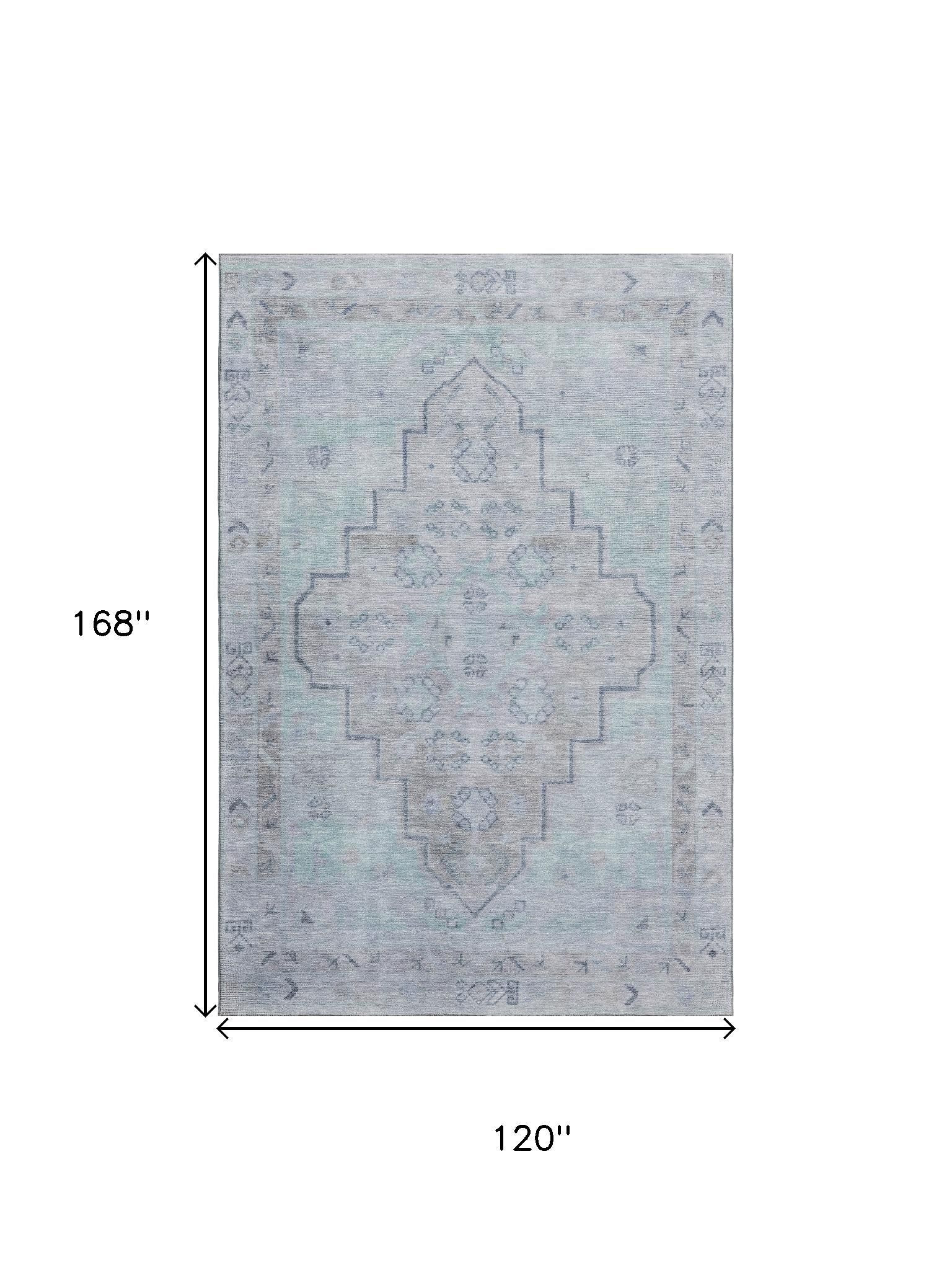 Set an inviting tone in your space with this 10-foot x 14-foot gray and teal medallion washable area rug with uv protection. Ideal for spaces with kids and pets, this rug is stain resistant to help repel dirt and spilled liquids. Built to last, this rug crafted from polyester fibers is known for its durability and long lasting appeal. Rugs are a great way to showcase your style, hide imperfections, warm your home and reduce noise. This larger sized, transitional styled rug is ready to create a focal point or statement piece in your room. 120.00-inch h x 168.00-inch w x 0.39-inch d.