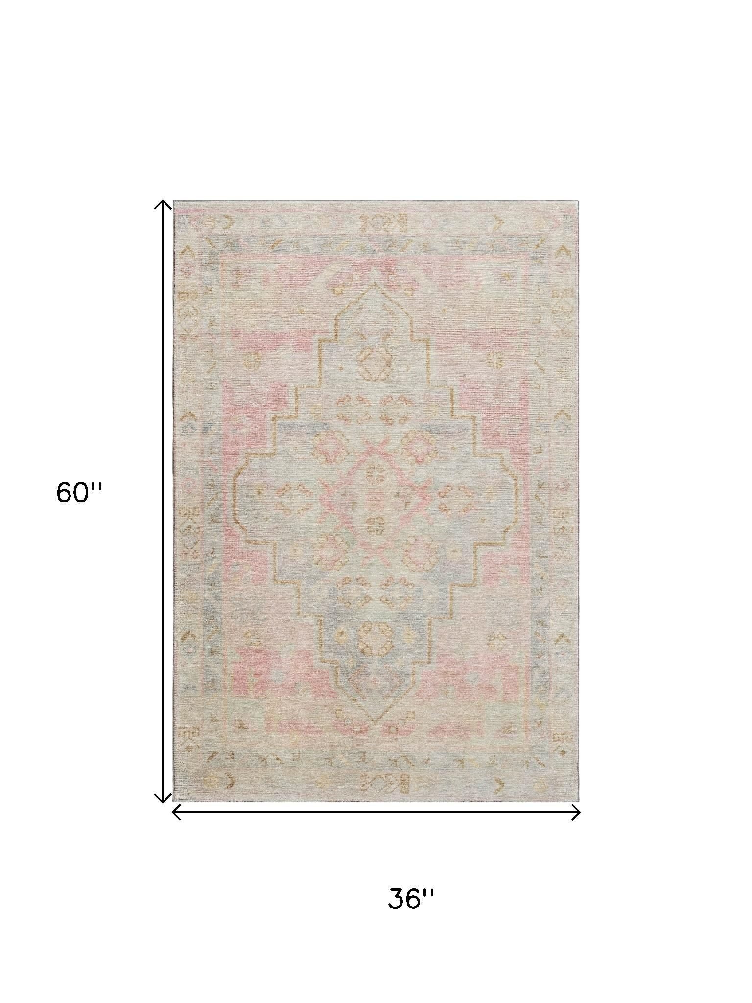 Add great coloration and comfortable texture to your space with this 3-foot x 5-foot pink and gray medallion washable area rug with uv protection. Ideal for spaces with kids and pets, this rug is stain resistant to help repel dirt and spilled liquids. Built to last, this rug crafted from polyester fibers is known for its durability and long lasting appeal. Rugs are a great way to showcase your style, hide imperfections, warm your home and reduce noise. This smaller sized, transitional styled rug is just what you need for your walkway, bedside, in front of door, cabinet, refrigerator, or chair. 36.00-inch h x 60.00-inch w x 0.39-inch d.