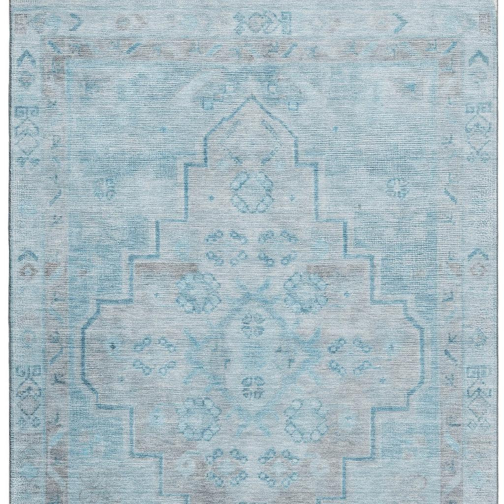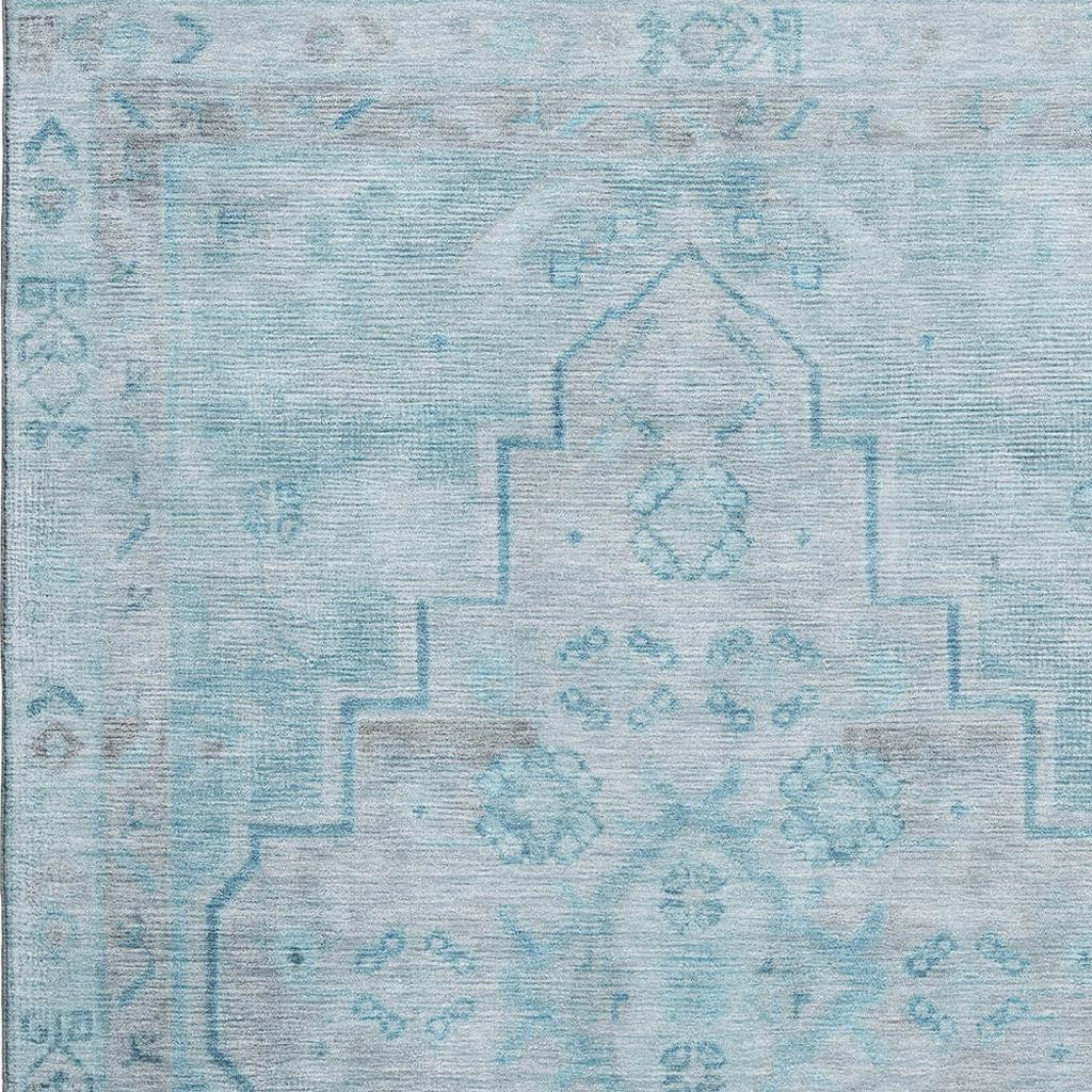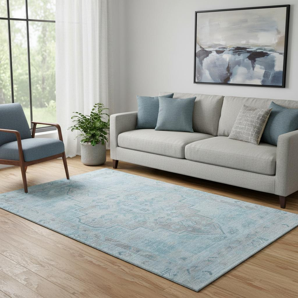 Add great coloration and comfortable texture to your space with this 5-foot x 8-foot sky blue and gray medallion washable area rug with uv protection. Ideal for spaces with kids and pets, this rug is stain resistant to help repel dirt and spilled liquids. Built to last, this rug crafted from polyester fibers is known for its durability and long lasting appeal. Rugs are a great way to showcase your style, hide imperfections, warm your home and reduce noise. This larger sized, transitional styled rug is ready to create a focal point or statement piece in your room. 60.00-inch h x 90.00-inch w x 0.39-inch d.