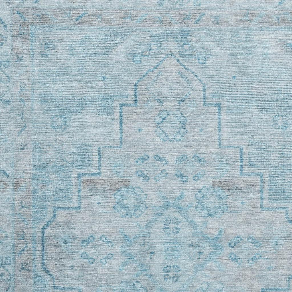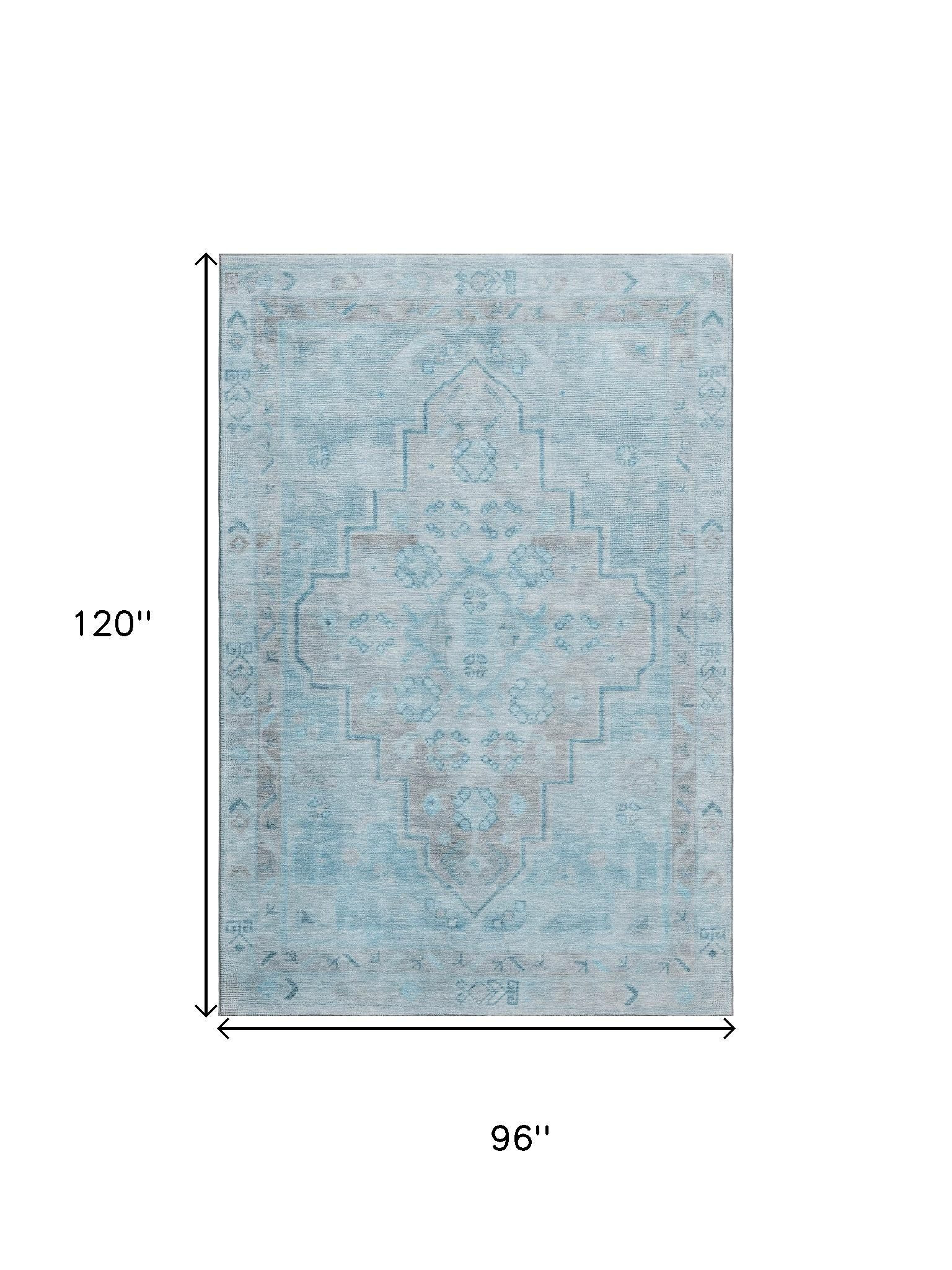 Set an inviting tone in your space with this 8-foot x 10-foot sky blue and gray medallion washable area rug with uv protection. Ideal for spaces with kids and pets, this rug is stain resistant to help repel dirt and spilled liquids. Built to last, this rug crafted from polyester fibers is known for its durability and long lasting appeal. Rugs are a great way to showcase your style, hide imperfections, warm your home and reduce noise. This larger sized, transitional styled rug is ready to create a focal point or statement piece in your room. 96.00-inch h x 120.00-inch w x 0.39-inch d.