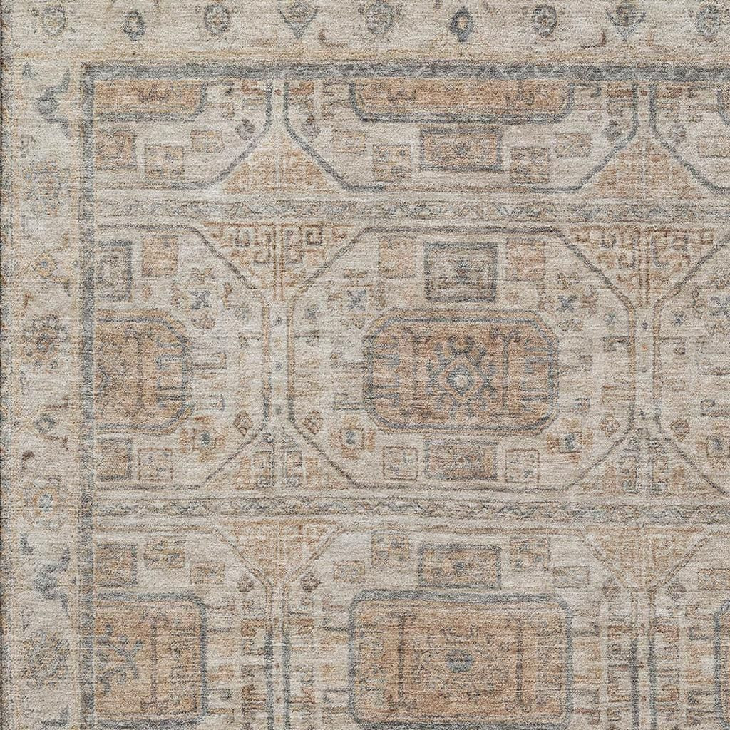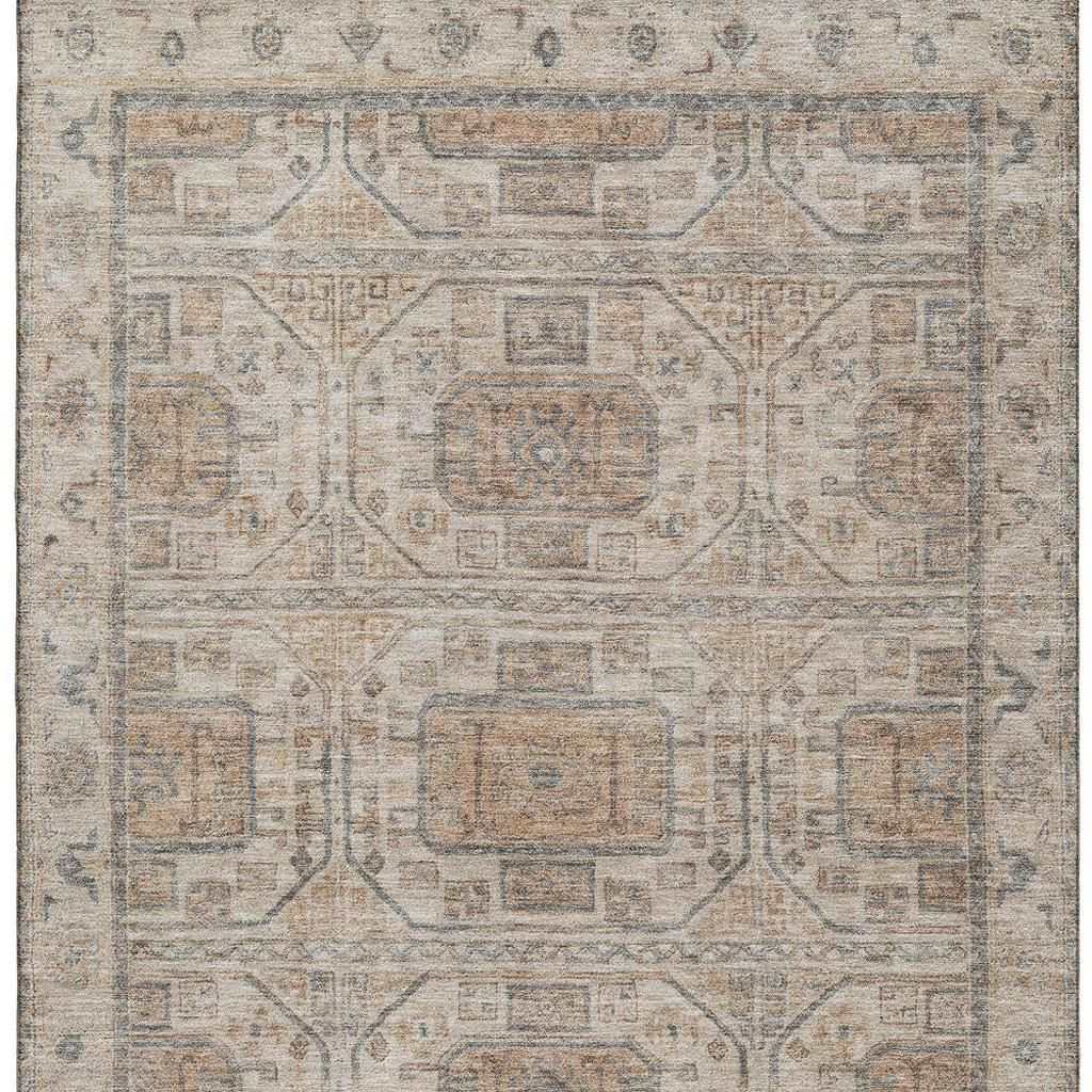 Set an inviting tone in your space with this 5-foot x 8-foot beige coffee and gray geometric washable area rug with uv protection. Ideal for spaces with kids and pets, this rug is stain resistant to help repel dirt and spilled liquids. Built to last, this rug crafted from polyester fibers is known for its durability and long lasting appeal. Rugs are a great way to showcase your style, hide imperfections, warm your home and reduce noise. This larger sized, transitional styled rug is ready to create a focal point or statement piece in your room. 60.00-inch h x 90.00-inch w x 0.39-inch d.