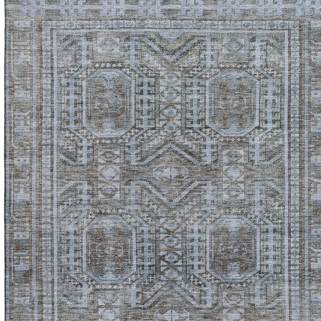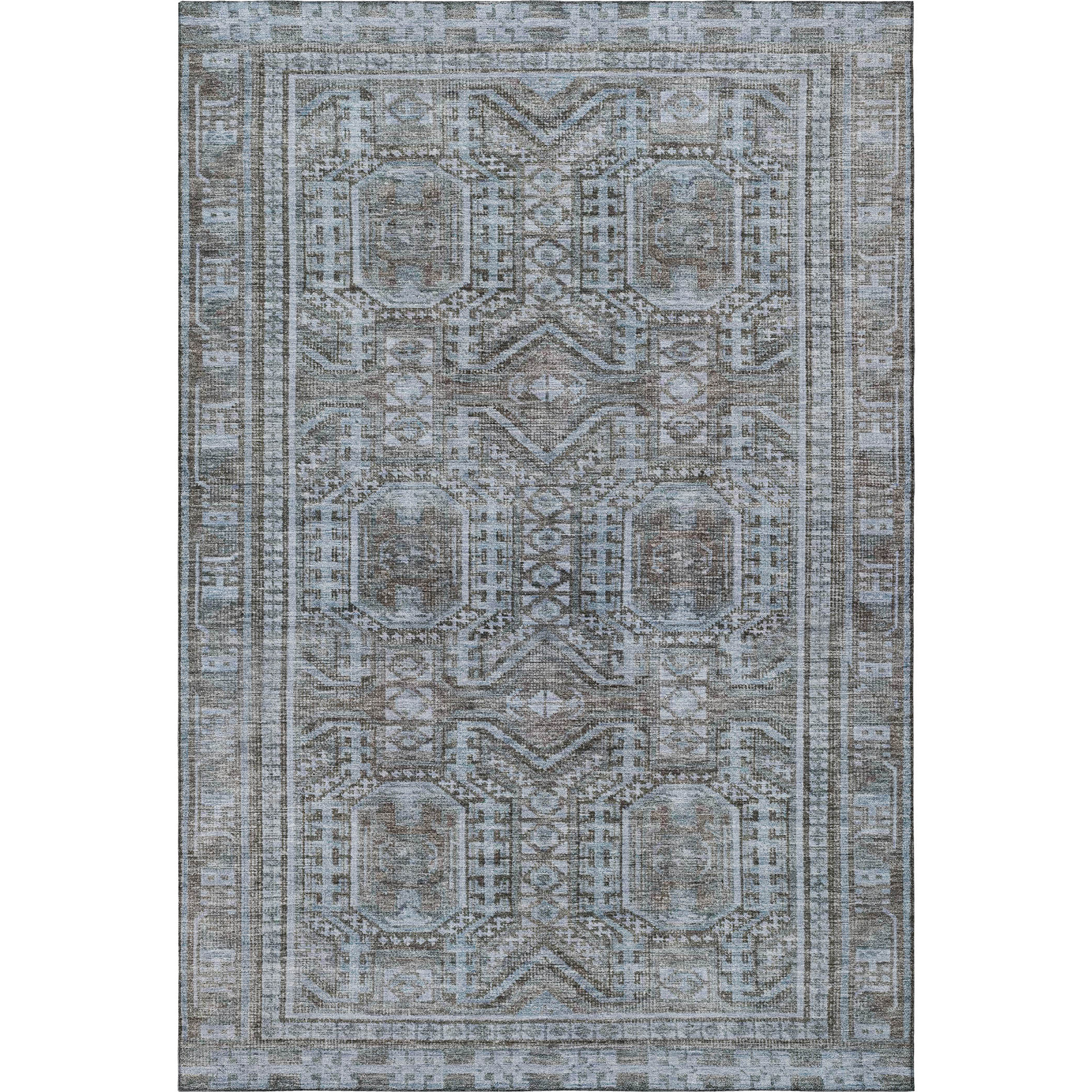 Add great coloration and comfortable texture to your space with this 8-foot x 10-foot chocolate and blue geometric washable area rug with uv protection. Ideal for spaces with kids and pets, this rug is stain resistant to help repel dirt and spilled liquids. Built to last, this rug crafted from polyester fibers is known for its durability and long lasting appeal. Rugs are a great way to showcase your style, hide imperfections, warm your home and reduce noise. This larger sized, transitional styled rug is ready to create a focal point or statement piece in your room. 96.00-inch h x 120.00-inch w x 0.39-inch d.
