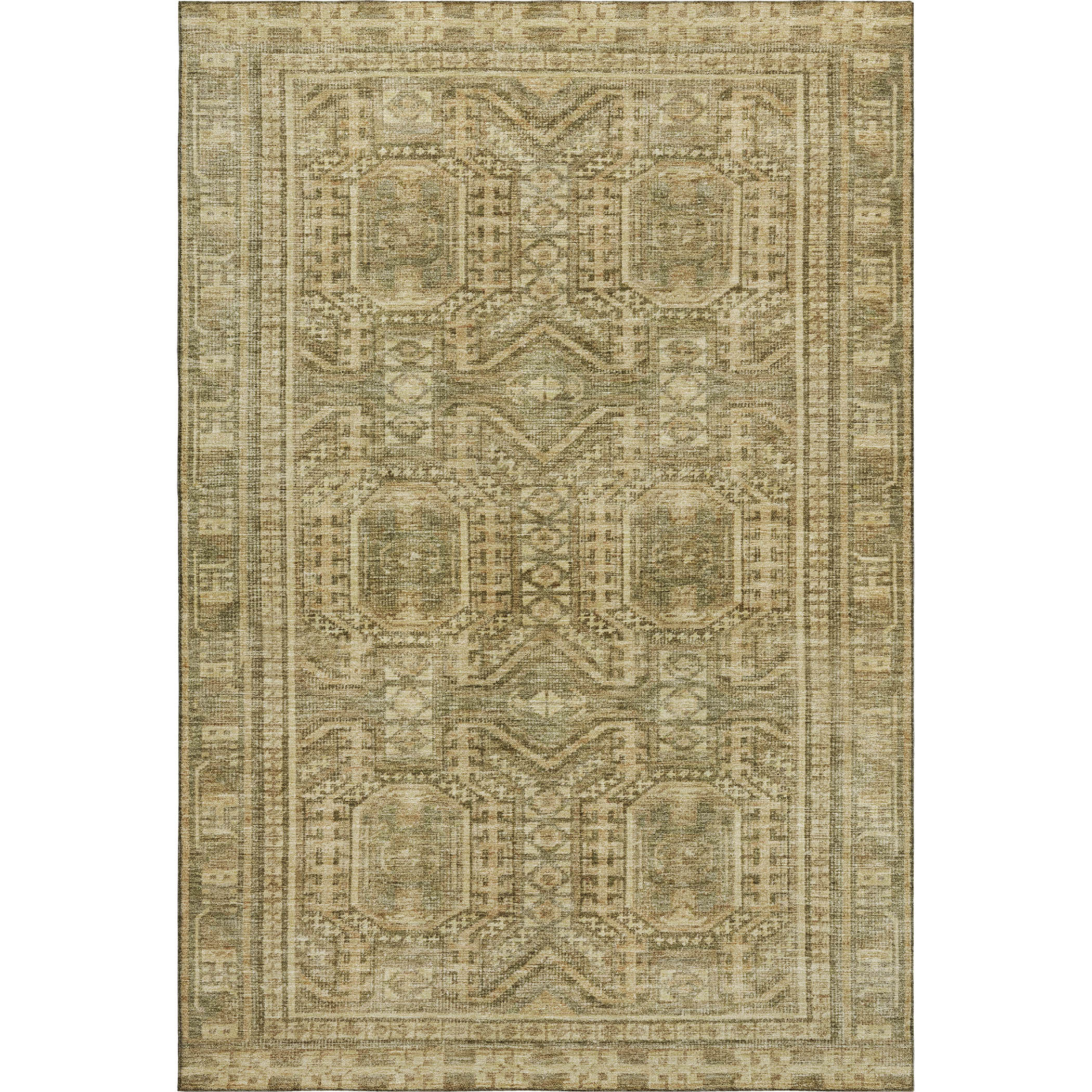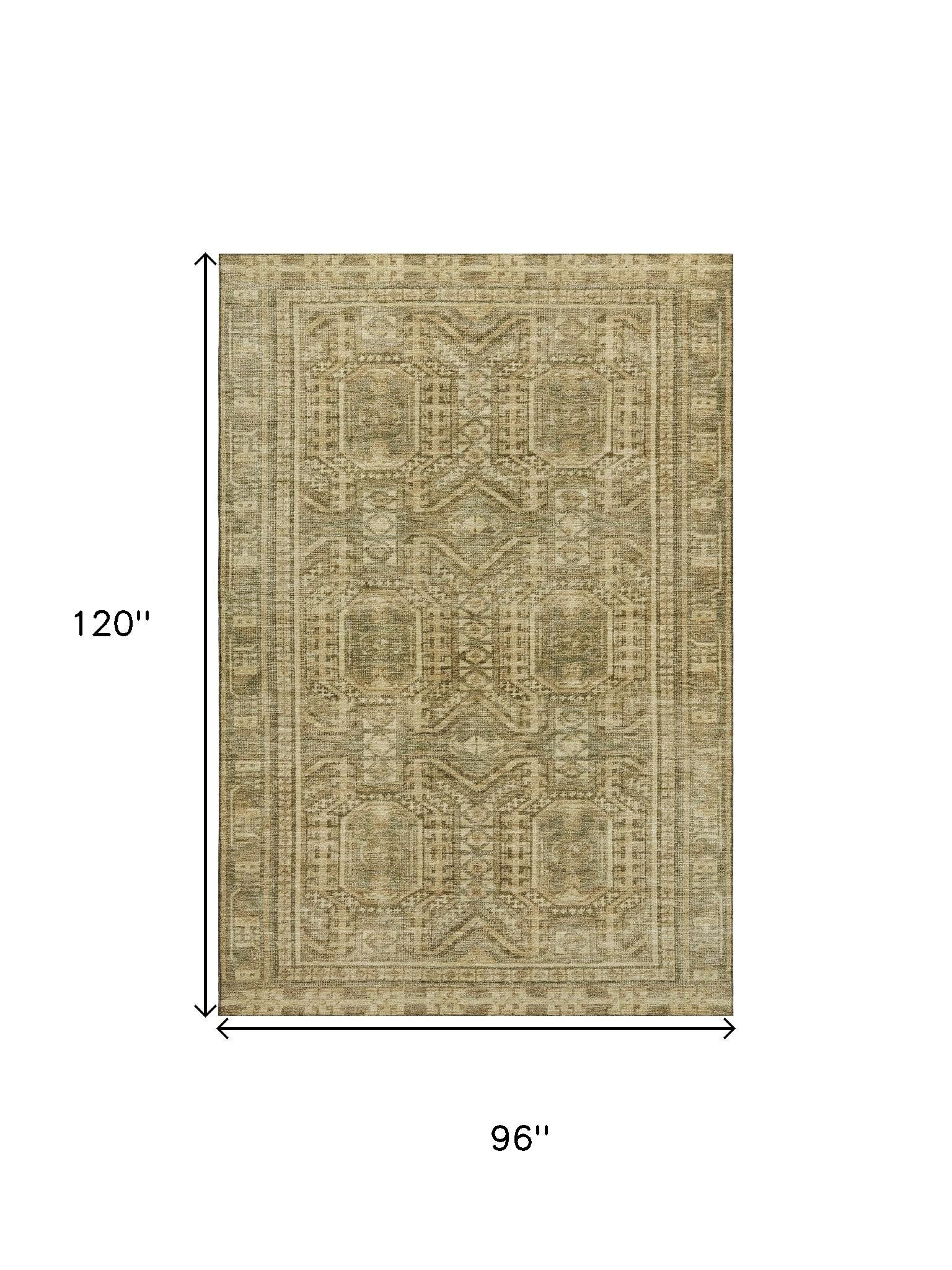 This 8-foot x 10-foot khaki and taupe geometric washable area rug with uv protection, is a great way to add warmth to a room. Ideal for spaces with kids and pets, this rug is stain resistant to help repel dirt and spilled liquids. Built to last, this rug crafted from polyester fibers is known for its durability and long lasting appeal. Rugs are a great way to showcase your style, hide imperfections, warm your home and reduce noise. This larger sized, transitional styled rug is ready to create a focal point or statement piece in your room. 96.00-inch h x 120.00-inch w x 0.39-inch d.