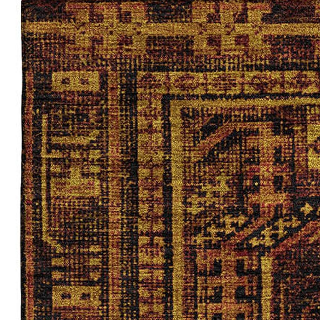 Set an inviting tone in your space with this 9-foot x 12-foot rust and black geometric washable area rug with uv protection. Ideal for spaces with kids and pets, this rug is stain resistant to help repel dirt and spilled liquids. Built to last, this rug crafted from polyester fibers is known for its durability and long lasting appeal. Rugs are a great way to showcase your style, hide imperfections, warm your home and reduce noise. This larger sized, transitional styled rug is ready to create a focal point or statement piece in your room. 108.00-inch h x 144.00-inch w x 0.39-inch d.
