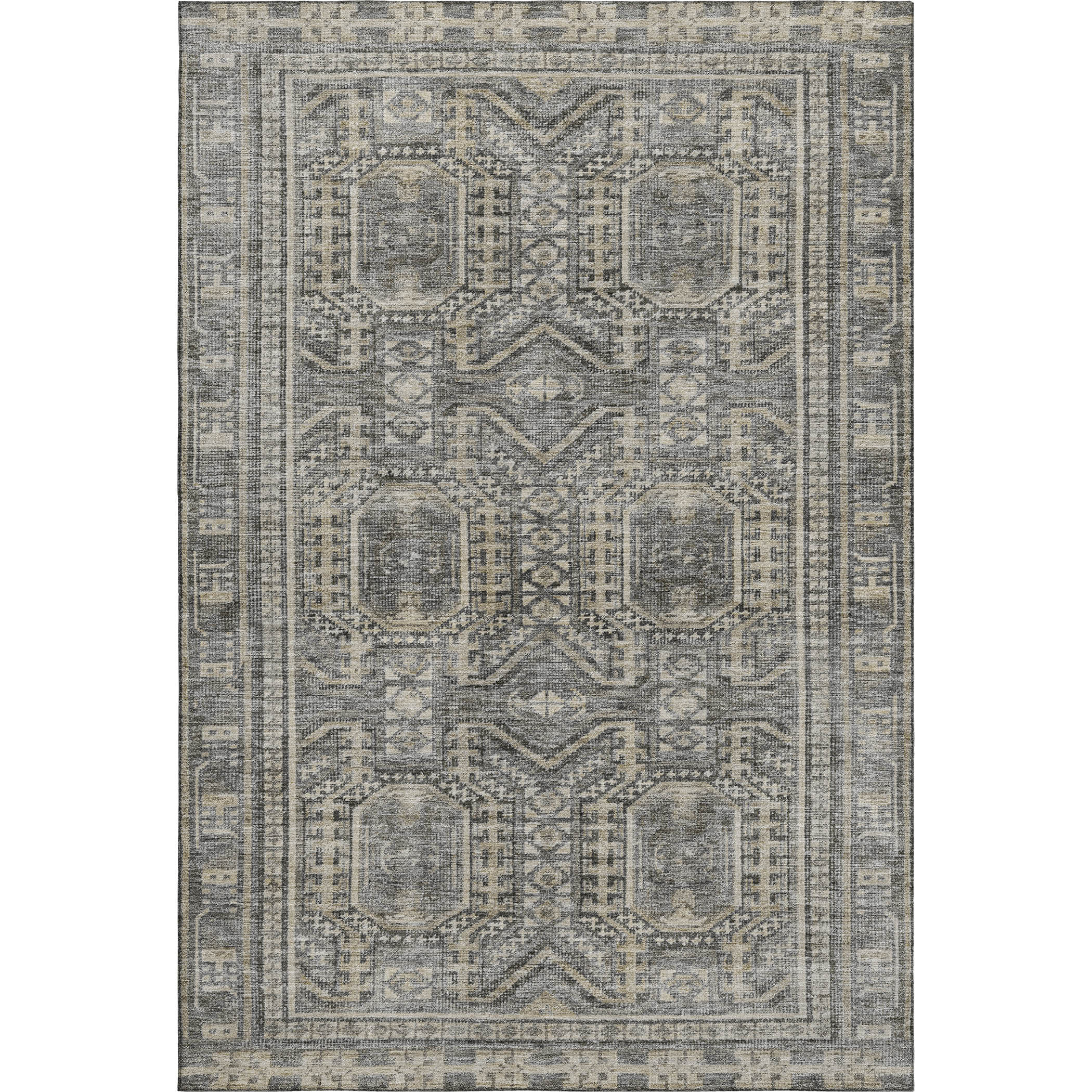 Add great coloration and comfortable texture to your space with this 10-foot x 14-foot pewter and gray geometric washable area rug with uv protection. Ideal for spaces with kids and pets, this rug is stain resistant to help repel dirt and spilled liquids. Built to last, this rug crafted from polyester fibers is known for its durability and long lasting appeal. Rugs are a great way to showcase your style, hide imperfections, warm your home and reduce noise. This larger sized, transitional styled rug is ready to create a focal point or statement piece in your room. 120.00-inch h x 168.00-inch w x 0.39-inch d.
