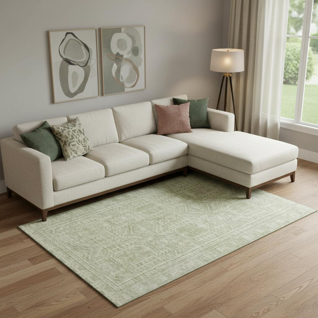 Add great coloration and comfortable texture to your space with this 10-foot x 14-foot sage and fern green geometric washable area rug with uv protection. Ideal for spaces with kids and pets, this rug is stain resistant to help repel dirt and spilled liquids. Built to last, this rug crafted from polyester fibers is known for its durability and long lasting appeal. Rugs are a great way to showcase your style, hide imperfections, warm your home and reduce noise. This larger sized, transitional styled rug is ready to create a focal point or statement piece in your room. 120.00-inch h x 168.00-inch w x 0.39-inch d.