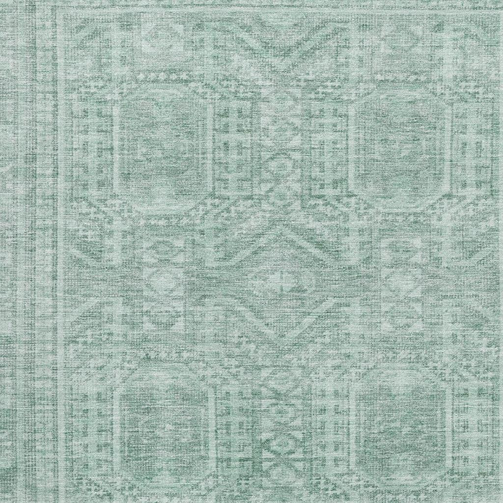 Add some artistry to your room with this 5-foot x 8-foot teal and aqua geometric washable area rug with uv protection. Ideal for spaces with kids and pets, this rug is stain resistant to help repel dirt and spilled liquids. Built to last, this rug crafted from polyester fibers is known for its durability and long lasting appeal. Rugs are a great way to showcase your style, hide imperfections, warm your home and reduce noise. This larger sized, transitional styled rug is ready to create a focal point or statement piece in your room. 60.00-inch h x 90.00-inch w x 0.39-inch d.