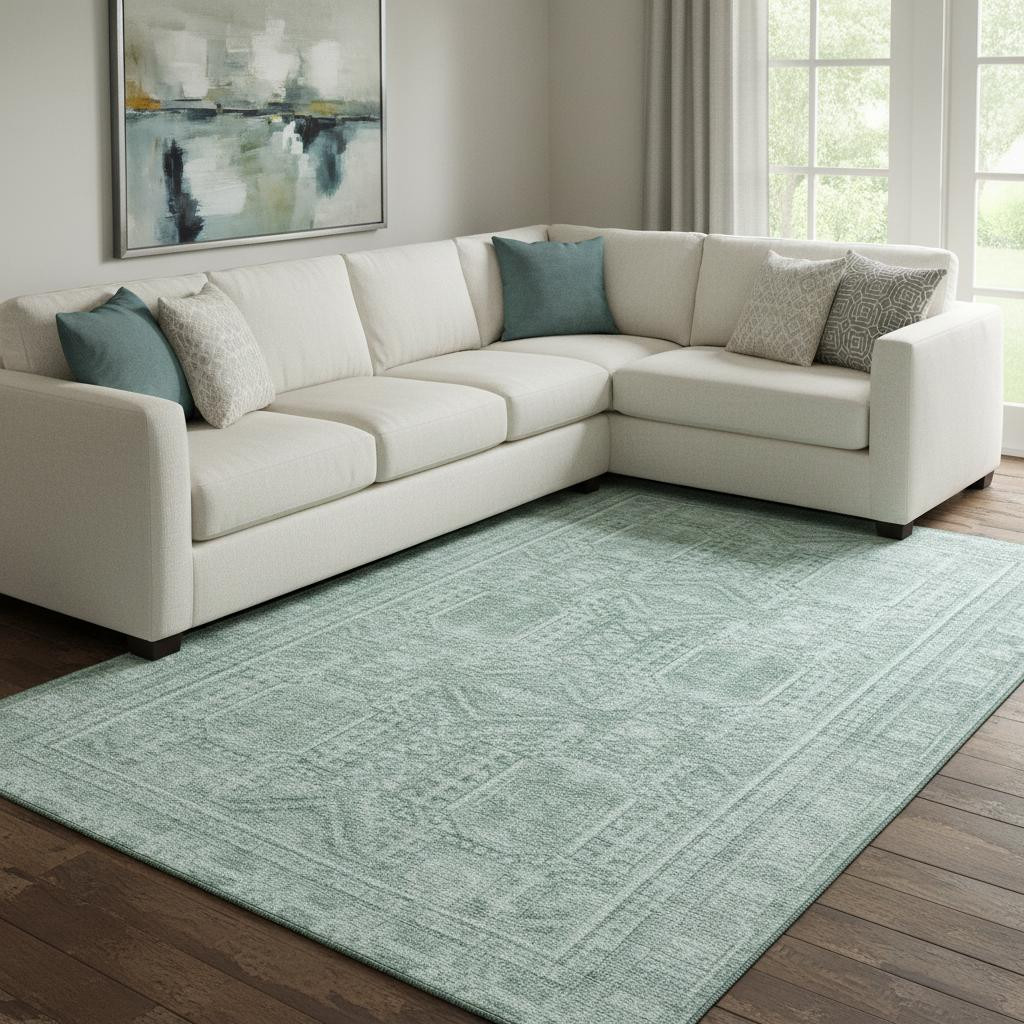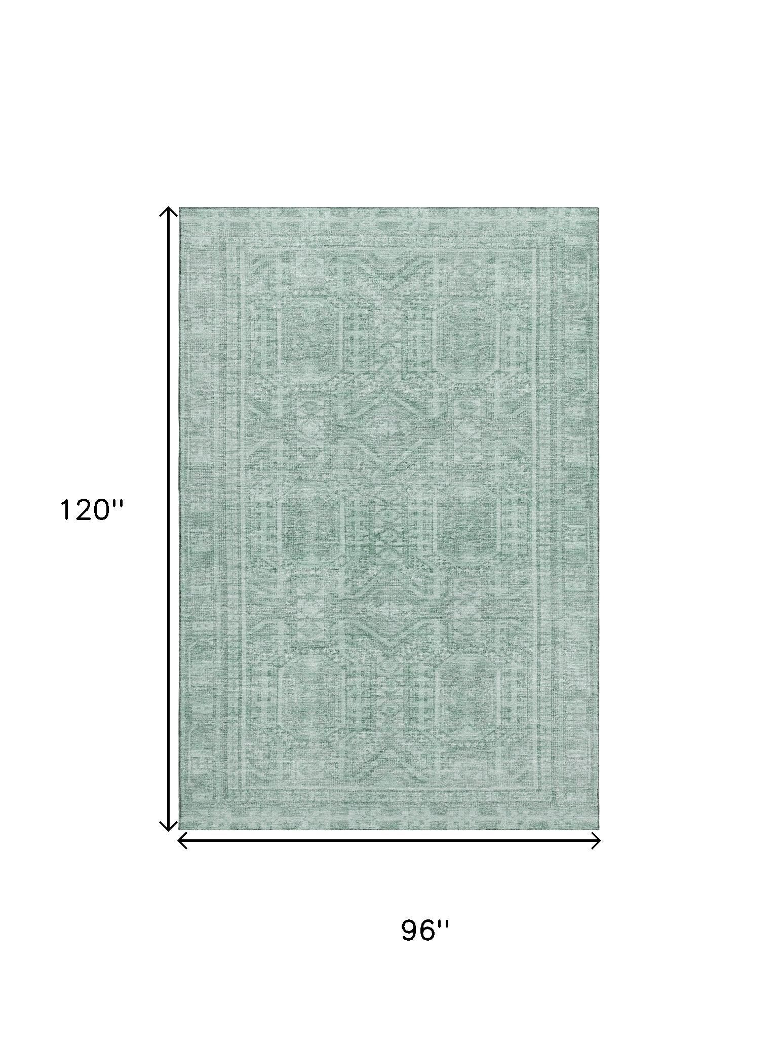 Add great coloration and comfortable texture to your space with this 8-foot x 10-foot teal and aqua geometric washable area rug with uv protection. Ideal for spaces with kids and pets, this rug is stain resistant to help repel dirt and spilled liquids. Built to last, this rug crafted from polyester fibers is known for its durability and long lasting appeal. Rugs are a great way to showcase your style, hide imperfections, warm your home and reduce noise. This larger sized, transitional styled rug is ready to create a focal point or statement piece in your room. 96.00-inch h x 120.00-inch w x 0.39-inch d.