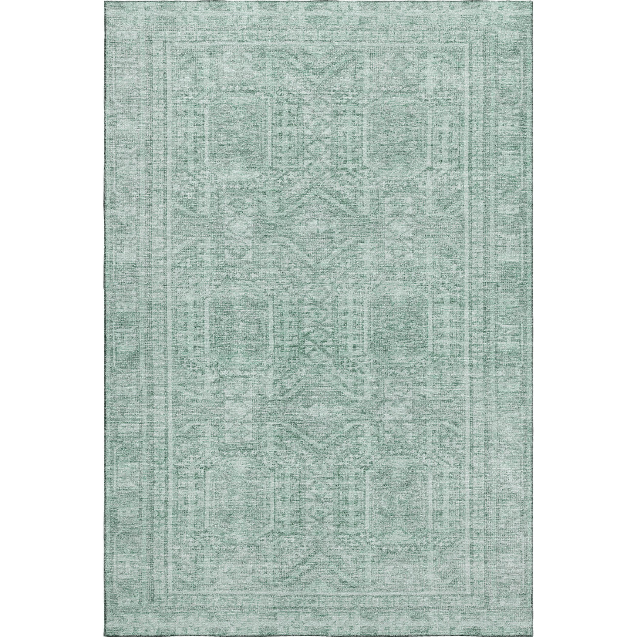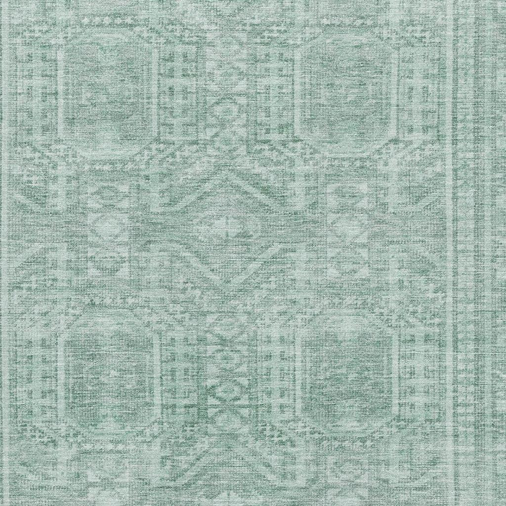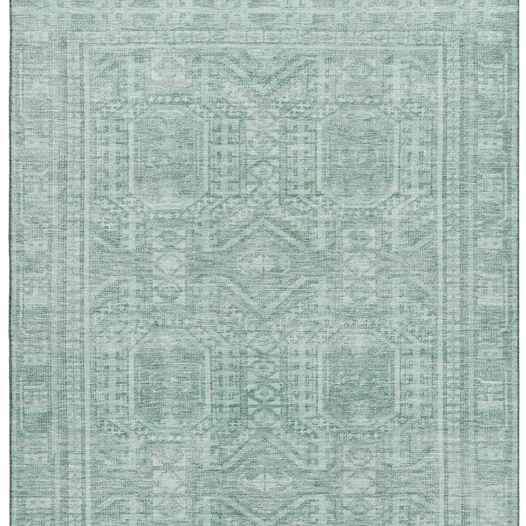 Set an inviting tone in your space with this 10-foot x 14-foot teal and aqua geometric washable area rug with uv protection. Ideal for spaces with kids and pets, this rug is stain resistant to help repel dirt and spilled liquids. Built to last, this rug crafted from polyester fibers is known for its durability and long lasting appeal. Rugs are a great way to showcase your style, hide imperfections, warm your home and reduce noise. This larger sized, transitional styled rug is ready to create a focal point or statement piece in your room. 120.00-inch h x 168.00-inch w x 0.39-inch d.