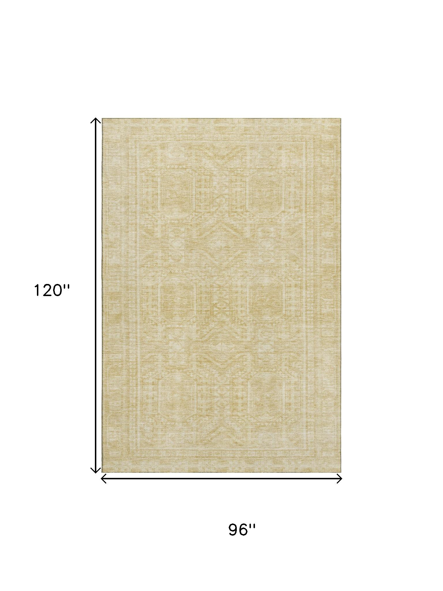 Add great coloration and comfortable texture to your space with this 8-foot x 10-foot wheat and beige geometric washable area rug with uv protection. Ideal for spaces with kids and pets, this rug is stain resistant to help repel dirt and spilled liquids. Built to last, this rug crafted from polyester fibers is known for its durability and long lasting appeal. Rugs are a great way to showcase your style, hide imperfections, warm your home and reduce noise. This larger sized, transitional styled rug is ready to create a focal point or statement piece in your room. 96.00-inch h x 120.00-inch w x 0.39-inch d.