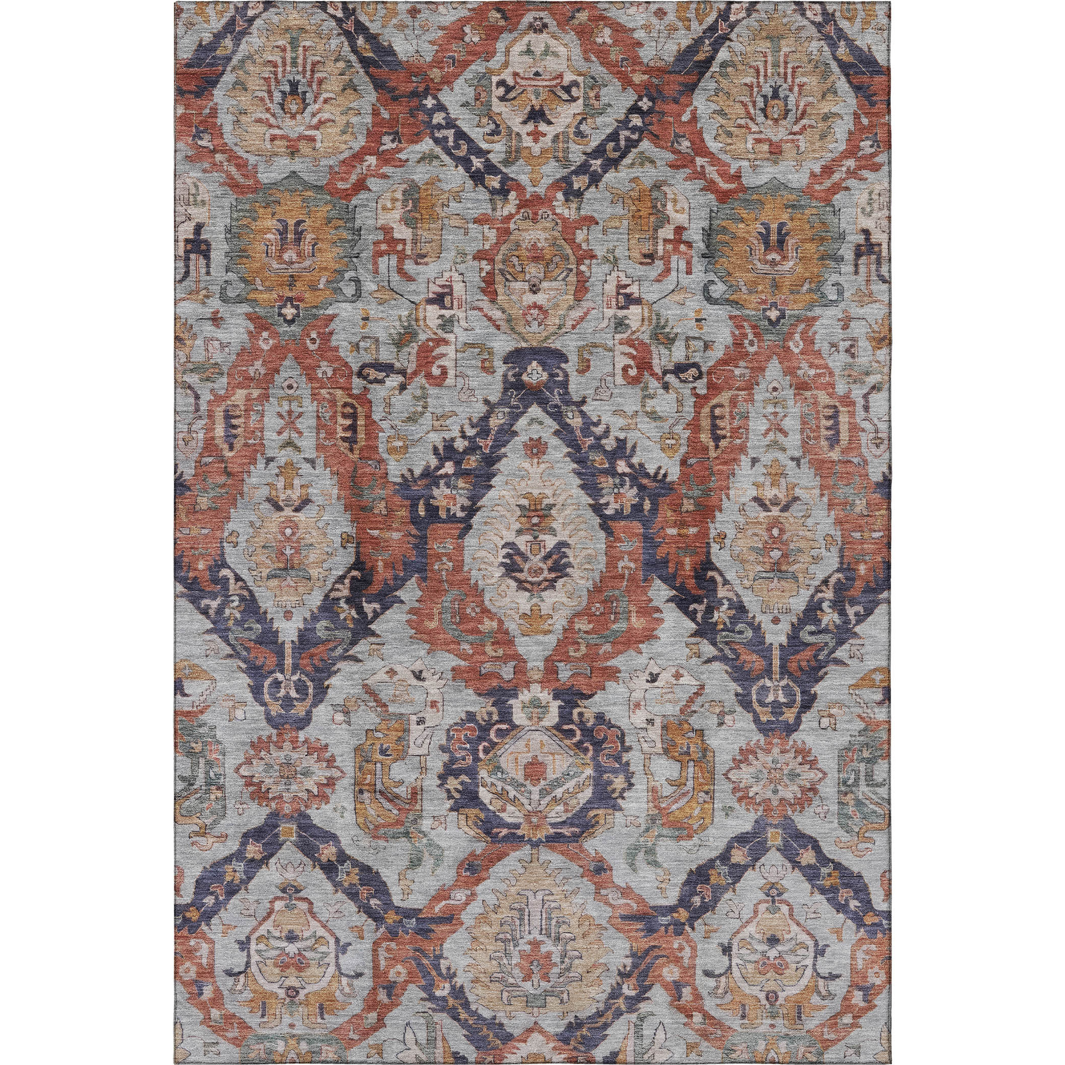 This 8-foot x 10-foot blue copper and beige ikat washable area rug with uv protection, is a great way to add warmth to a room. Ideal for spaces with kids and pets, this rug is stain resistant to help repel dirt and spilled liquids. Built to last, this rug crafted from polyester fibers is known for its durability and long lasting appeal. Rugs are a great way to showcase your style, hide imperfections, warm your home and reduce noise. This larger sized, transitional styled rug is ready to create a focal point or statement piece in your room. 96.00-inch h x 120.00-inch w x 0.39-inch d.