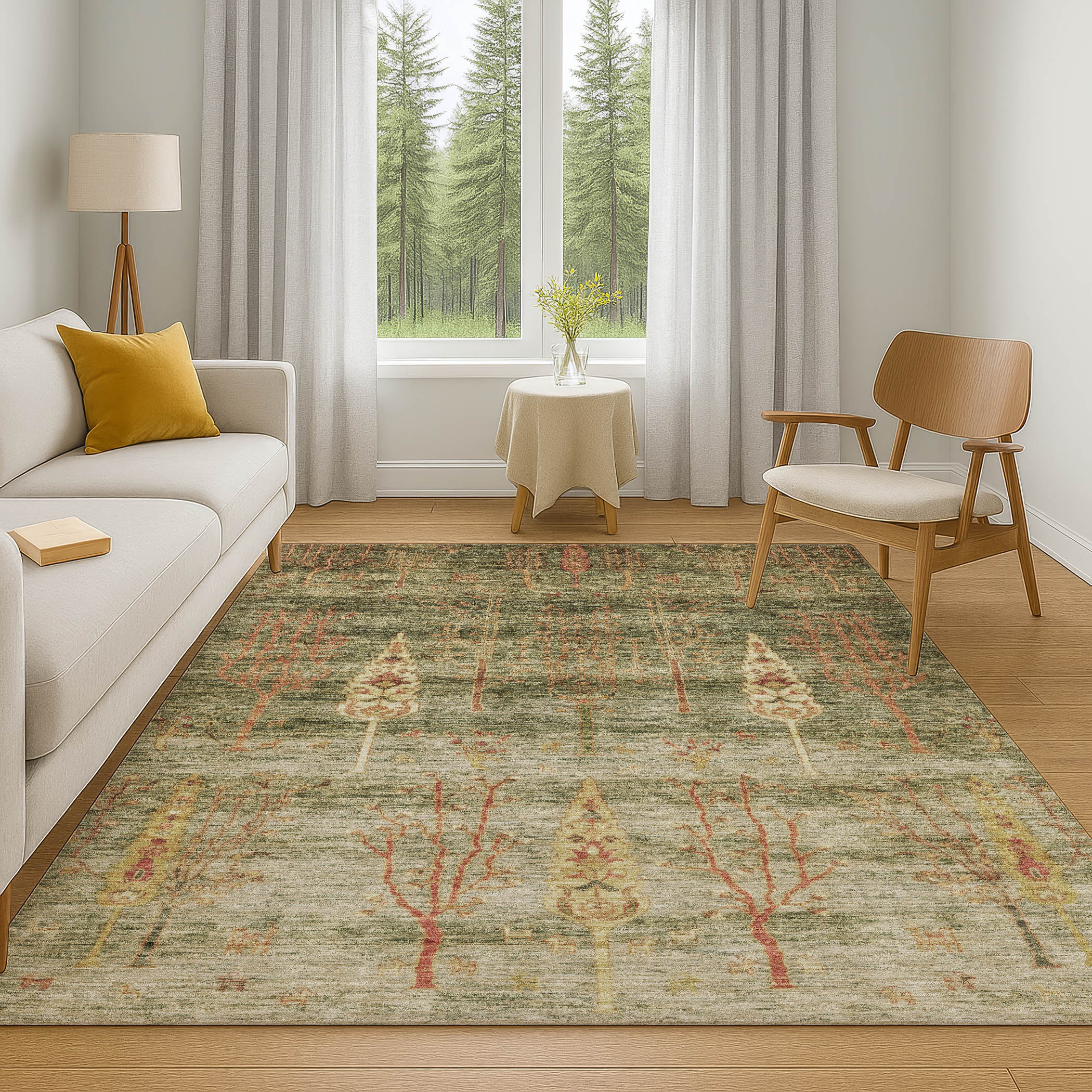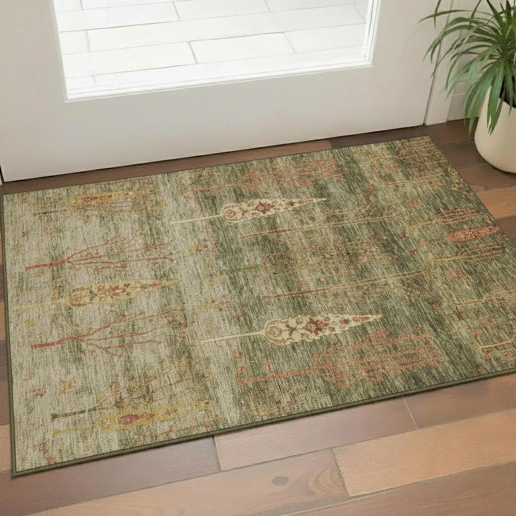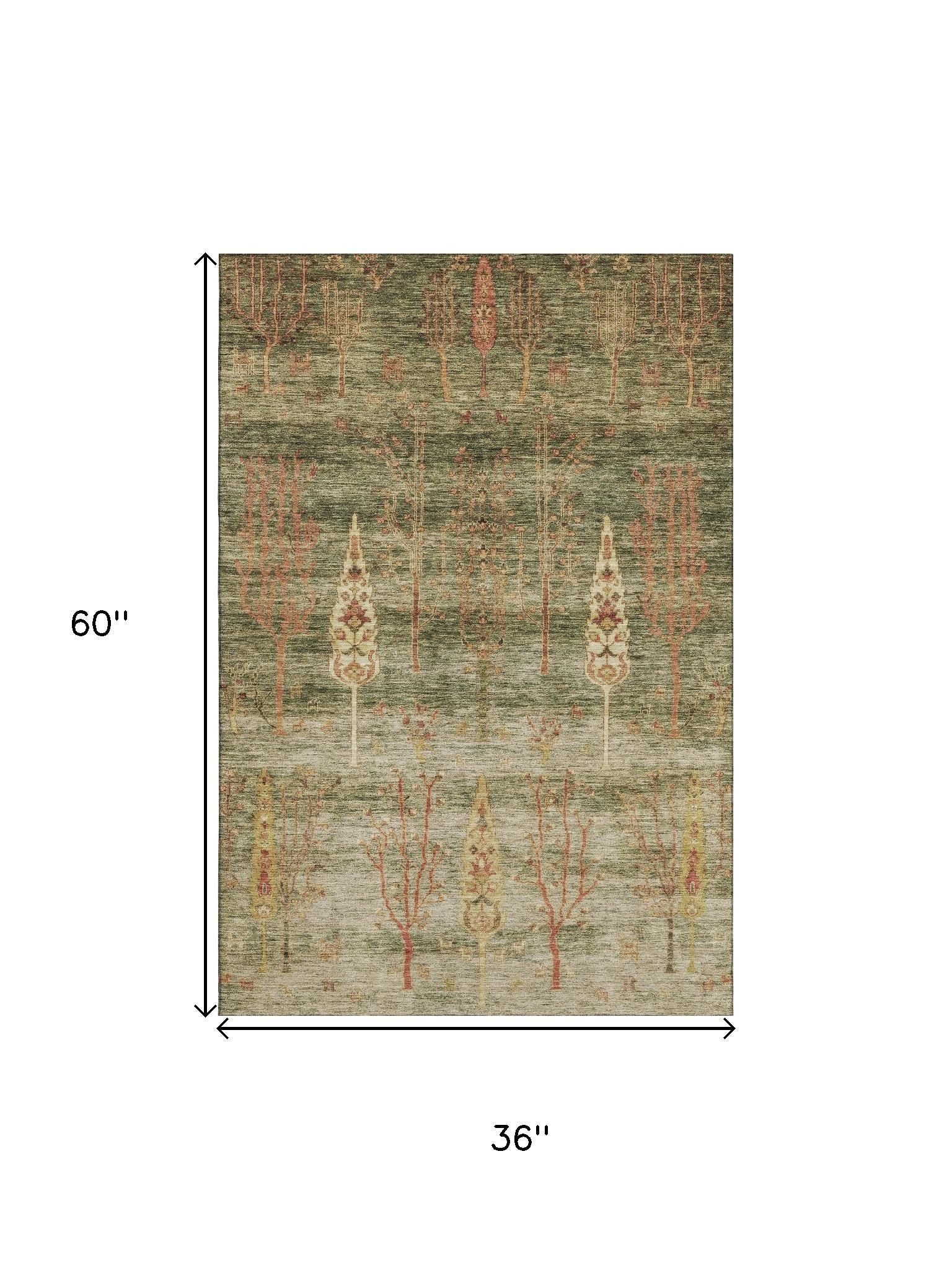 Add some artistry to your room with this 3-foot x 5-foot artichoke green and rust floral washable area rug with uv protection. Ideal for spaces with kids and pets, this rug is stain resistant to help repel dirt and spilled liquids. Built to last, this rug crafted from polyester fibers is known for its durability and long lasting appeal. Rugs are a great way to showcase your style, hide imperfections, warm your home and reduce noise. This smaller sized, transitional styled rug is just what you need for your walkway, bedside, in front of door, cabinet, refrigerator, or chair. 36.00-inch h x 60.00-inch w x 0.39-inch d.