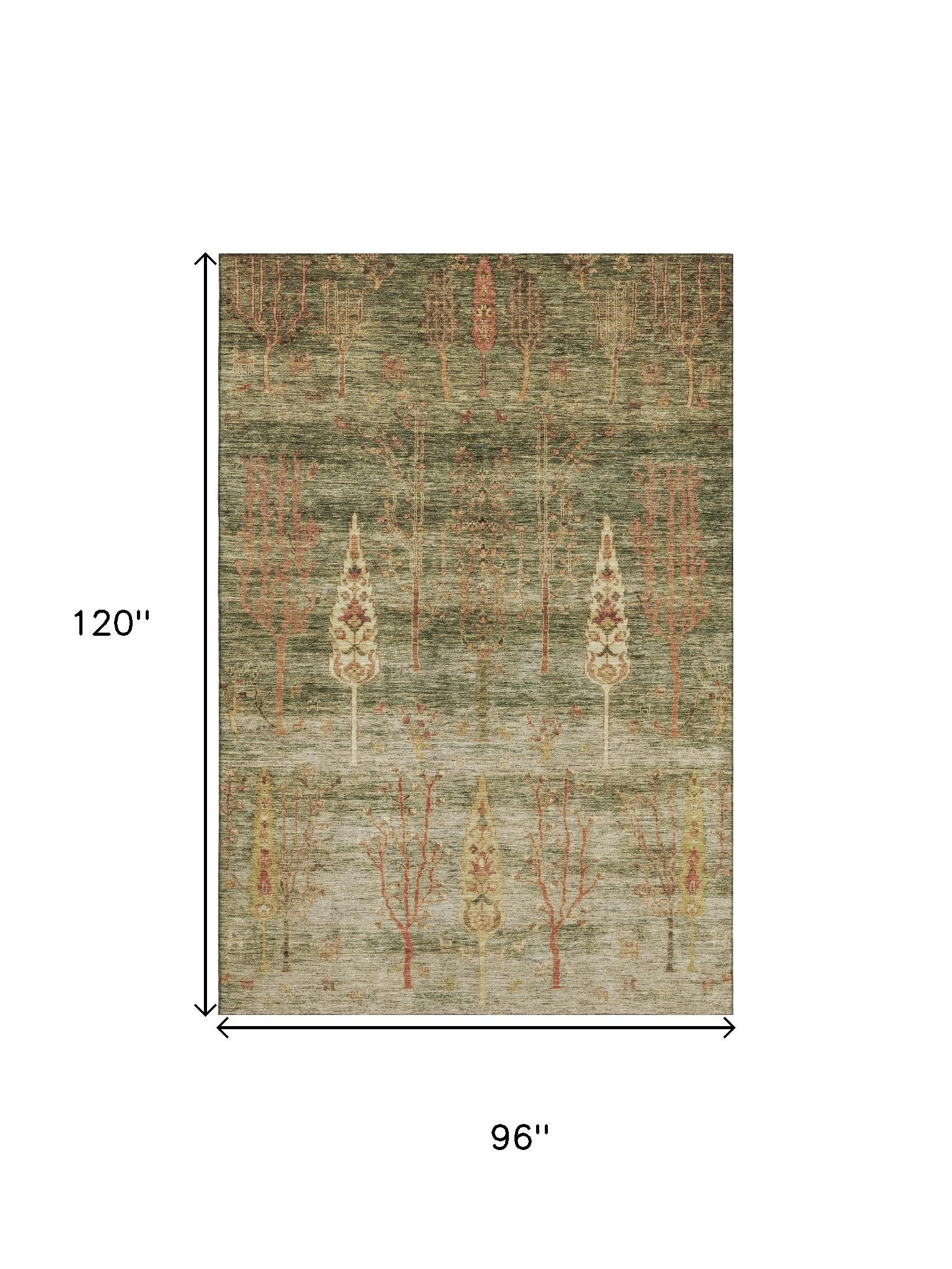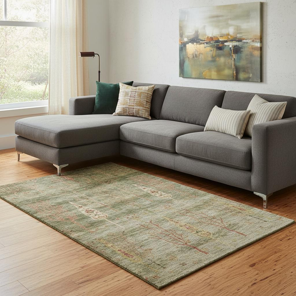This 8-foot x 10-foot artichoke green and rust floral washable area rug with uv protection, is a great way to add warmth to a room. Ideal for spaces with kids and pets, this rug is stain resistant to help repel dirt and spilled liquids. Built to last, this rug crafted from polyester fibers is known for its durability and long lasting appeal. Rugs are a great way to showcase your style, hide imperfections, warm your home and reduce noise. This larger sized, transitional styled rug is ready to create a focal point or statement piece in your room. 96.00-inch h x 120.00-inch w x 0.39-inch d.
