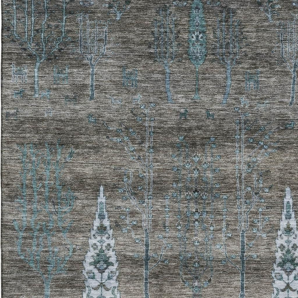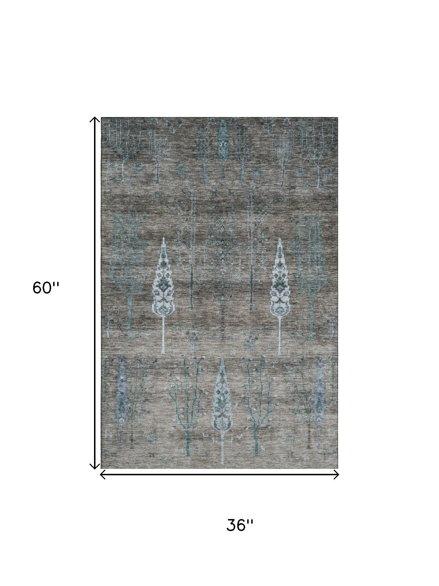 Set an inviting tone in your space with this 3-foot x 5-foot brown and blue floral washable area rug with uv protection. Ideal for spaces with kids and pets, this rug is stain resistant to help repel dirt and spilled liquids. Built to last, this rug crafted from polyester fibers is known for its durability and long lasting appeal. Rugs are a great way to showcase your style, hide imperfections, warm your home and reduce noise. This smaller sized, transitional styled rug is just what you need for your walkway, bedside, in front of door, cabinet, refrigerator, or chair. 36.00-inch h x 60.00-inch w x 0.39-inch d.