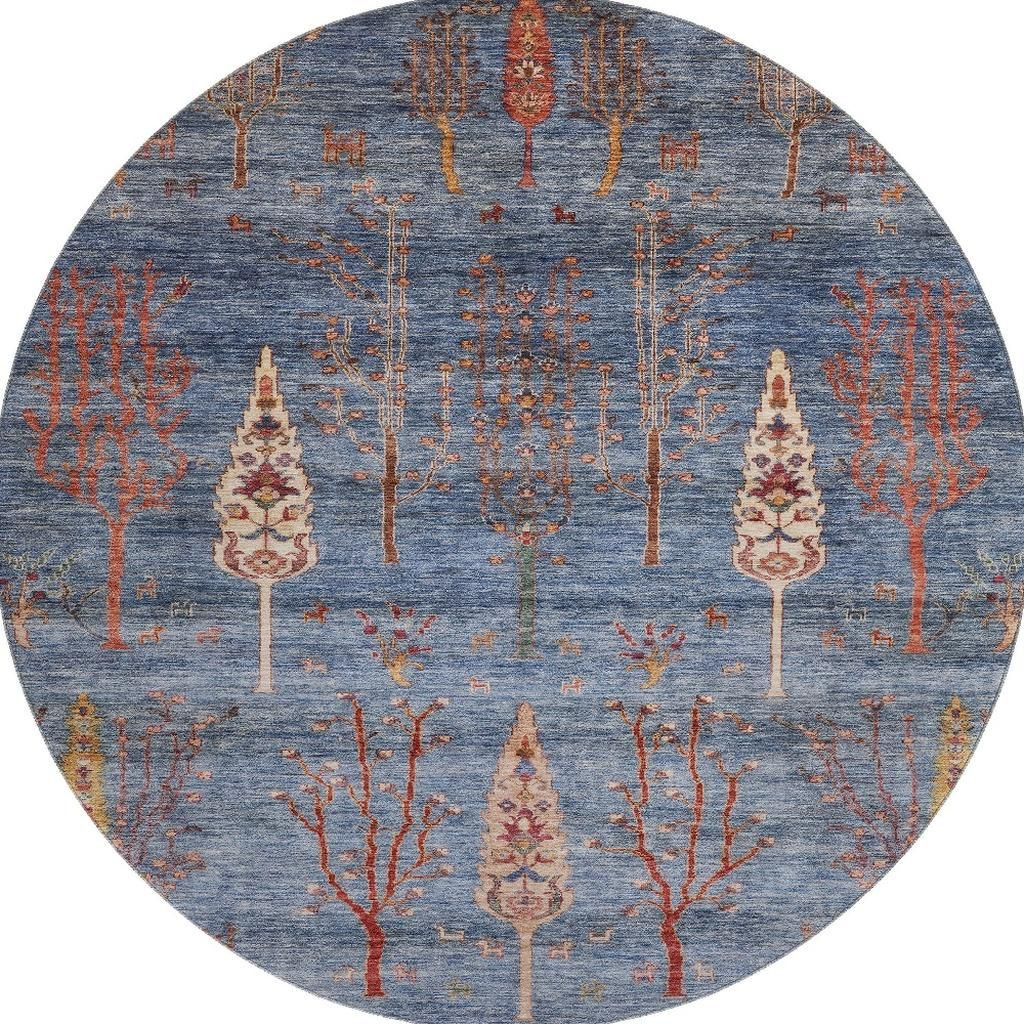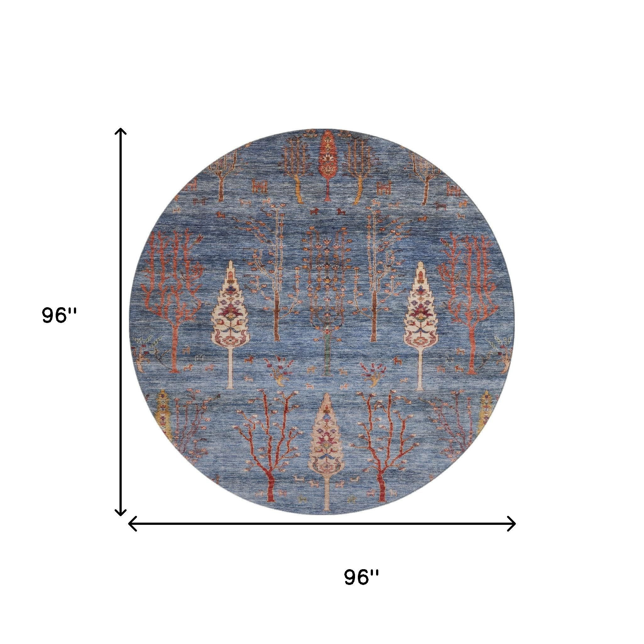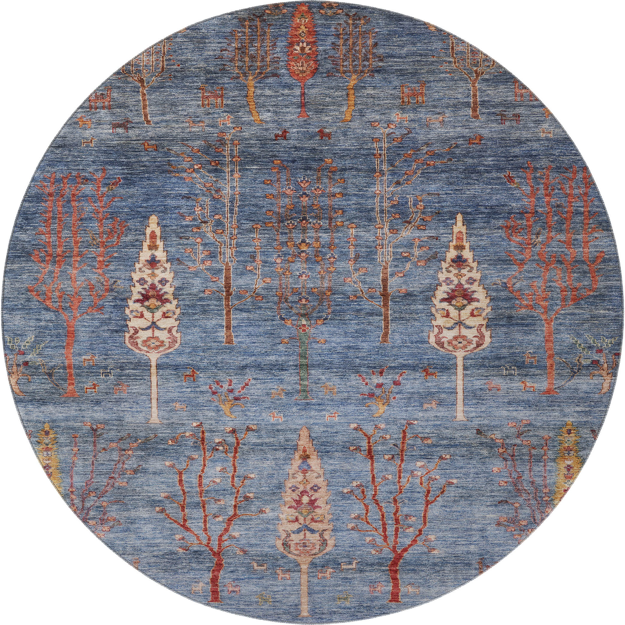 Set an inviting tone in your space with this 8-foot blue and rust floral washable round rug with uv protection. Ideal for spaces with kids and pets, this rug is stain resistant to help repel dirt and spilled liquids. Built to last, this rug crafted from polyester fibers is known for its durability and long lasting appeal. Rugs are a great way to showcase your style, hide imperfections, warm your home and reduce noise. This larger sized, transitional styled rug is ready to create a focal point or statement piece in your room. 96.00-inch h x 96.00-inch w x 0.39-inch d.