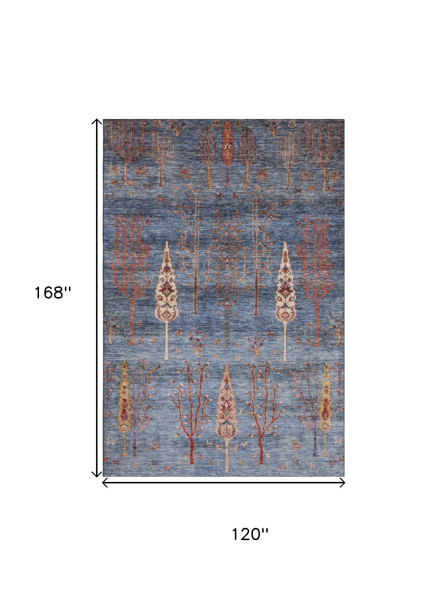 Set an inviting tone in your space with this 10-foot x 14-foot blue and rust floral washable area rug with uv protection. Ideal for spaces with kids and pets, this rug is stain resistant to help repel dirt and spilled liquids. Built to last, this rug crafted from polyester fibers is known for its durability and long lasting appeal. Rugs are a great way to showcase your style, hide imperfections, warm your home and reduce noise. This larger sized, transitional styled rug is ready to create a focal point or statement piece in your room. 120.00-inch h x 168.00-inch w x 0.39-inch d.