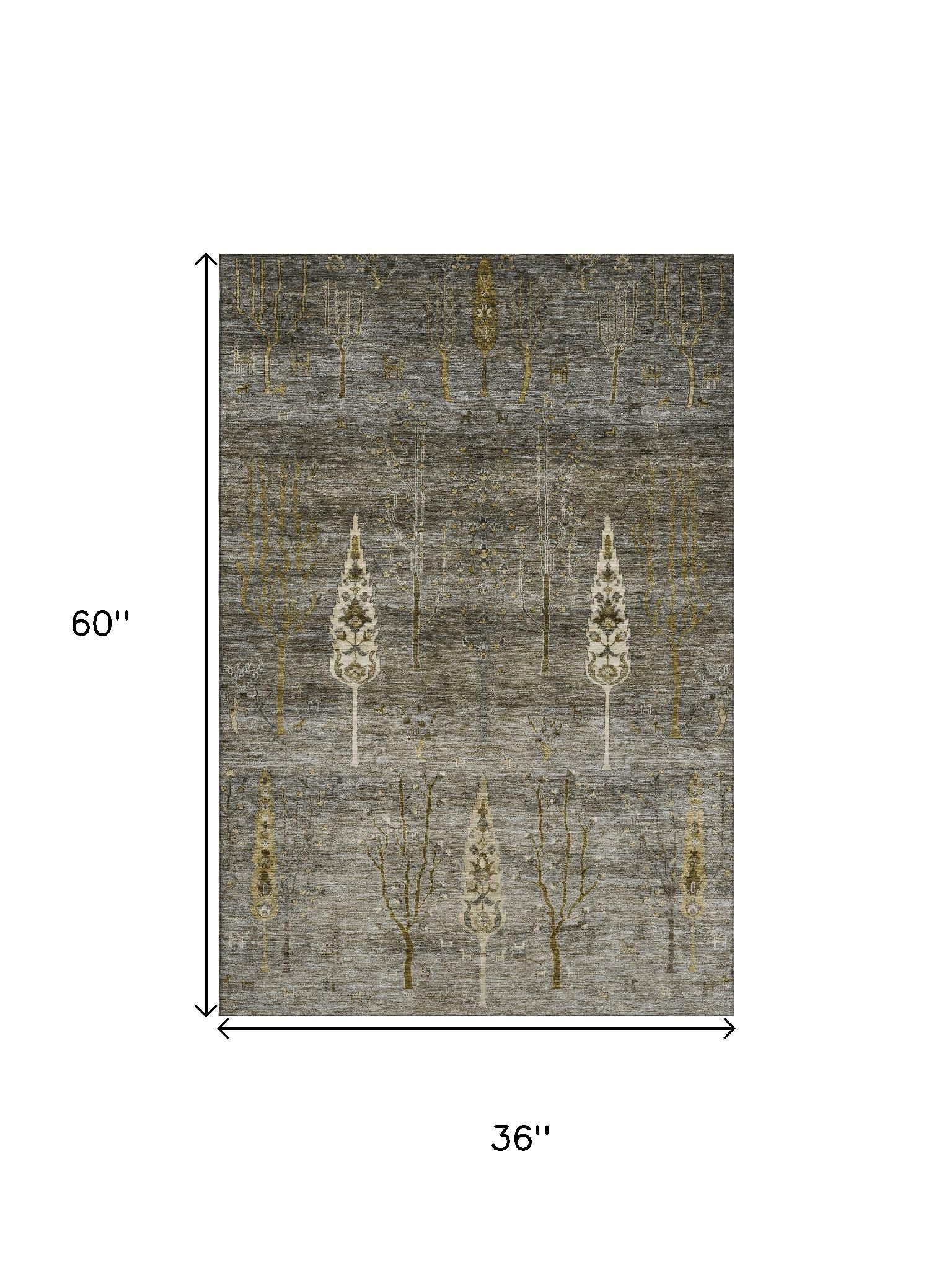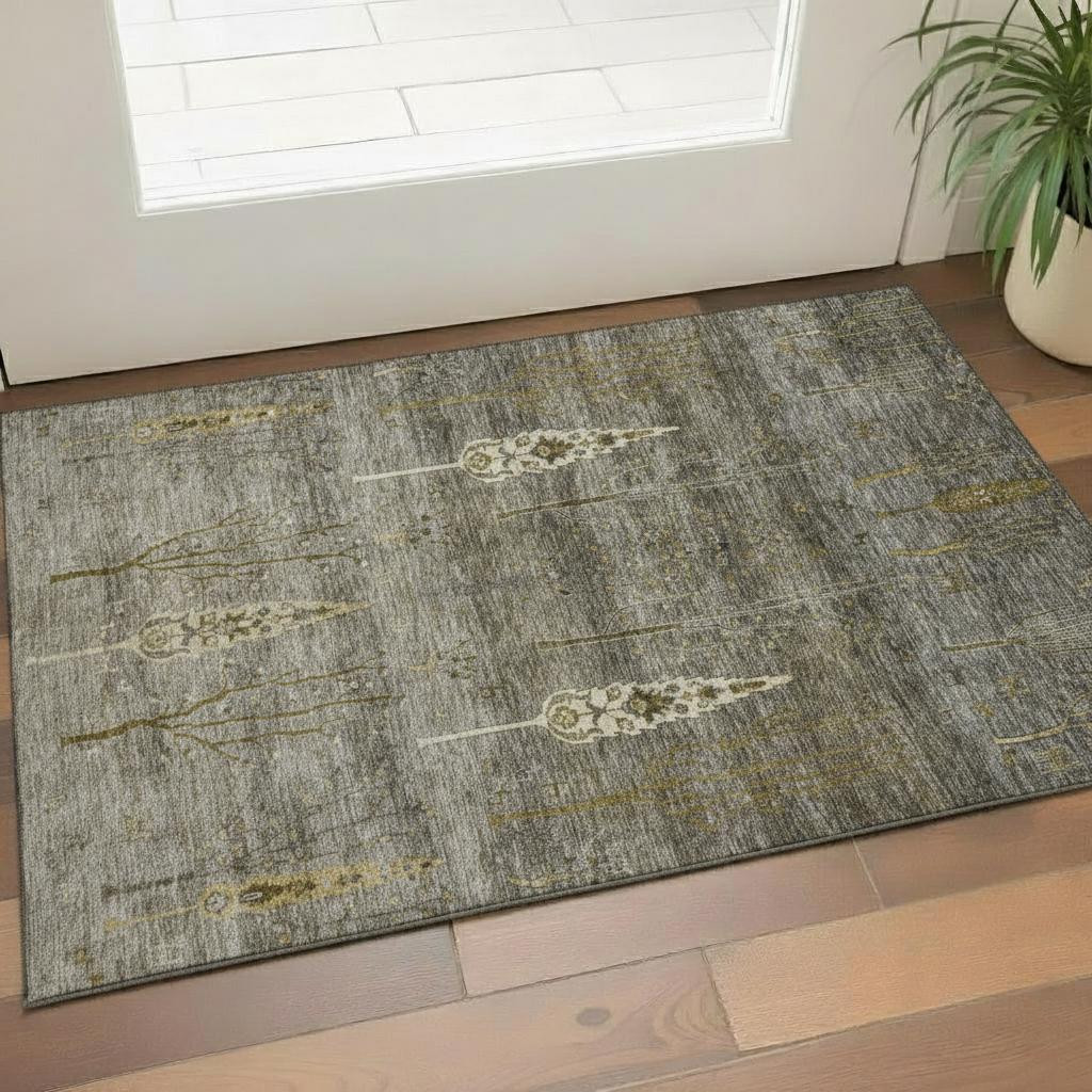 Add great coloration and comfortable texture to your space with this 3-foot x 5-foot pewter and gold floral washable area rug with uv protection. Ideal for spaces with kids and pets, this rug is stain resistant to help repel dirt and spilled liquids. Built to last, this rug crafted from polyester fibers is known for its durability and long lasting appeal. Rugs are a great way to showcase your style, hide imperfections, warm your home and reduce noise. This smaller sized, transitional styled rug is just what you need for your walkway, bedside, in front of door, cabinet, refrigerator, or chair. 36.00-inch h x 60.00-inch w x 0.39-inch d.