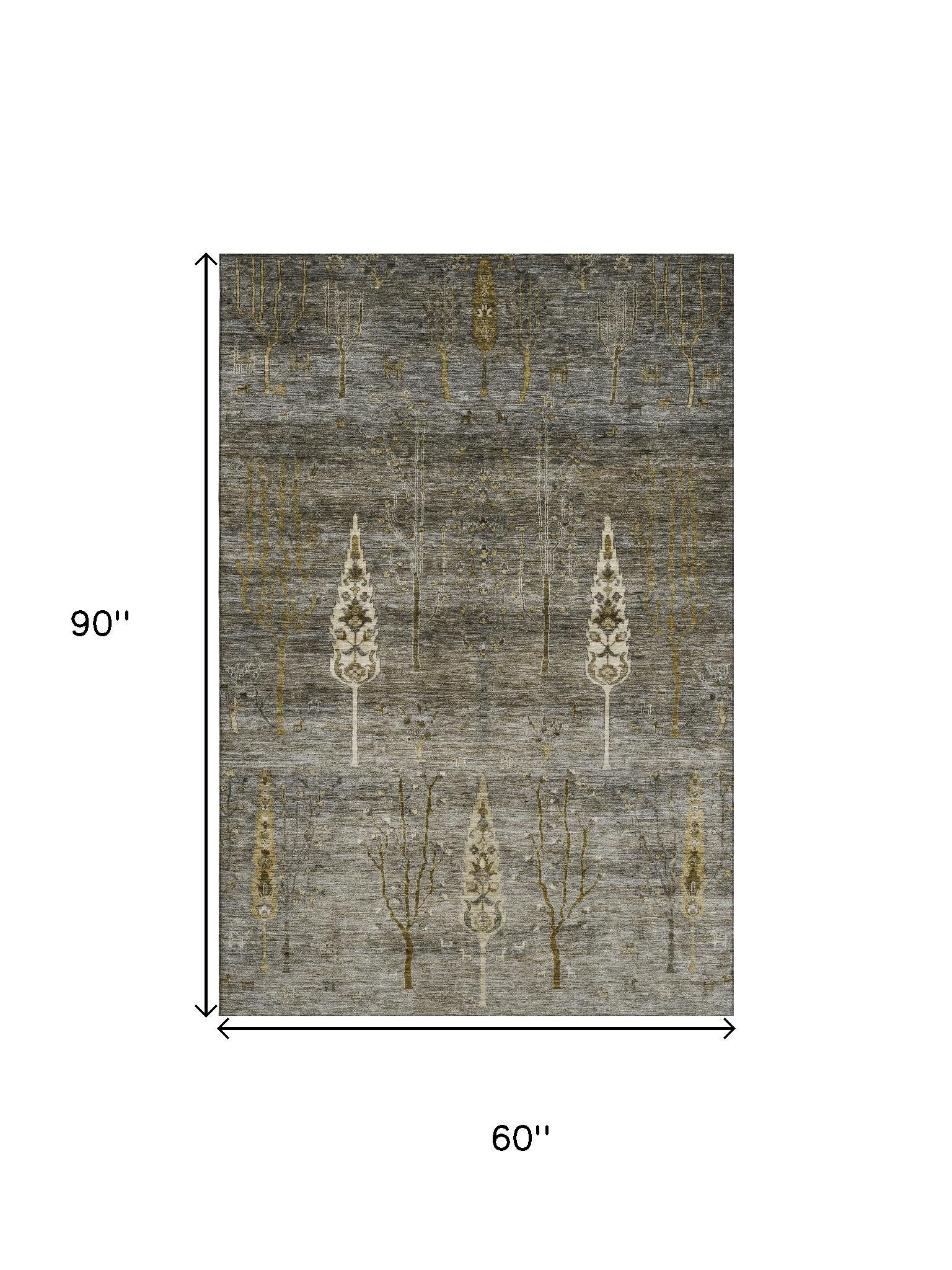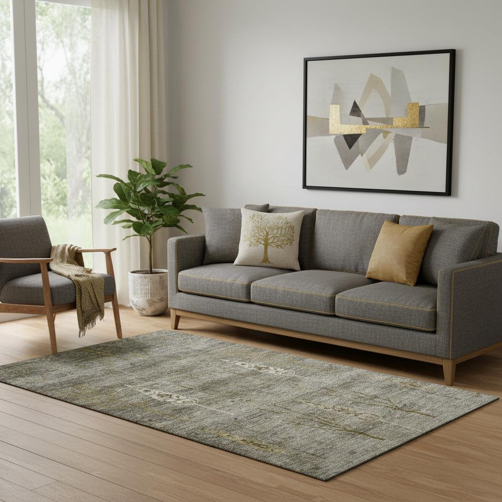 This 5-foot x 8-foot pewter and gold floral washable area rug with uv protection, is a great way to add warmth to a room. Ideal for spaces with kids and pets, this rug is stain resistant to help repel dirt and spilled liquids. Built to last, this rug crafted from polyester fibers is known for its durability and long lasting appeal. Rugs are a great way to showcase your style, hide imperfections, warm your home and reduce noise. This larger sized, transitional styled rug is ready to create a focal point or statement piece in your room. 60.00-inch h x 90.00-inch w x 0.39-inch d.