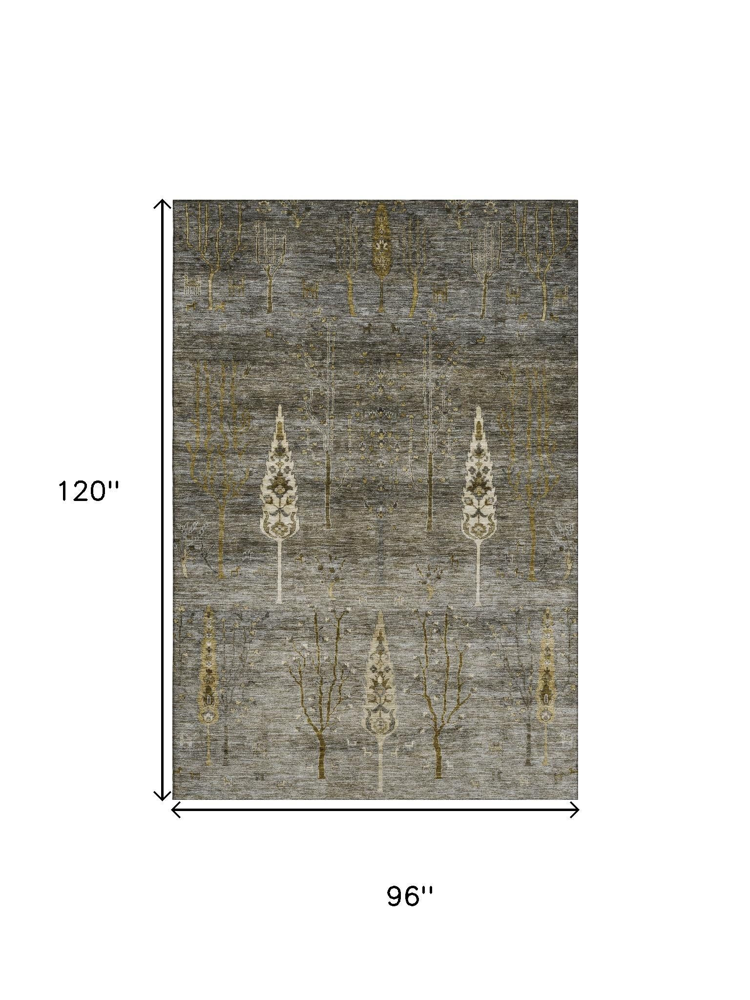 Add great coloration and comfortable texture to your space with this 8-foot x 10-foot pewter and gold floral washable area rug with uv protection. Ideal for spaces with kids and pets, this rug is stain resistant to help repel dirt and spilled liquids. Built to last, this rug crafted from polyester fibers is known for its durability and long lasting appeal. Rugs are a great way to showcase your style, hide imperfections, warm your home and reduce noise. This larger sized, transitional styled rug is ready to create a focal point or statement piece in your room. 96.00-inch h x 120.00-inch w x 0.39-inch d.