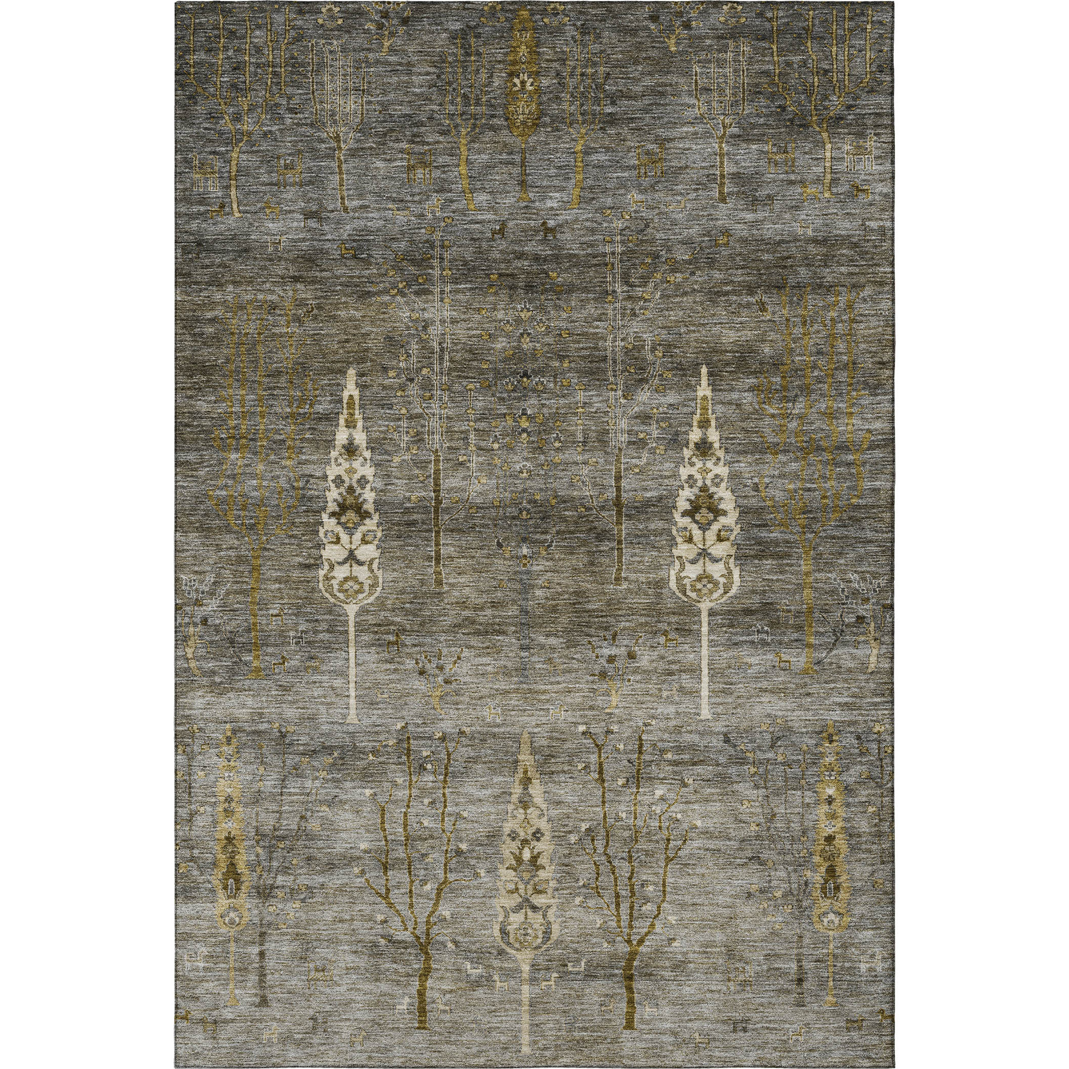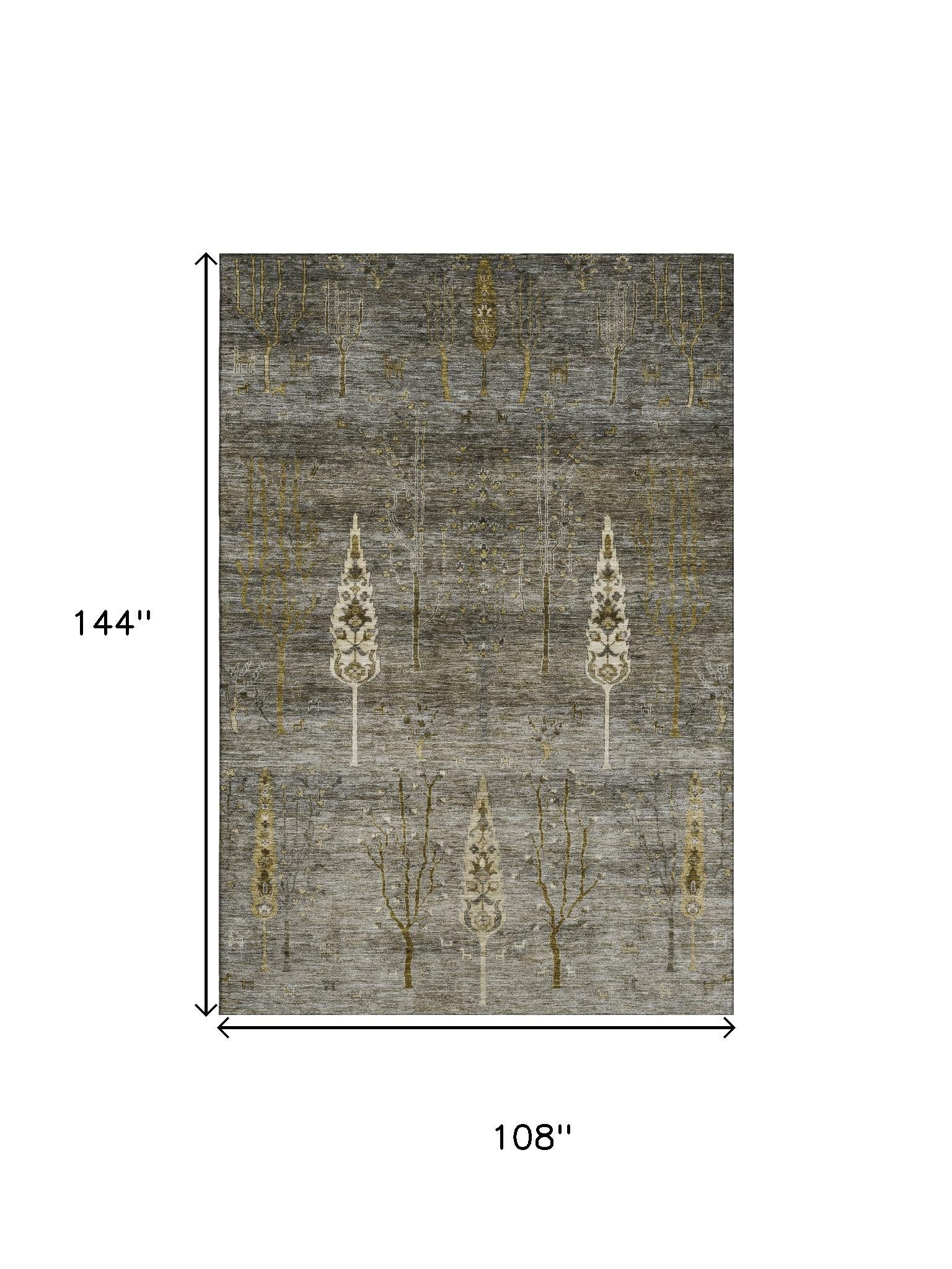 Add great coloration and comfortable texture to your space with this 9-foot x 12-foot pewter and gold floral washable area rug with uv protection. Ideal for spaces with kids and pets, this rug is stain resistant to help repel dirt and spilled liquids. Built to last, this rug crafted from polyester fibers is known for its durability and long lasting appeal. Rugs are a great way to showcase your style, hide imperfections, warm your home and reduce noise. This larger sized, transitional styled rug is ready to create a focal point or statement piece in your room. 108.00-inch h x 144.00-inch w x 0.39-inch d.