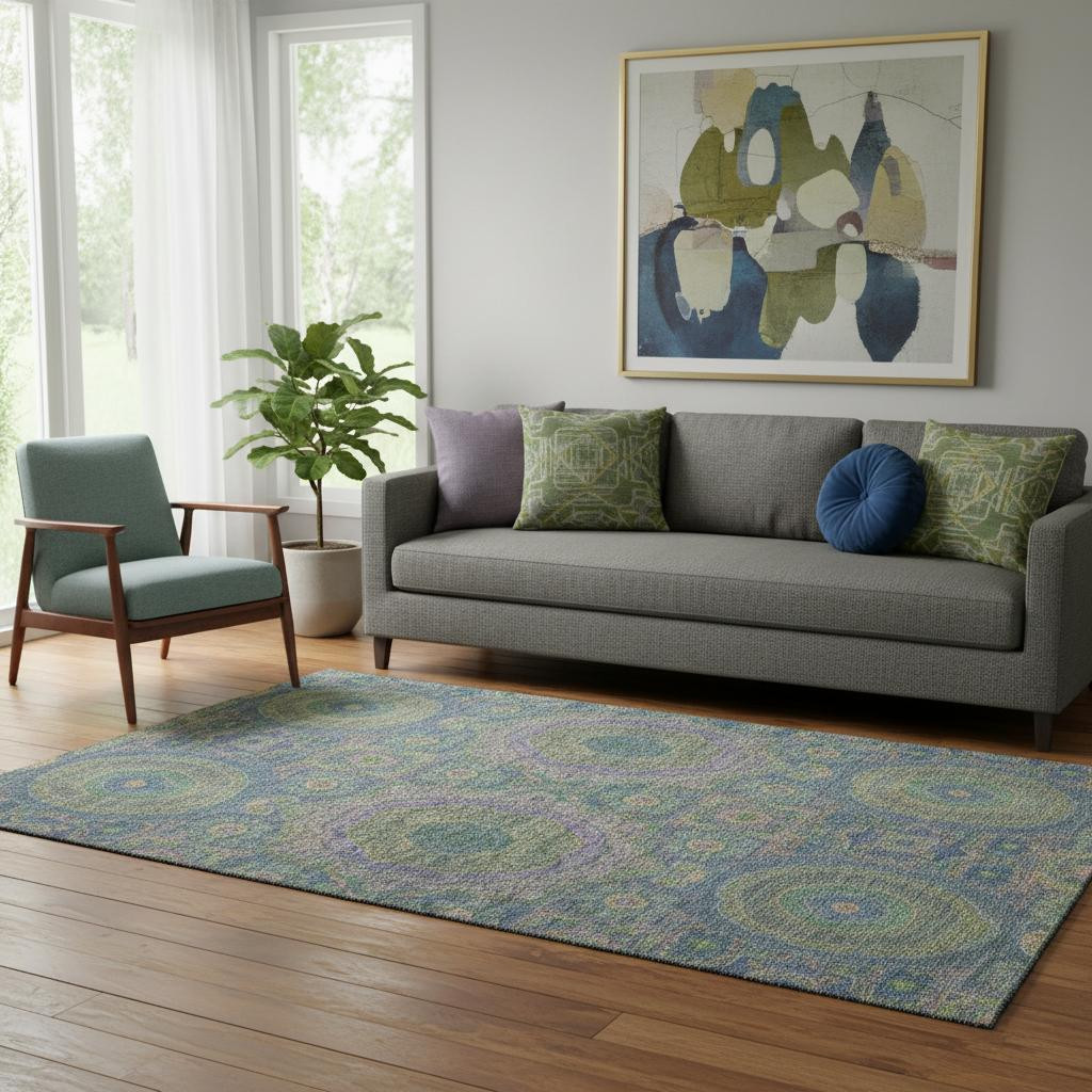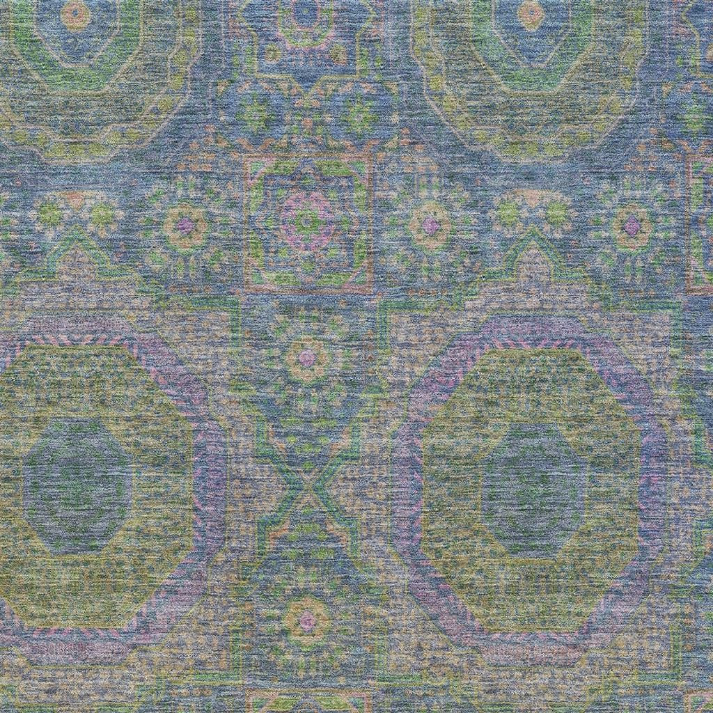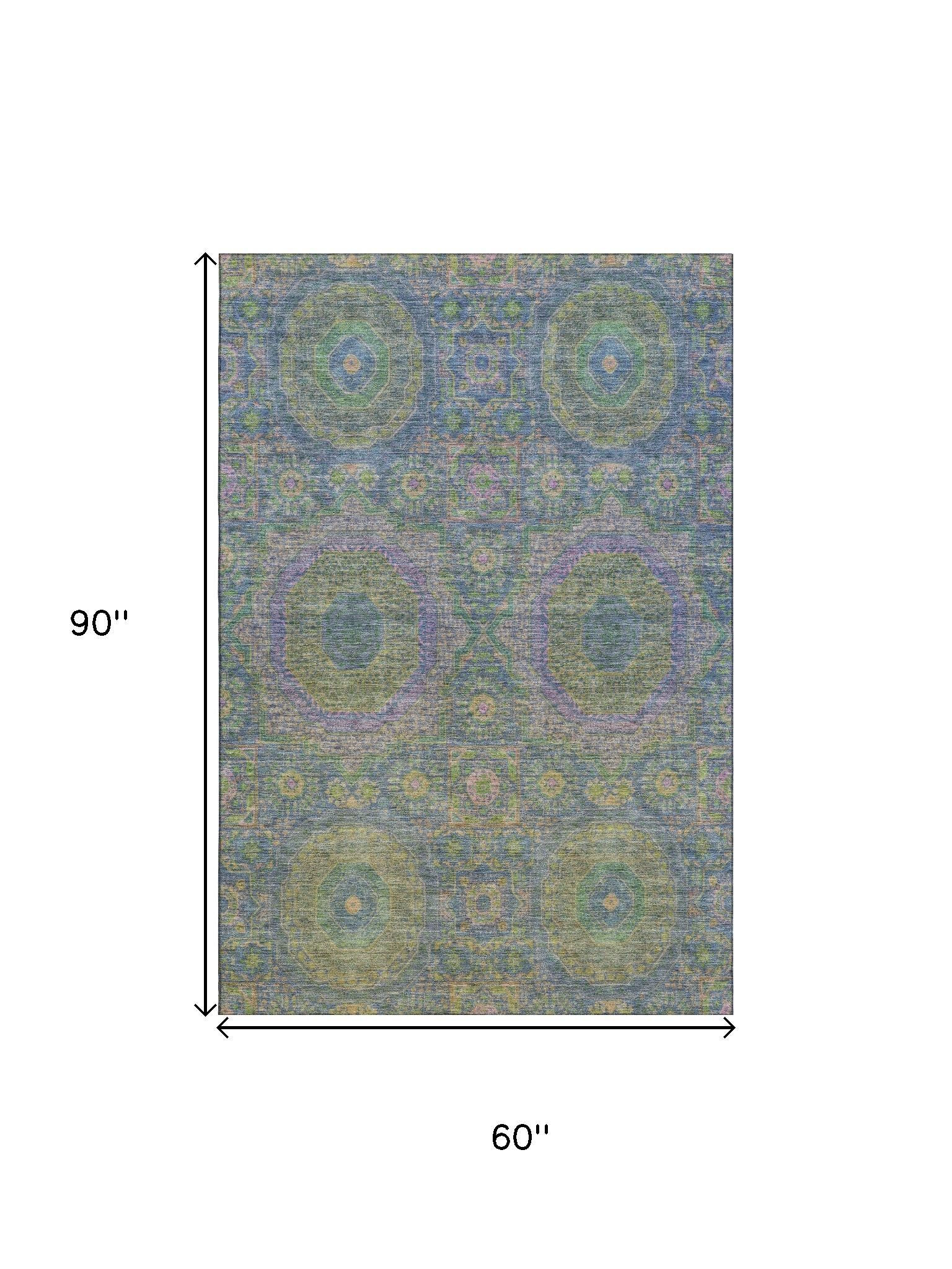 Set an inviting tone in your space with this 5-foot x 8-foot blue purple and green medallion washable area rug with uv protection. Ideal for spaces with kids and pets, this rug is stain resistant to help repel dirt and spilled liquids. Built to last, this rug crafted from polyester fibers is known for its durability and long lasting appeal. Rugs are a great way to showcase your style, hide imperfections, warm your home and reduce noise. This larger sized, transitional styled rug is ready to create a focal point or statement piece in your room. 60.00-inch h x 90.00-inch w x 0.39-inch d.