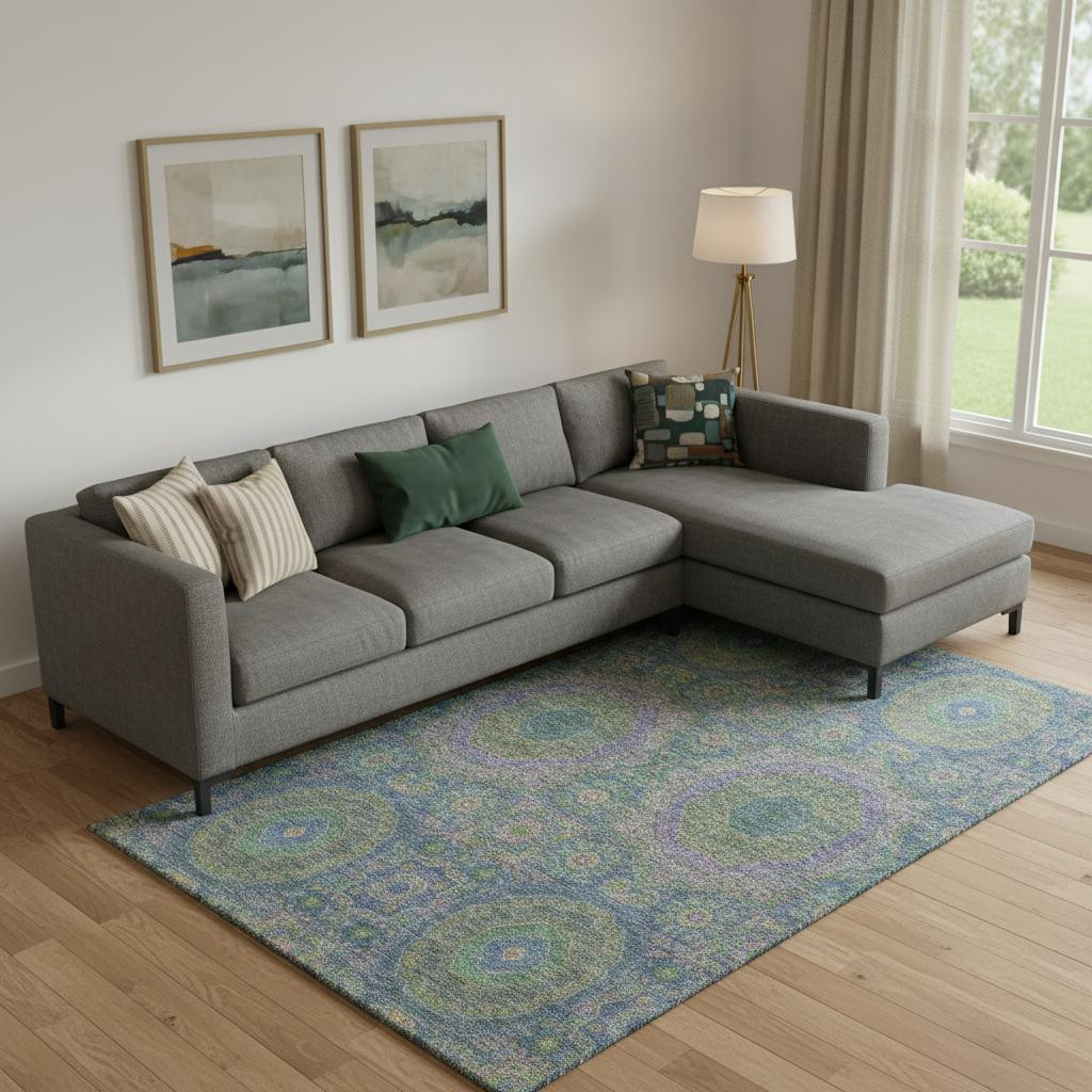 This 10-foot x 14-foot blue purple and green medallion washable area rug with uv protection, is a great way to add warmth to a room. Ideal for spaces with kids and pets, this rug is stain resistant to help repel dirt and spilled liquids. Built to last, this rug crafted from polyester fibers is known for its durability and long lasting appeal. Rugs are a great way to showcase your style, hide imperfections, warm your home and reduce noise. This larger sized, transitional styled rug is ready to create a focal point or statement piece in your room. 120.00-inch h x 168.00-inch w x 0.39-inch d.