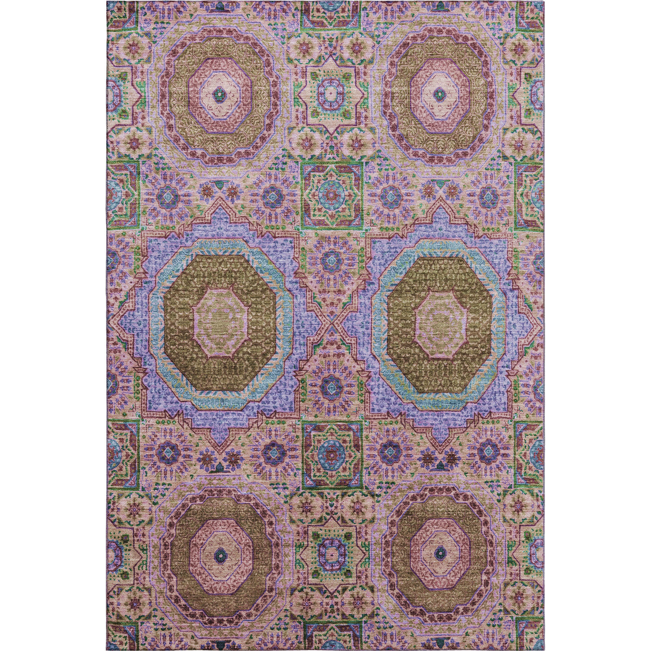 Add great coloration and comfortable texture to your space with this 5-foot x 8-foot pink teal and taupe medallion washable area rug with uv protection. Ideal for spaces with kids and pets, this rug is stain resistant to help repel dirt and spilled liquids. Built to last, this rug crafted from polyester fibers is known for its durability and long lasting appeal. Rugs are a great way to showcase your style, hide imperfections, warm your home and reduce noise. This larger sized, transitional styled rug is ready to create a focal point or statement piece in your room. 60.00-inch h x 90.00-inch w x 0.39-inch d.