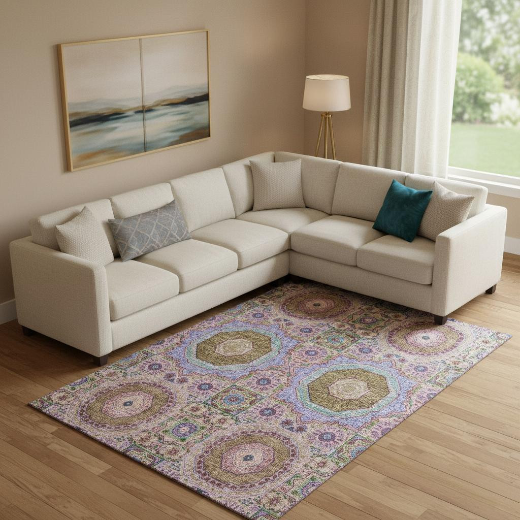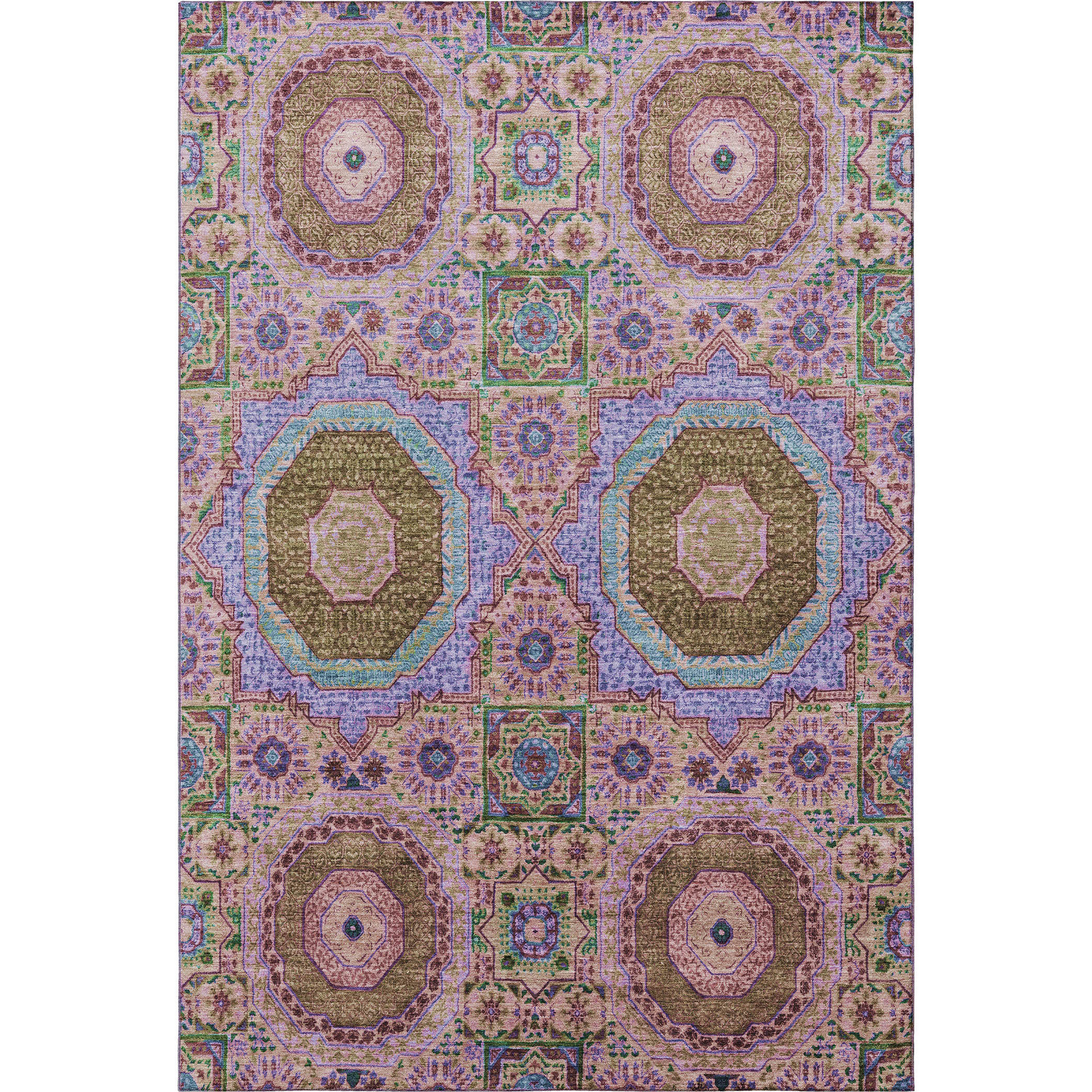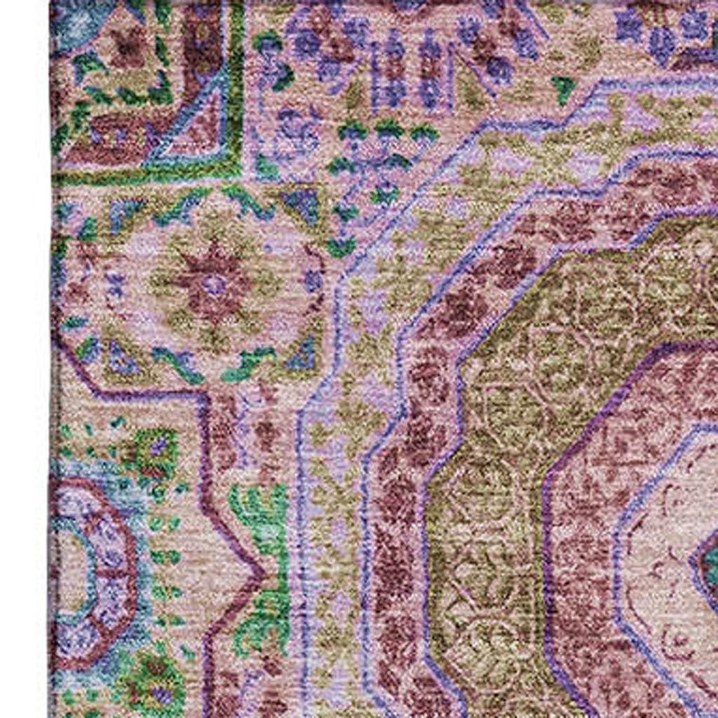 This 10-foot x 14-foot pink teal and taupe medallion washable area rug with uv protection, is a great way to add warmth to a room. Ideal for spaces with kids and pets, this rug is stain resistant to help repel dirt and spilled liquids. Built to last, this rug crafted from polyester fibers is known for its durability and long lasting appeal. Rugs are a great way to showcase your style, hide imperfections, warm your home and reduce noise. This larger sized, transitional styled rug is ready to create a focal point or statement piece in your room. 120.00-inch h x 168.00-inch w x 0.39-inch d.