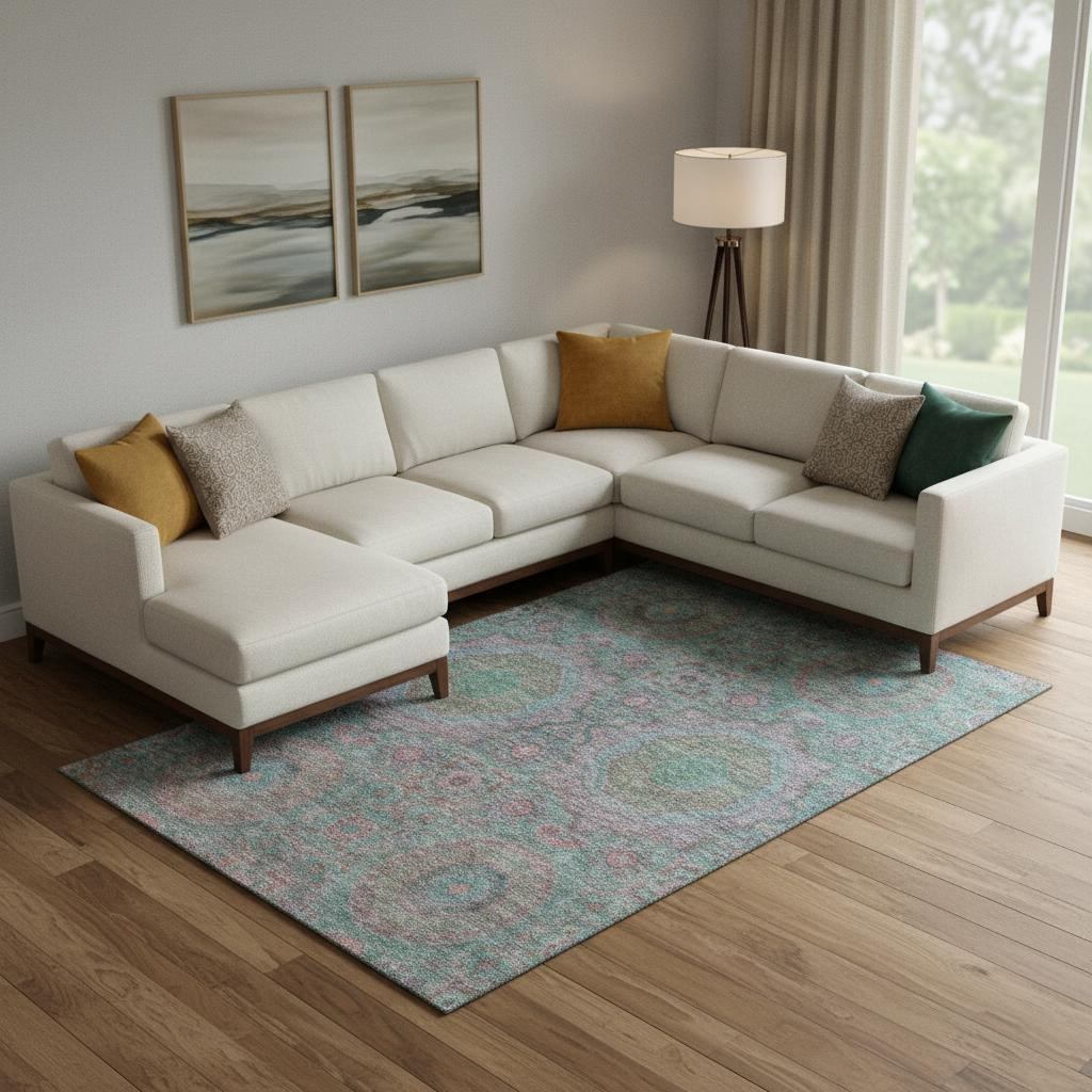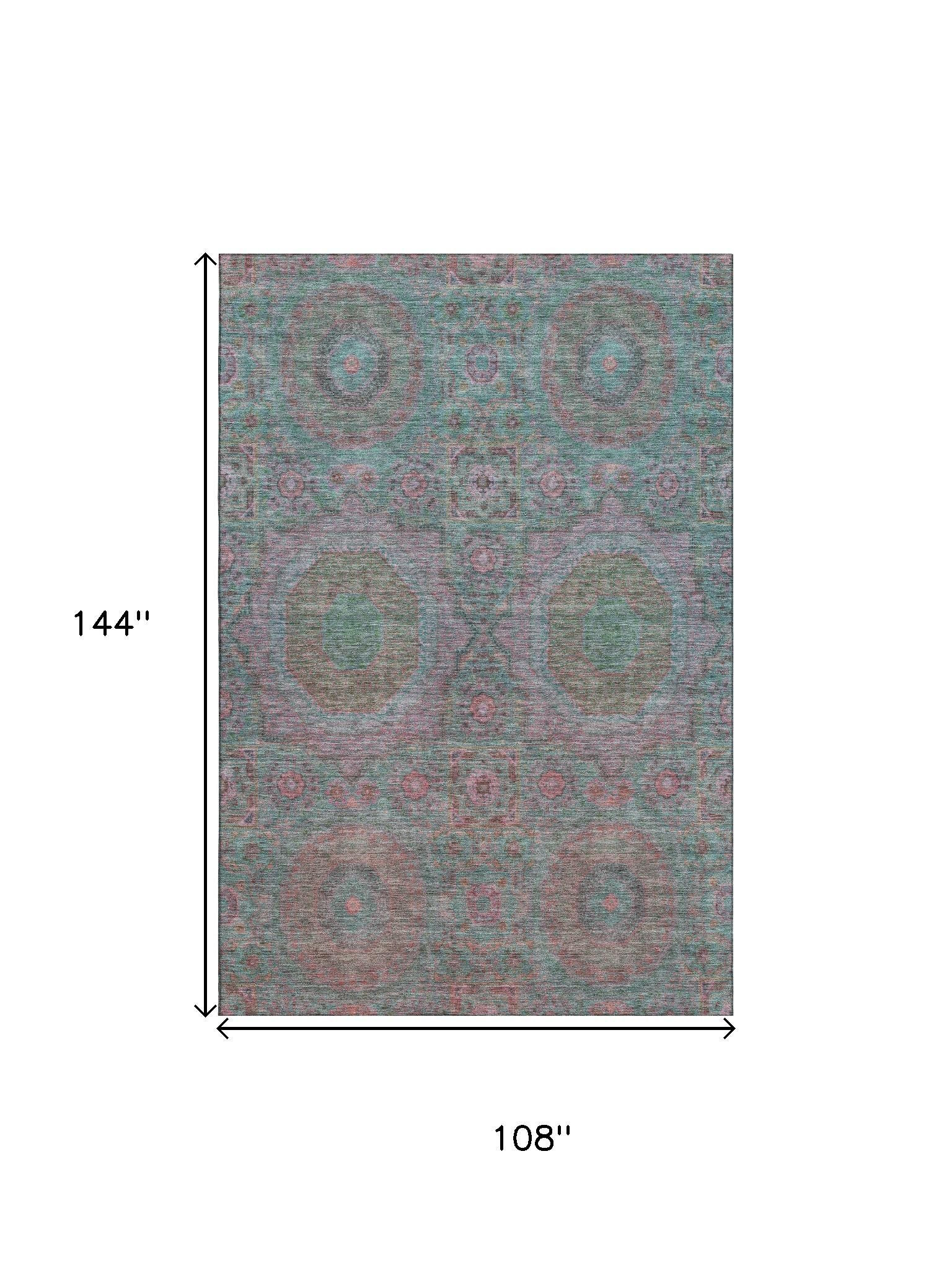 Add great coloration and comfortable texture to your space with this 9-foot x 12-foot teal and blush medallion washable area rug with uv protection. Ideal for spaces with kids and pets, this rug is stain resistant to help repel dirt and spilled liquids. Built to last, this rug crafted from polyester fibers is known for its durability and long lasting appeal. Rugs are a great way to showcase your style, hide imperfections, warm your home and reduce noise. This larger sized, transitional styled rug is ready to create a focal point or statement piece in your room. 108.00-inch h x 144.00-inch w x 0.39-inch d.