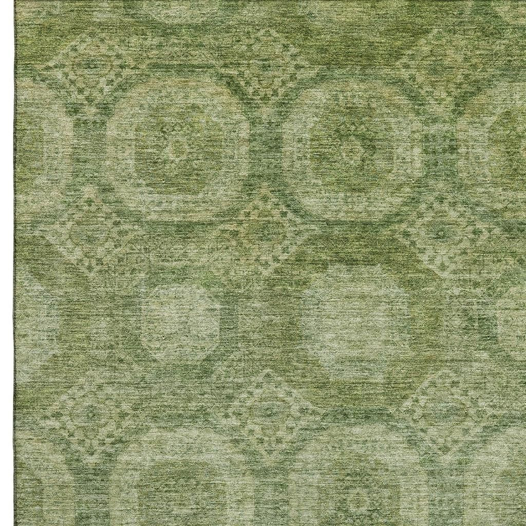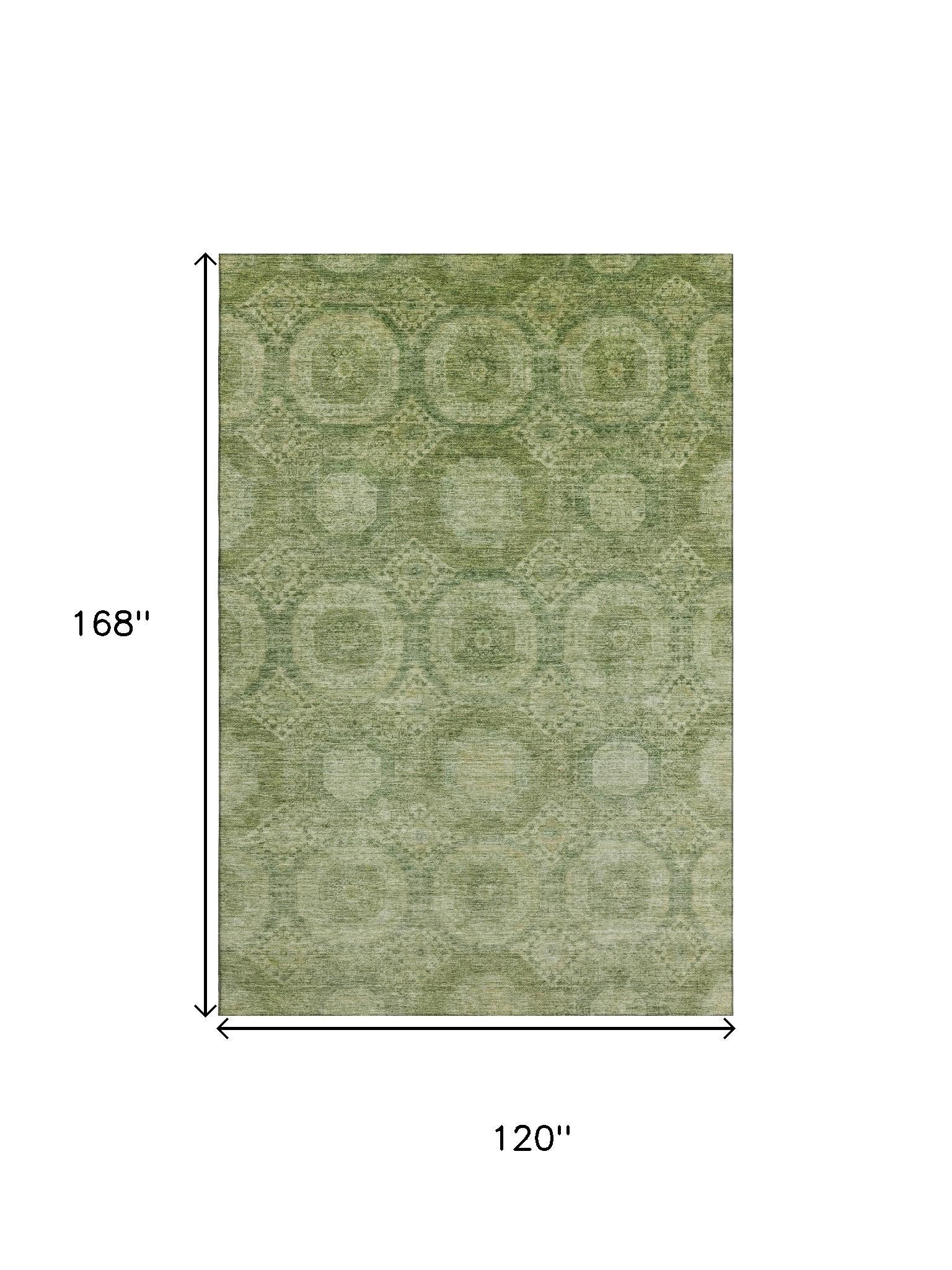 Add great coloration and comfortable texture to your space with this 10-foot x 14-foot artichoke green and sage abstract geometric washable area rug with uv protection. Ideal for spaces with kids and pets, this rug is stain resistant to help repel dirt and spilled liquids. Built to last, this rug crafted from polyester fibers is known for its durability and long lasting appeal. Rugs are a great way to showcase your style, hide imperfections, warm your home and reduce noise. This larger sized, transitional styled rug is ready to create a focal point or statement piece in your room. 120.00-inch h x 168.00-inch w x 0.39-inch d.