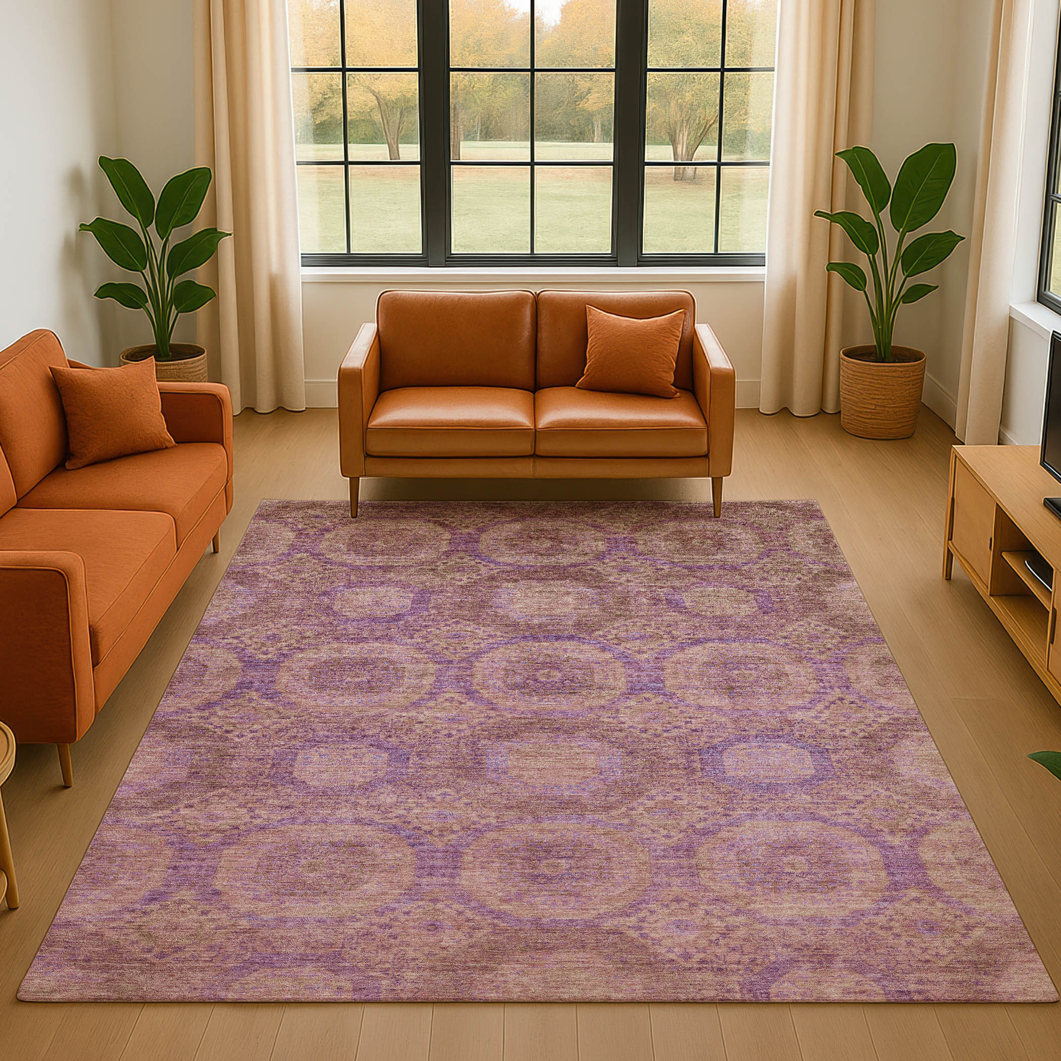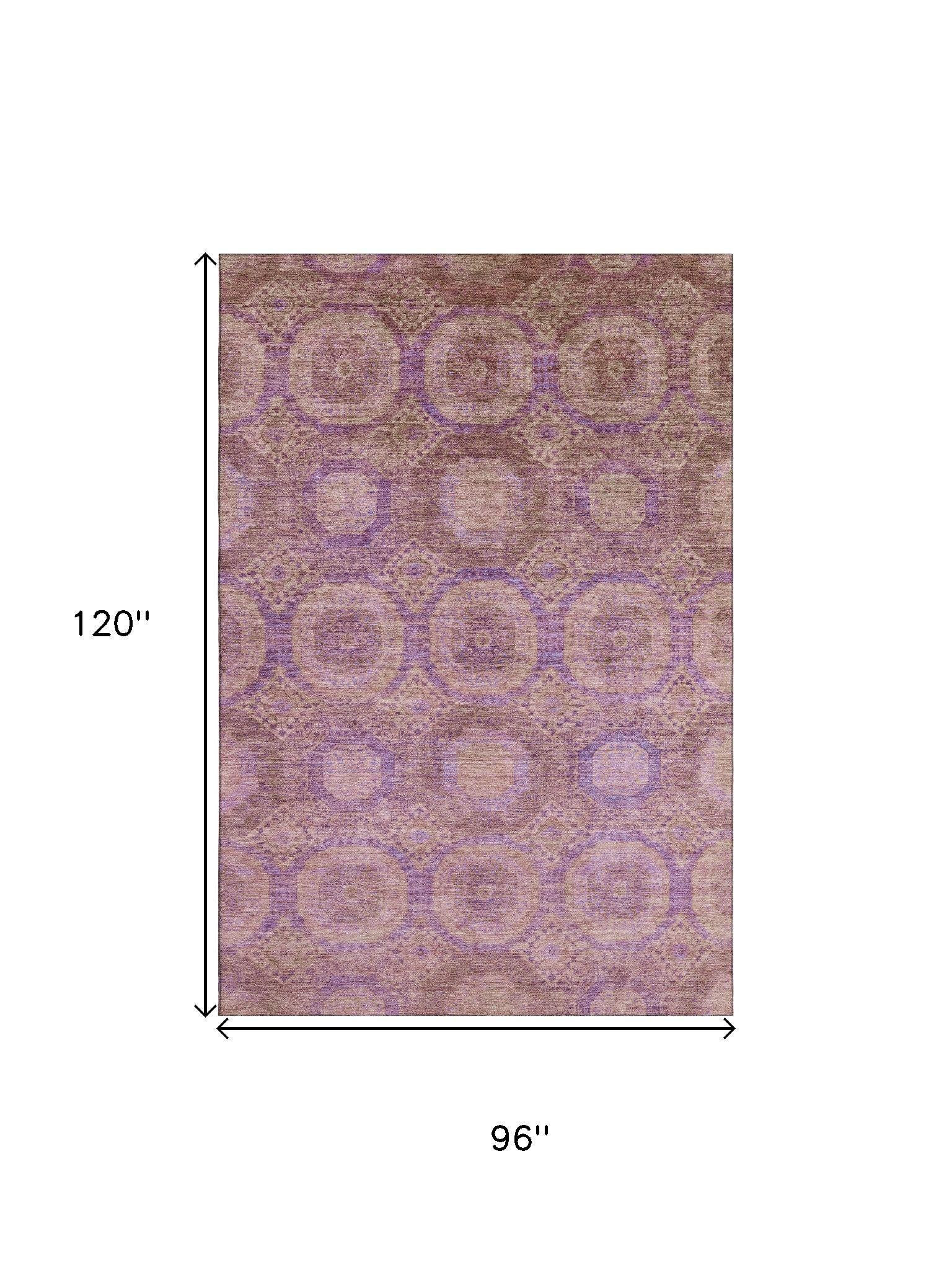Add some artistry to your room with this 8-foot x 10-foot blush and purple abstract geometric washable area rug with uv protection. Ideal for spaces with kids and pets, this rug is stain resistant to help repel dirt and spilled liquids. Built to last, this rug crafted from polyester fibers is known for its durability and long lasting appeal. Rugs are a great way to showcase your style, hide imperfections, warm your home and reduce noise. This larger sized, transitional styled rug is ready to create a focal point or statement piece in your room. 96.00-inch h x 120.00-inch w x 0.39-inch d.