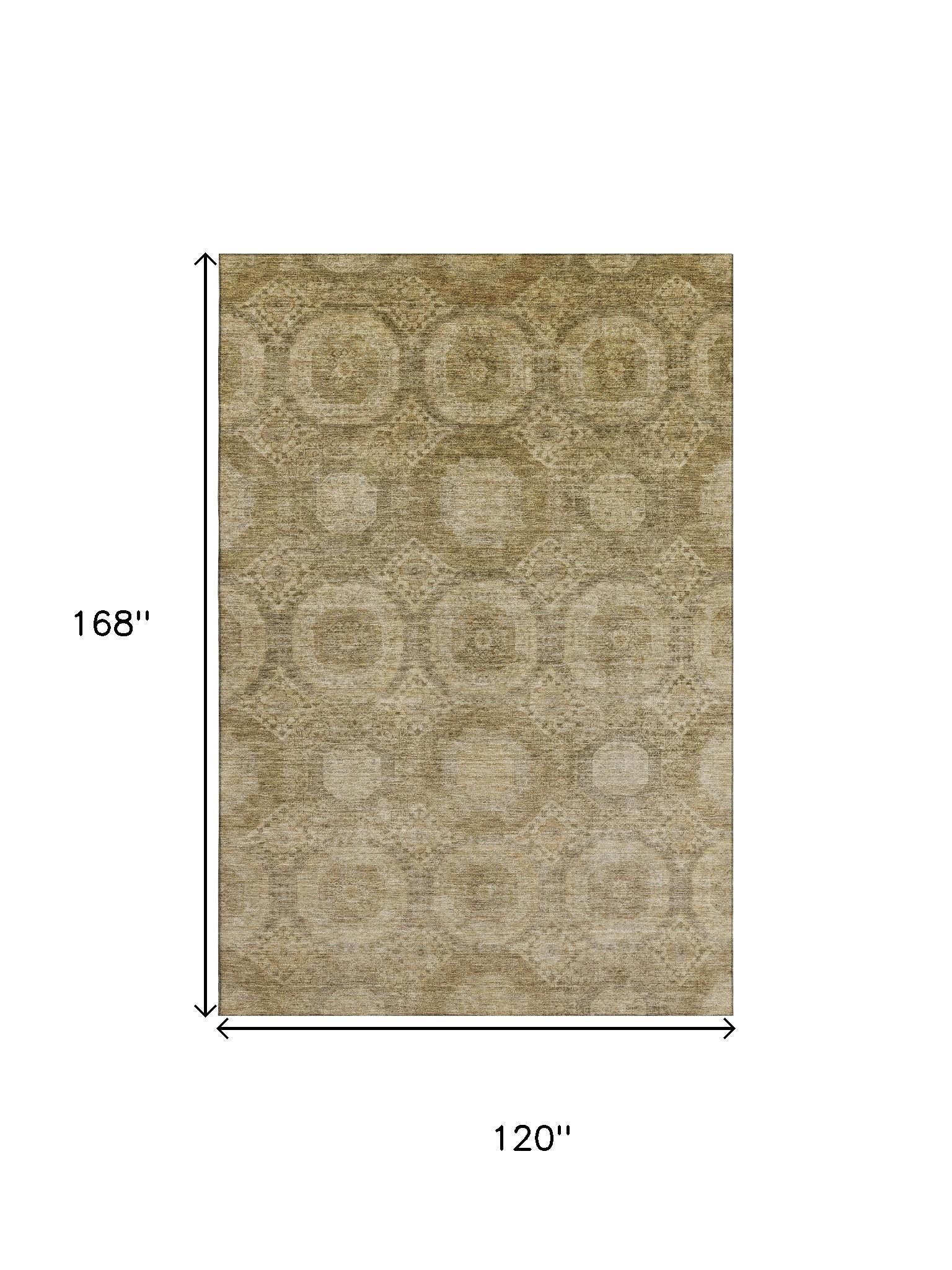 Add some artistry to your room with this 10-foot x 14-foot brown and beige abstract geometric washable area rug with uv protection. Ideal for spaces with kids and pets, this rug is stain resistant to help repel dirt and spilled liquids. Built to last, this rug crafted from polyester fibers is known for its durability and long lasting appeal. Rugs are a great way to showcase your style, hide imperfections, warm your home and reduce noise. This larger sized, transitional styled rug is ready to create a focal point or statement piece in your room. 120.00-inch h x 168.00-inch w x 0.39-inch d.