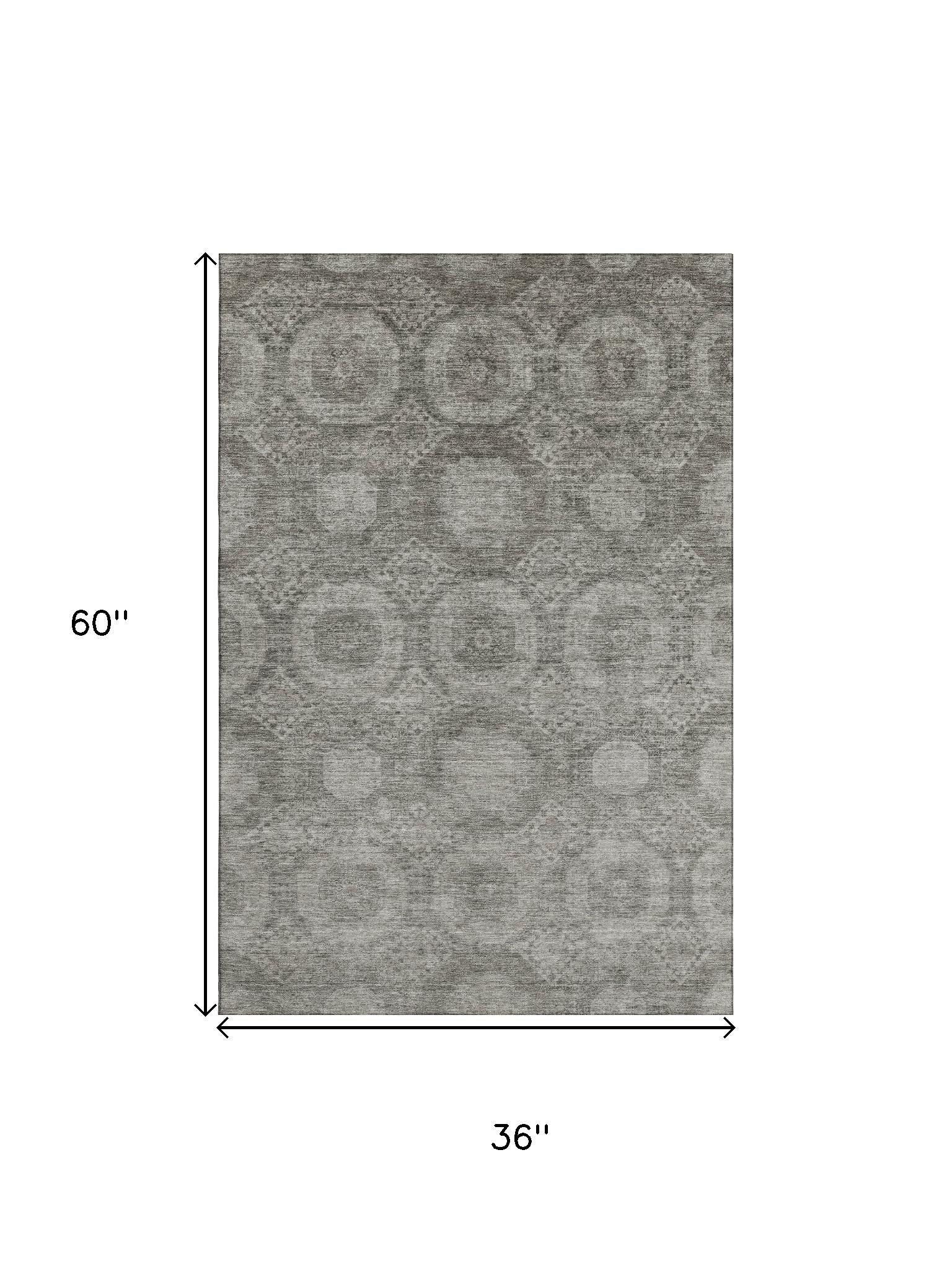 Add great coloration and comfortable texture to your space with this 3-foot x 5-foot pewter and gray abstract geometric washable area rug with uv protection. Ideal for spaces with kids and pets, this rug is stain resistant to help repel dirt and spilled liquids. Built to last, this rug crafted from polyester fibers is known for its durability and long lasting appeal. Rugs are a great way to showcase your style, hide imperfections, warm your home and reduce noise. This smaller sized, transitional styled rug is just what you need for your walkway, bedside, in front of door, cabinet, refrigerator, or chair. 36.00-inch h x 60.00-inch w x 0.39-inch d.