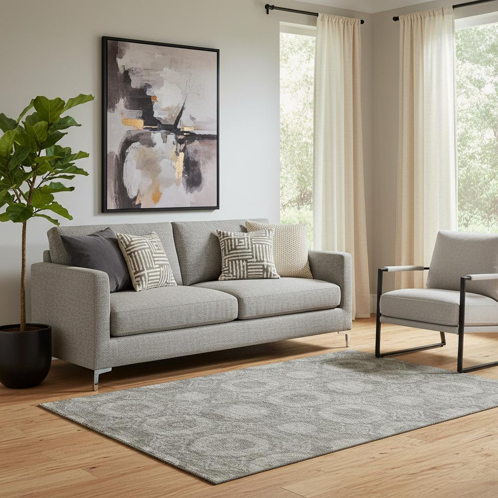 Add some artistry to your room with this 5-foot x 8-foot pewter and gray abstract geometric washable area rug with uv protection. Ideal for spaces with kids and pets, this rug is stain resistant to help repel dirt and spilled liquids. Built to last, this rug crafted from polyester fibers is known for its durability and long lasting appeal. Rugs are a great way to showcase your style, hide imperfections, warm your home and reduce noise. This larger sized, transitional styled rug is ready to create a focal point or statement piece in your room. 60.00-inch h x 90.00-inch w x 0.39-inch d.