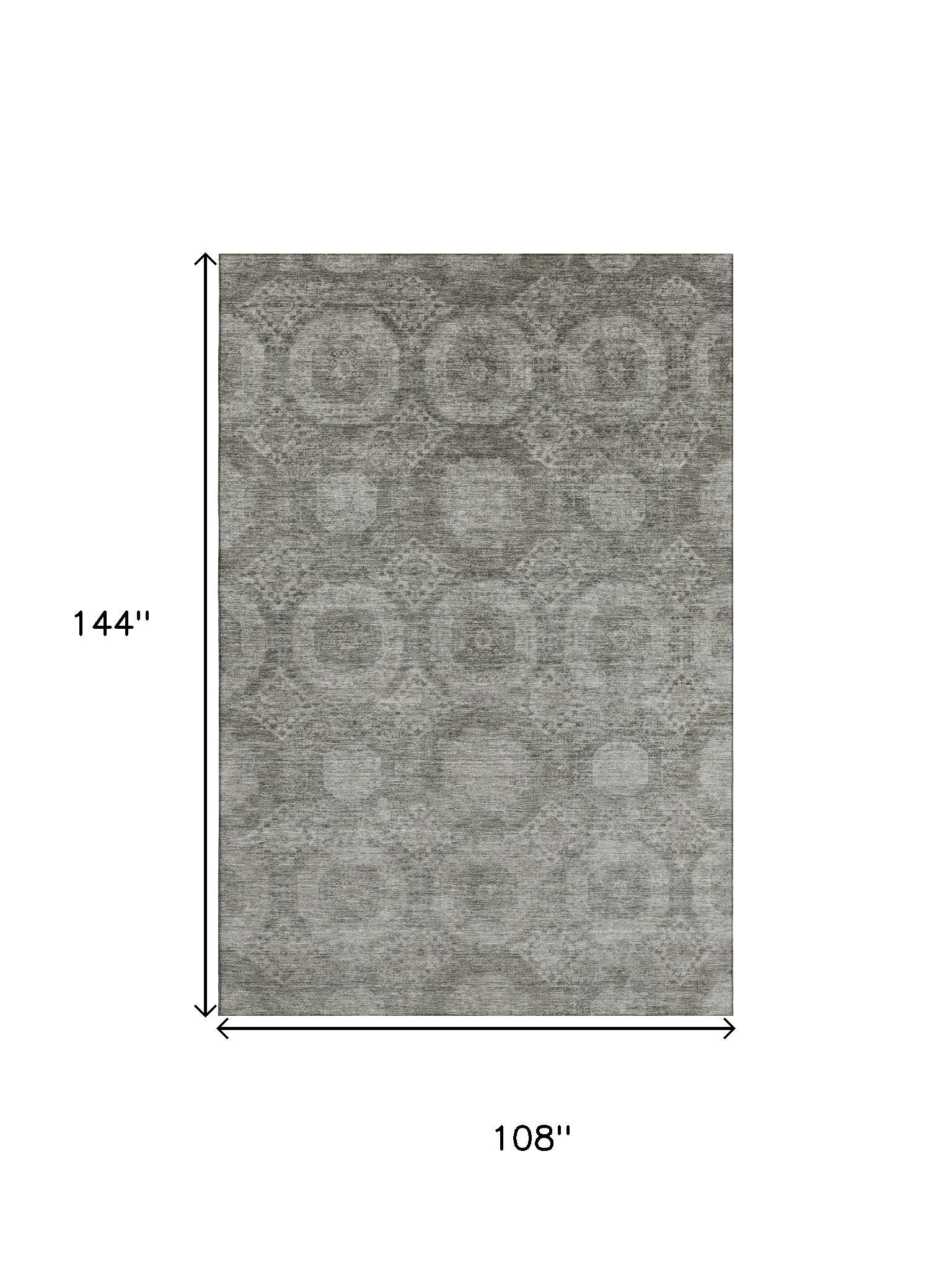 Add some artistry to your room with this 9-foot x 12-foot pewter and gray abstract geometric washable area rug with uv protection. Ideal for spaces with kids and pets, this rug is stain resistant to help repel dirt and spilled liquids. Built to last, this rug crafted from polyester fibers is known for its durability and long lasting appeal. Rugs are a great way to showcase your style, hide imperfections, warm your home and reduce noise. This larger sized, transitional styled rug is ready to create a focal point or statement piece in your room. 108.00-inch h x 144.00-inch w x 0.39-inch d.