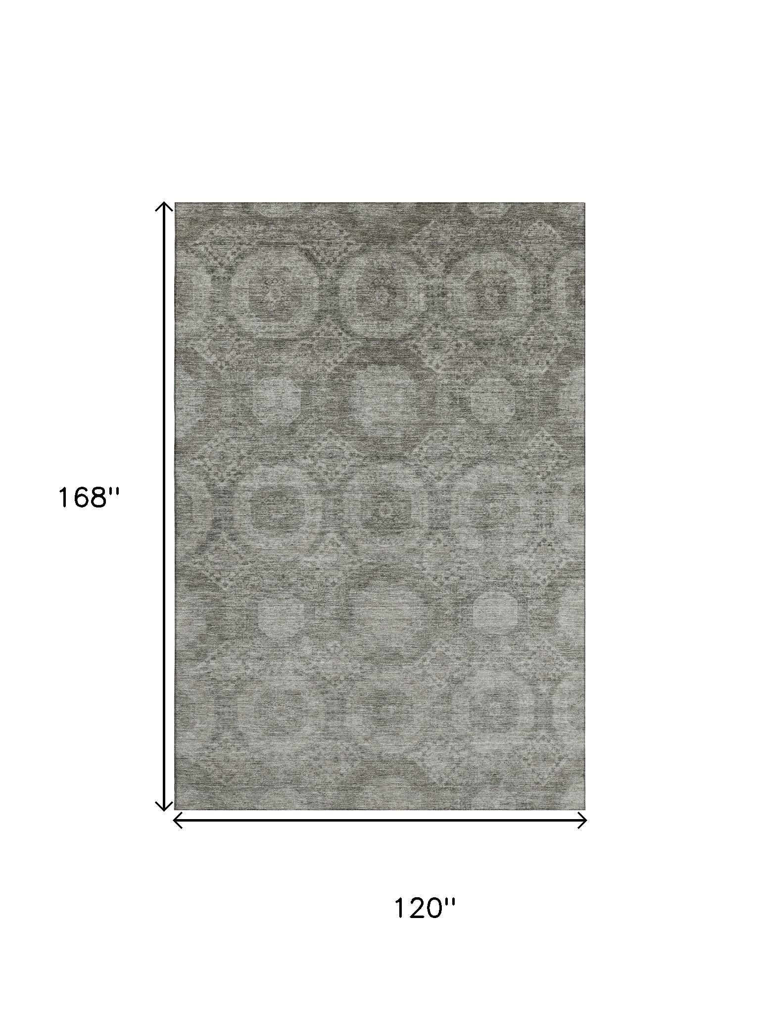 Add some artistry to your room with this 10-foot x 14-foot pewter and gray abstract geometric washable area rug with uv protection. Ideal for spaces with kids and pets, this rug is stain resistant to help repel dirt and spilled liquids. Built to last, this rug crafted from polyester fibers is known for its durability and long lasting appeal. Rugs are a great way to showcase your style, hide imperfections, warm your home and reduce noise. This larger sized, transitional styled rug is ready to create a focal point or statement piece in your room. 120.00-inch h x 168.00-inch w x 0.39-inch d.
