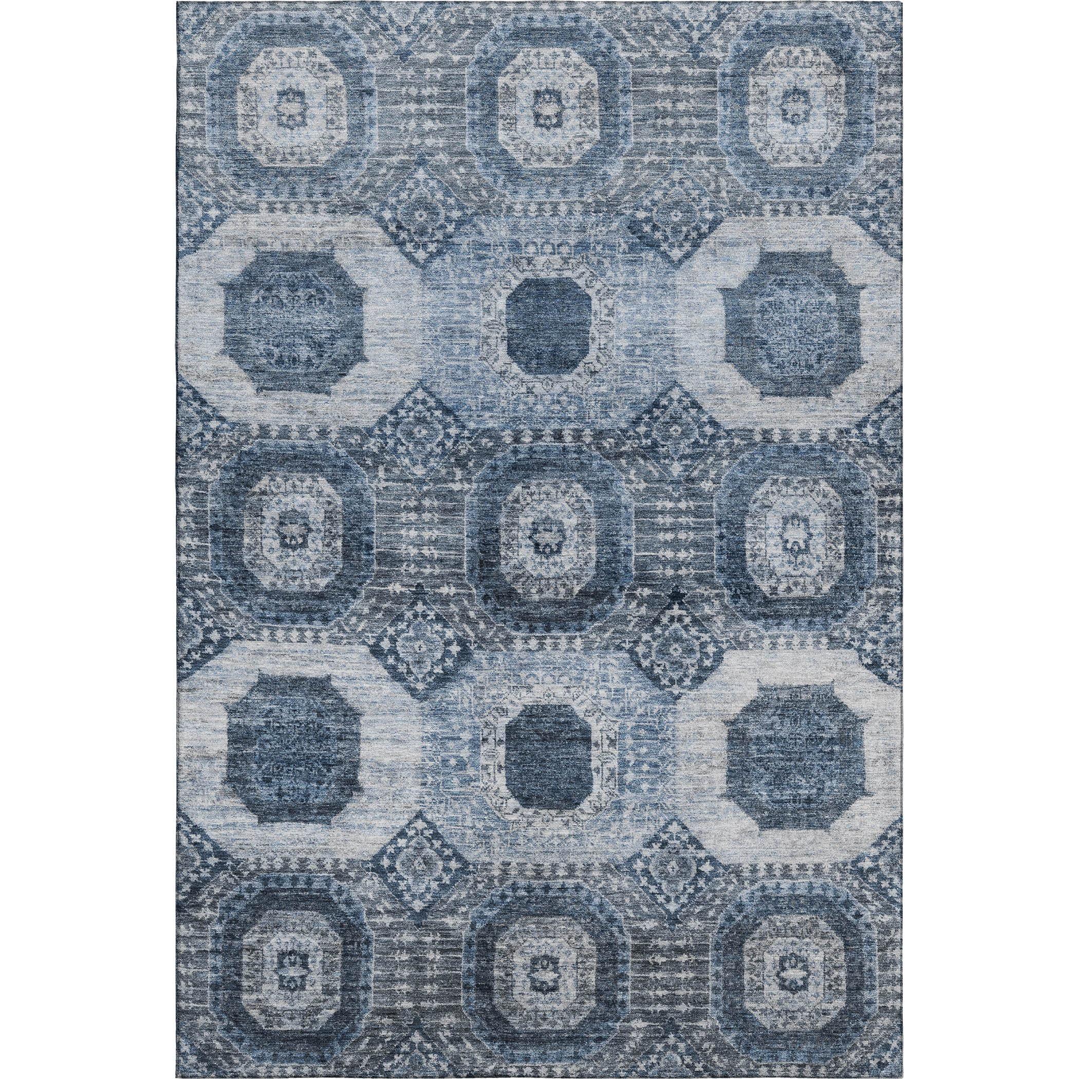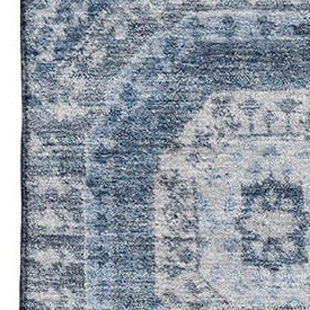 This 5-foot x 8-foot blue and ivory abstract geometric washable area rug with uv protection, is a great way to add warmth to a room. Ideal for spaces with kids and pets, this rug is stain resistant to help repel dirt and spilled liquids. Built to last, this rug crafted from polyester fibers is known for its durability and long lasting appeal. Rugs are a great way to showcase your style, hide imperfections, warm your home and reduce noise. This larger sized, transitional styled rug is ready to create a focal point or statement piece in your room. 60.00-inch h x 90.00-inch w x 0.39-inch d.