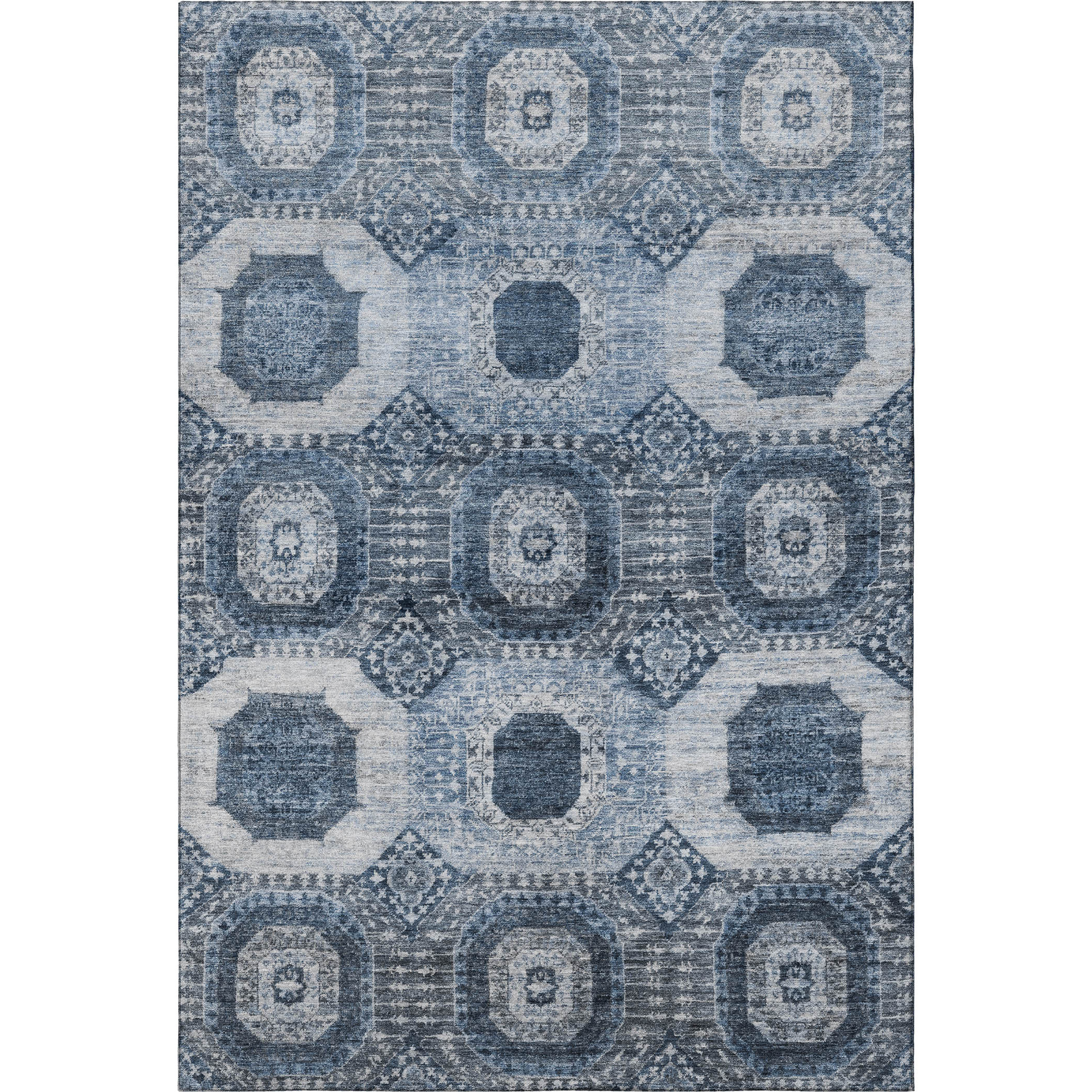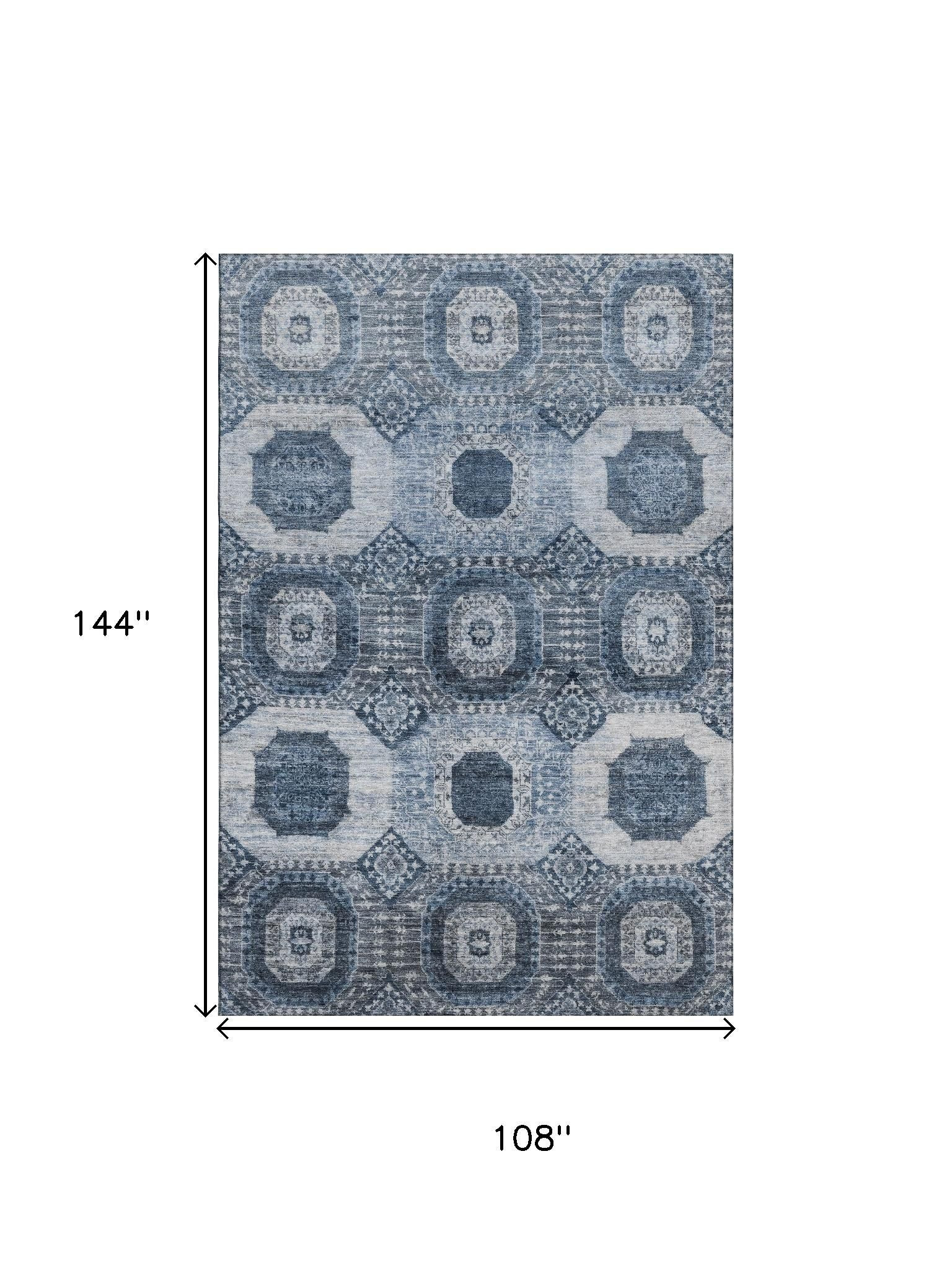 Add some artistry to your room with this 9-foot x 12-foot blue and ivory abstract geometric washable area rug with uv protection. Ideal for spaces with kids and pets, this rug is stain resistant to help repel dirt and spilled liquids. Built to last, this rug crafted from polyester fibers is known for its durability and long lasting appeal. Rugs are a great way to showcase your style, hide imperfections, warm your home and reduce noise. This larger sized, transitional styled rug is ready to create a focal point or statement piece in your room. 108.00-inch h x 144.00-inch w x 0.39-inch d.