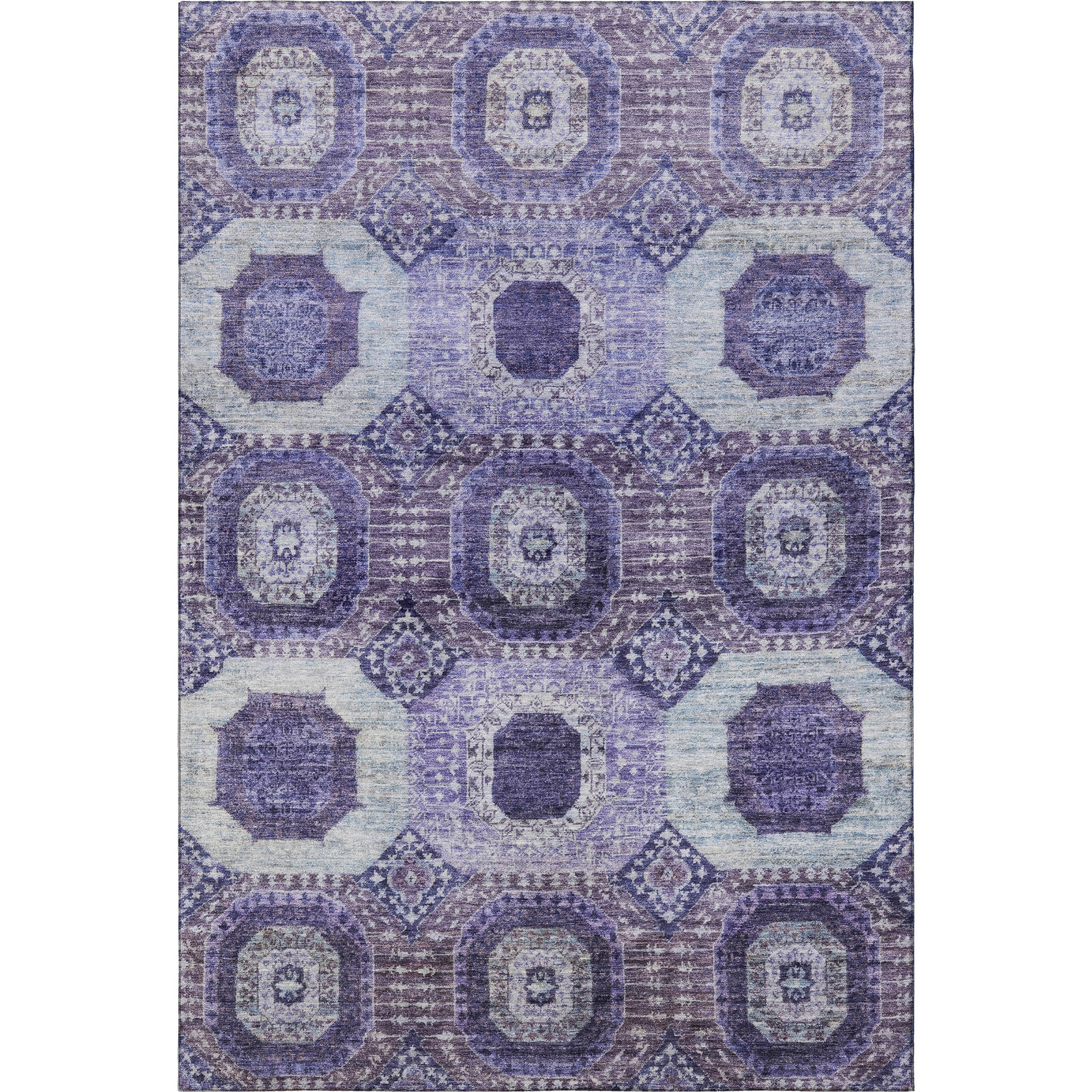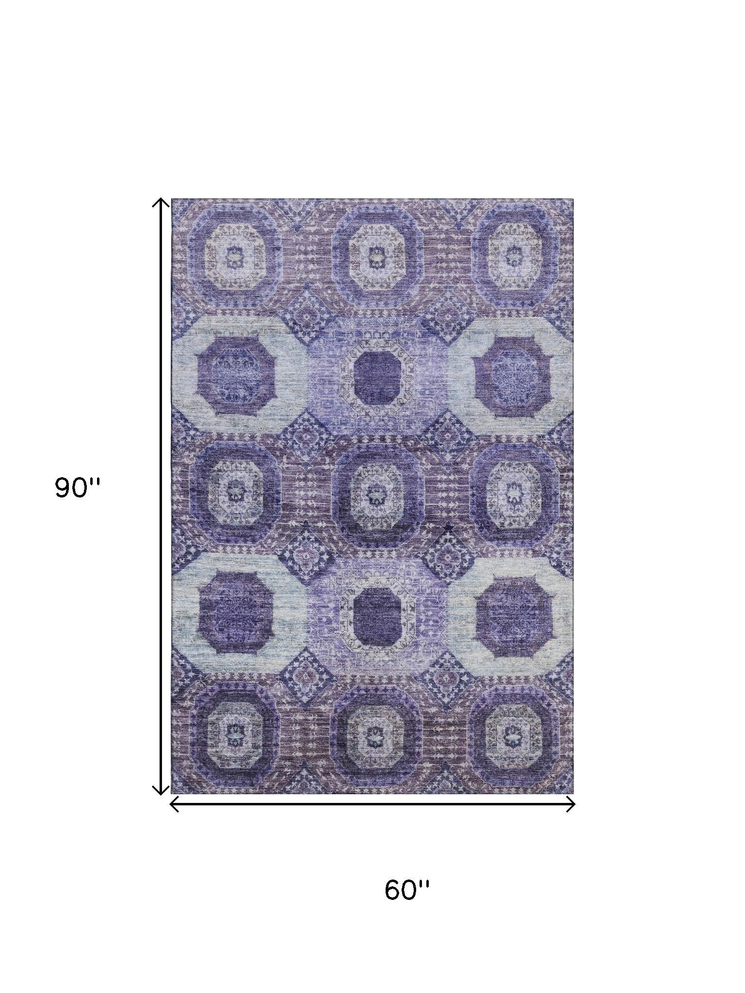 Set an inviting tone in your space with this 5-foot x 8-foot purple and silver abstract geometric washable area rug with uv protection. Ideal for spaces with kids and pets, this rug is stain resistant to help repel dirt and spilled liquids. Built to last, this rug crafted from polyester fibers is known for its durability and long lasting appeal. Rugs are a great way to showcase your style, hide imperfections, warm your home and reduce noise. This larger sized, transitional styled rug is ready to create a focal point or statement piece in your room. 60.00-inch h x 90.00-inch w x 0.39-inch d.
