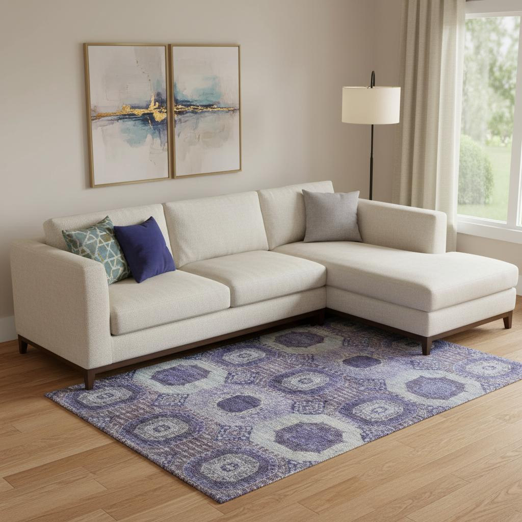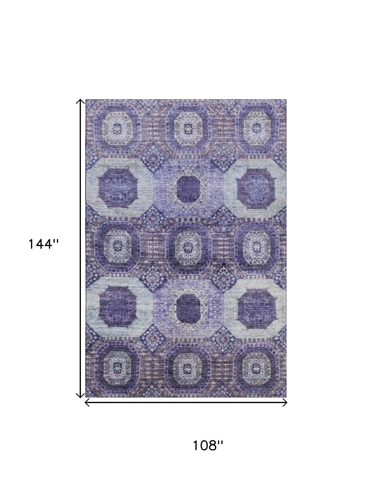 Add great coloration and comfortable texture to your space with this 9-foot x 12-foot purple and silver abstract geometric washable area rug with uv protection. Ideal for spaces with kids and pets, this rug is stain resistant to help repel dirt and spilled liquids. Built to last, this rug crafted from polyester fibers is known for its durability and long lasting appeal. Rugs are a great way to showcase your style, hide imperfections, warm your home and reduce noise. This larger sized, transitional styled rug is ready to create a focal point or statement piece in your room. 108.00-inch h x 144.00-inch w x 0.39-inch d.