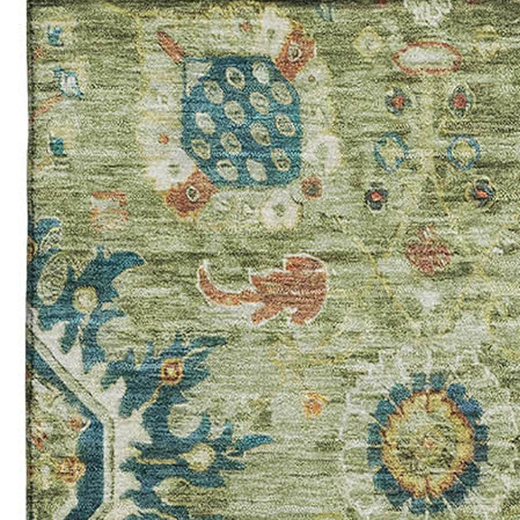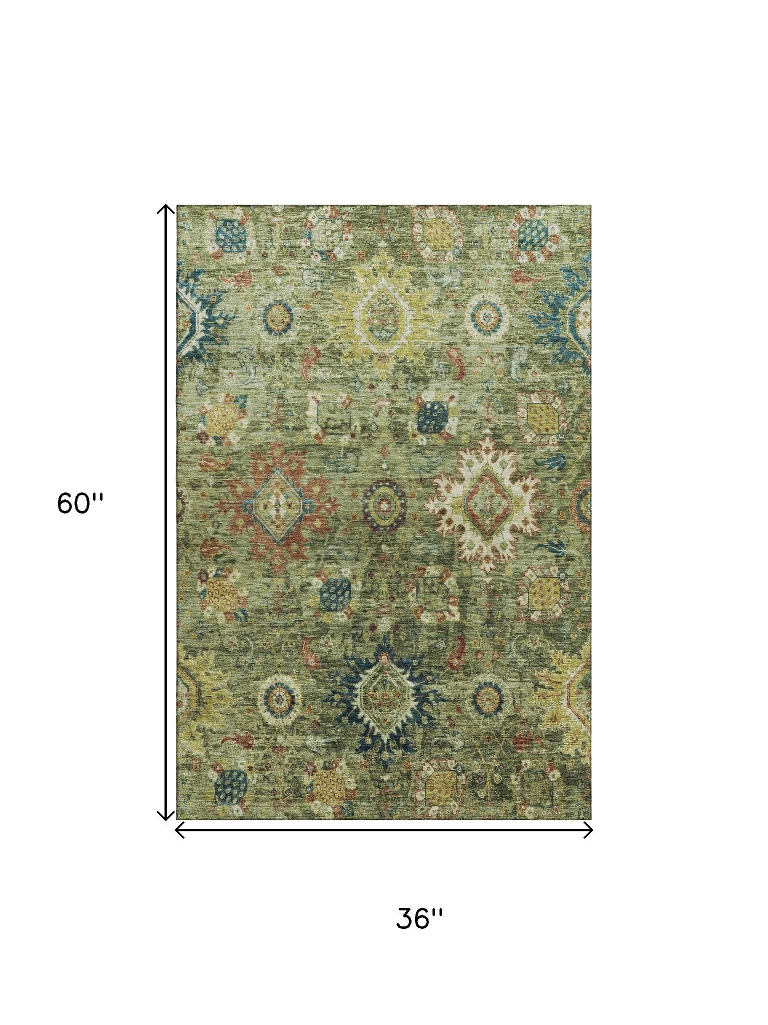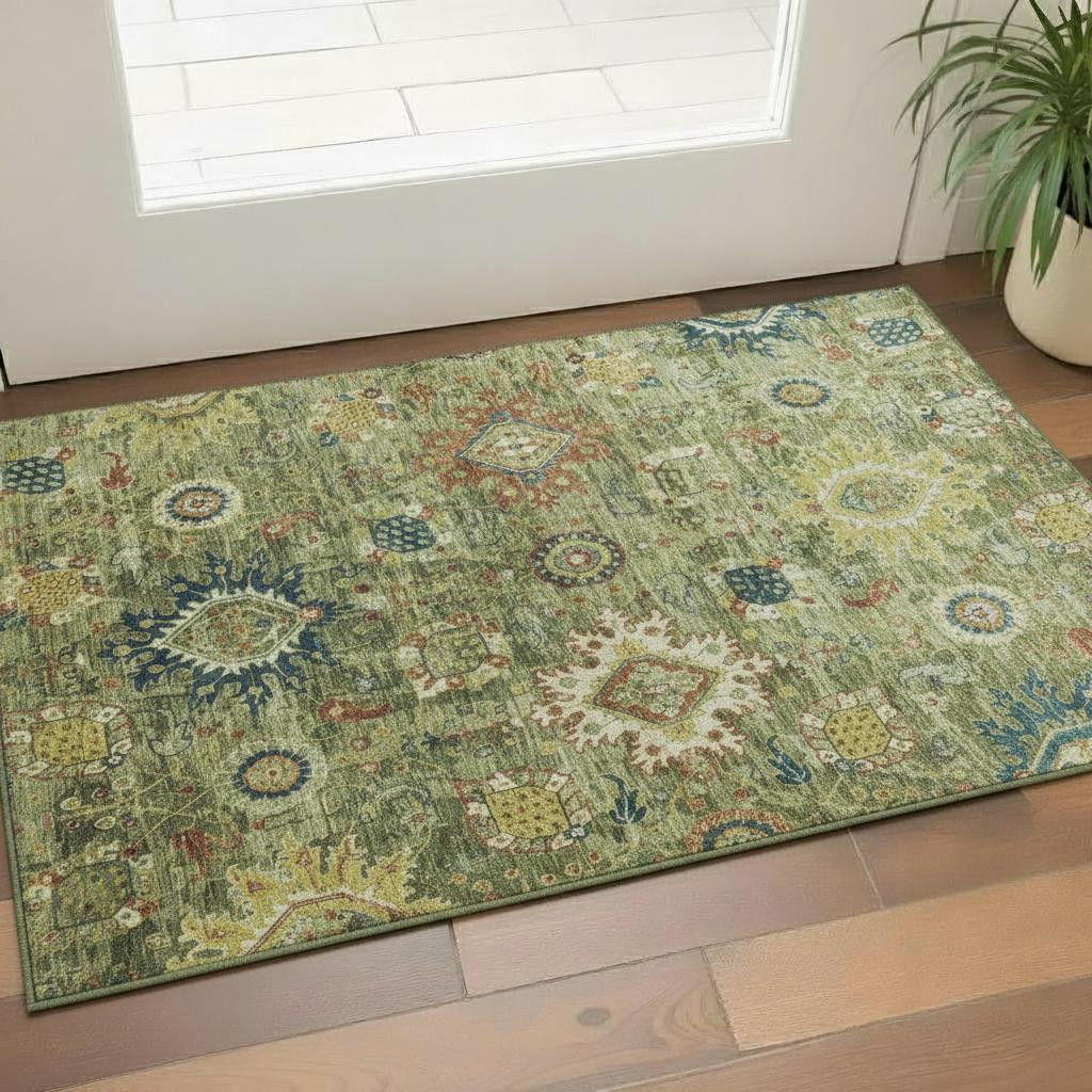 Add some artistry to your room with this 3-foot x 5-foot artichoke green rust and gold oriental washable area rug with uv protection. Ideal for spaces with kids and pets, this rug is stain resistant to help repel dirt and spilled liquids. Built to last, this rug crafted from polyester fibers is known for its durability and long lasting appeal. Rugs are a great way to showcase your style, hide imperfections, warm your home and reduce noise. This smaller sized, traditional styled rug is just what you need for your walkway, bedside, in front of door, cabinet, refrigerator, or chair. 36.00-inch h x 60.00-inch w x 0.39-inch d.